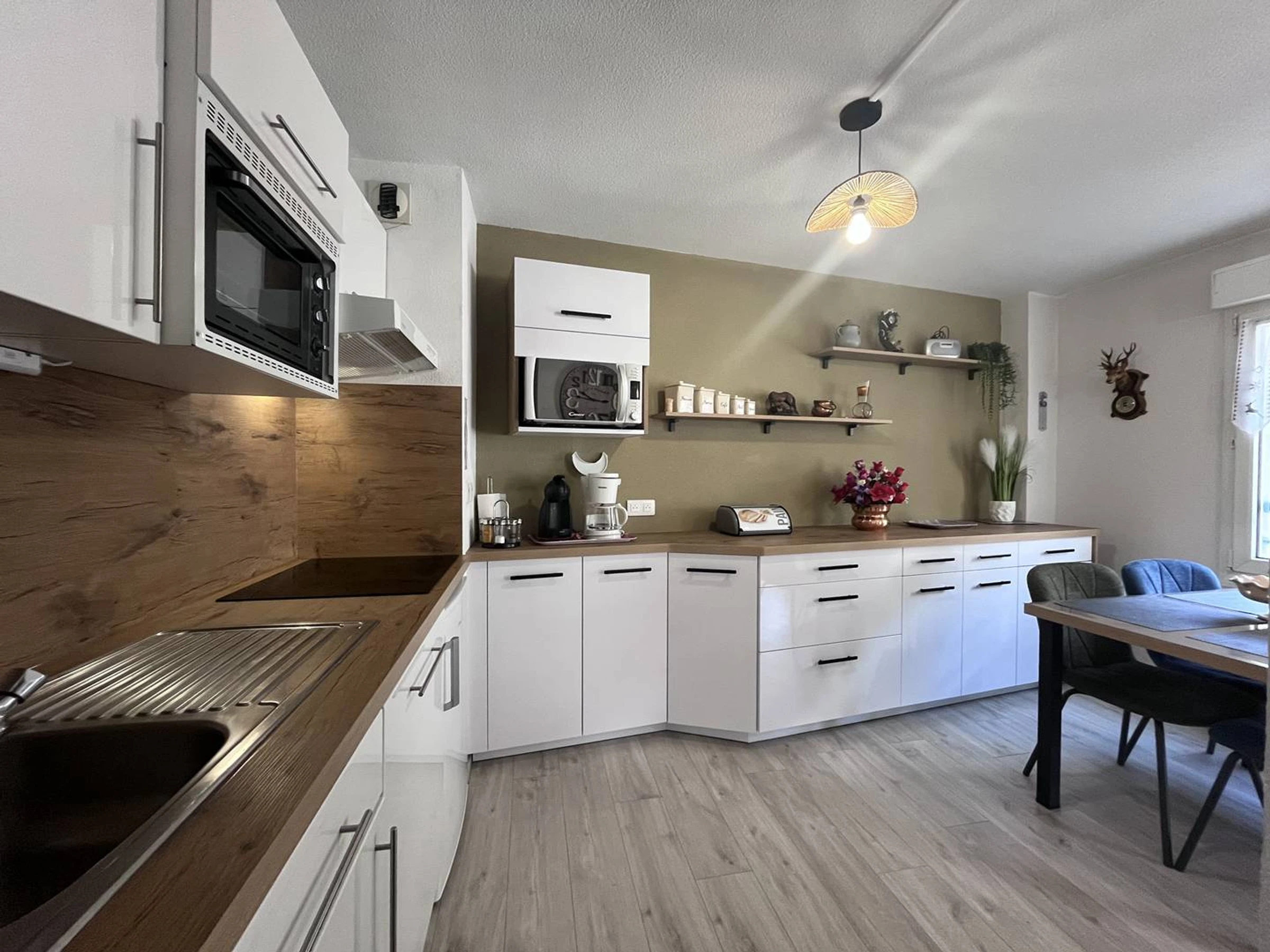 Un luminoso salón con cocina americana completamente reformado en 2025, para un confort moderno.