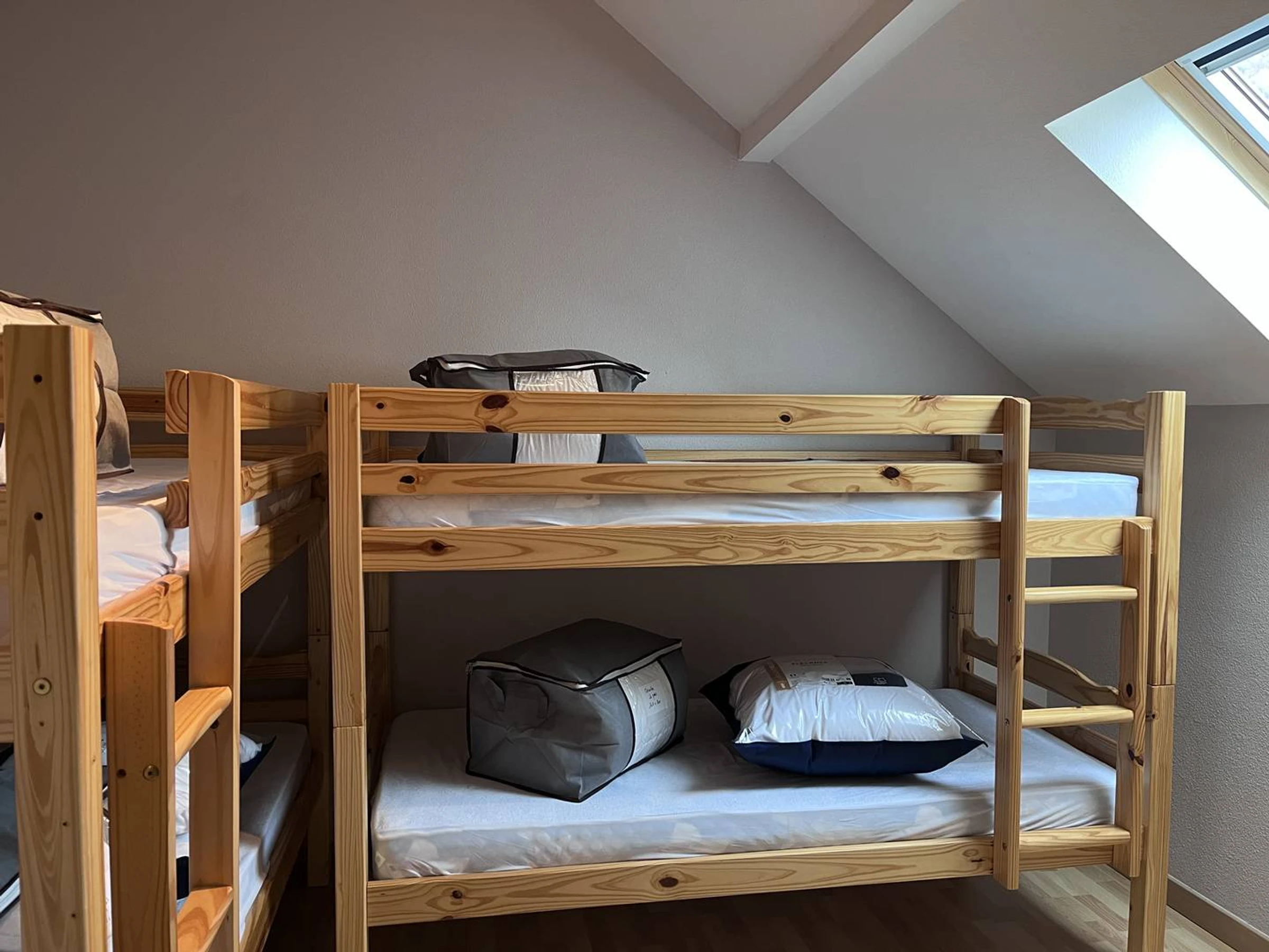Disfrutará de dos plazas de aparcamiento privadas justo delante del balcón, una luminosa sala de estar y todas las comodidades para una estancia confortable. El chalet cuenta con cuatro dormitorios, todos amueblados con camas individuales (90 cm).