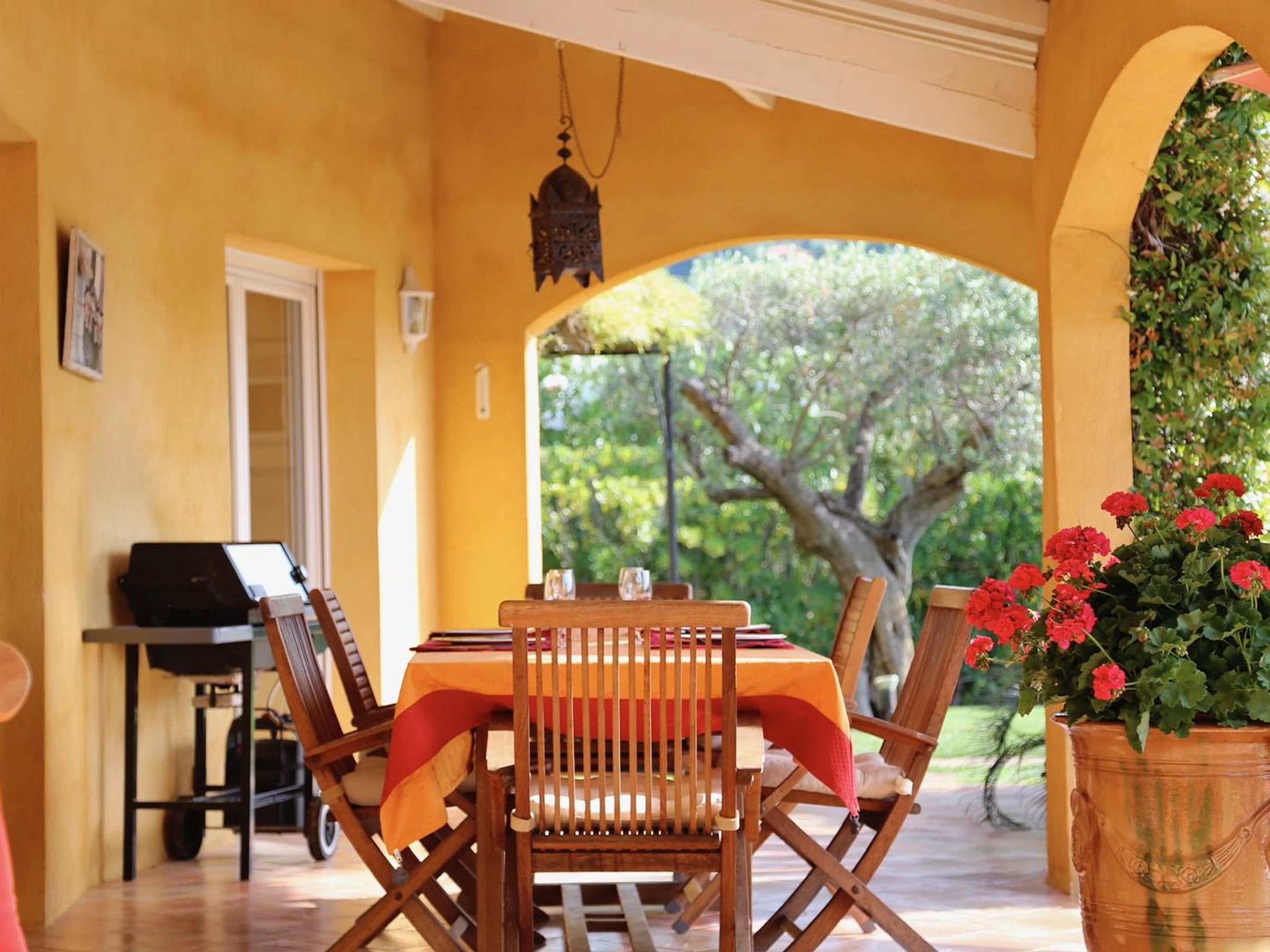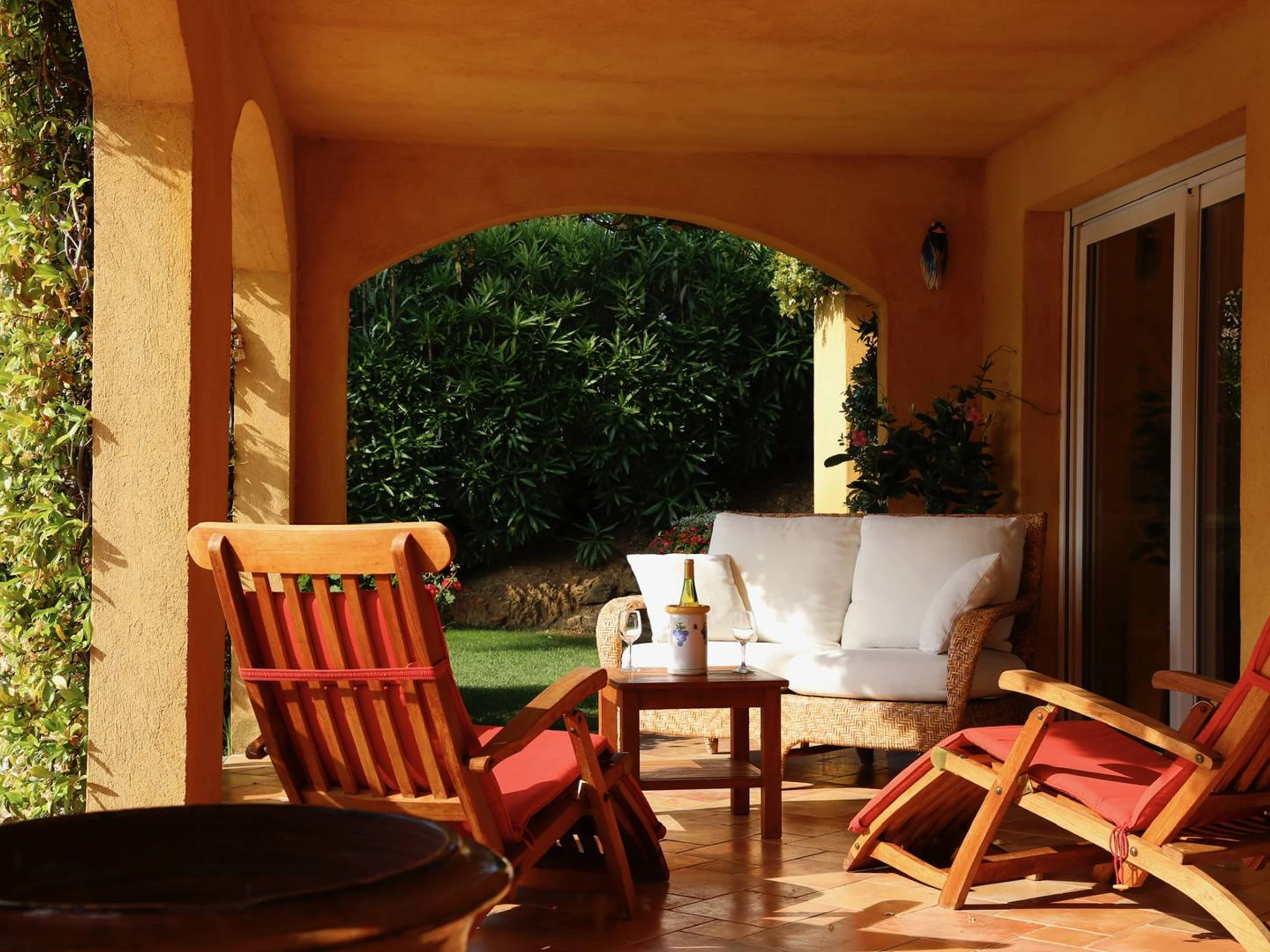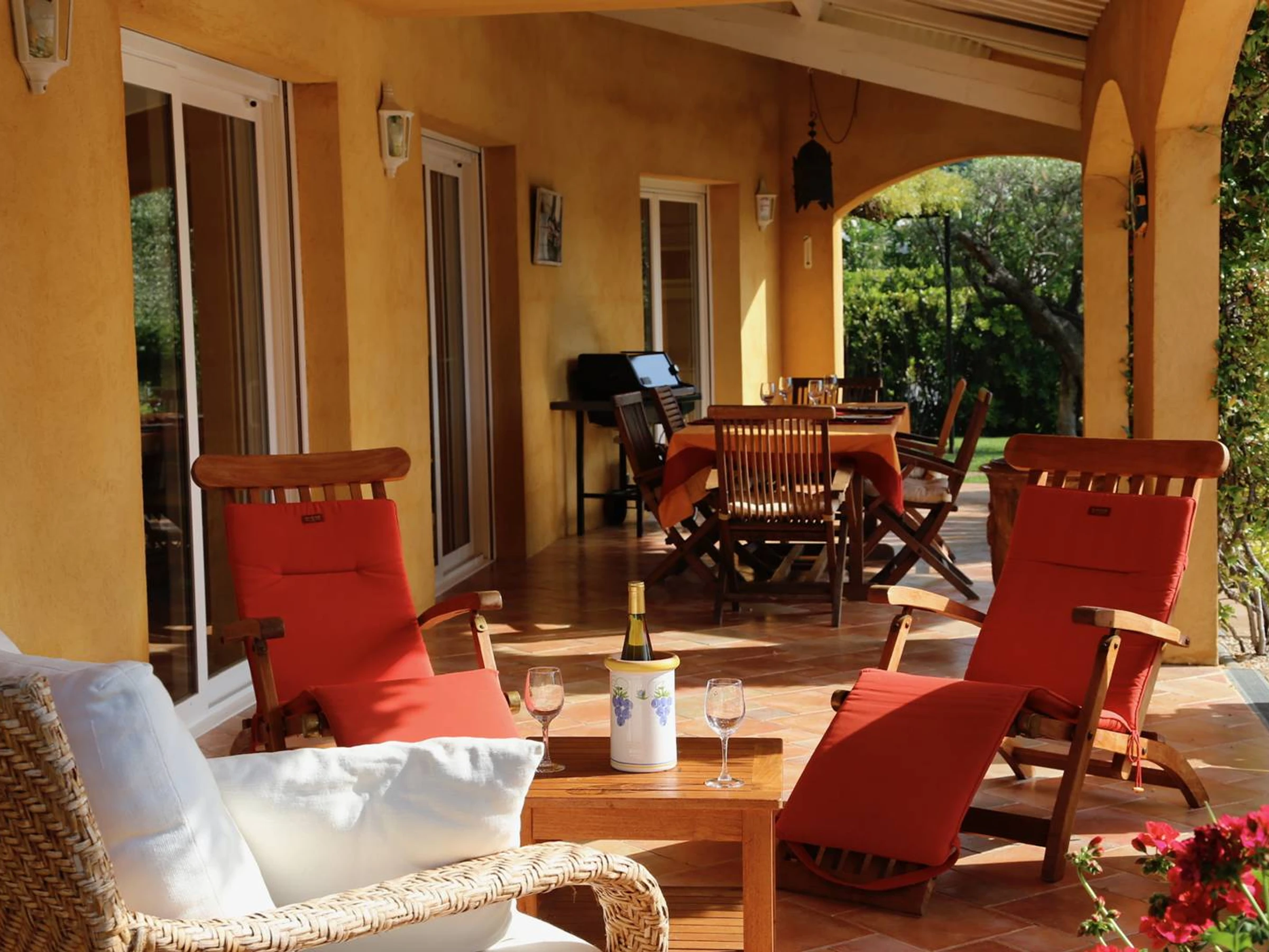 En lo alto de la parte trasera de la villa se encuentra una terraza con cenador. Encontrarás una mesa, 4 sillas y 2 tumbonas.
