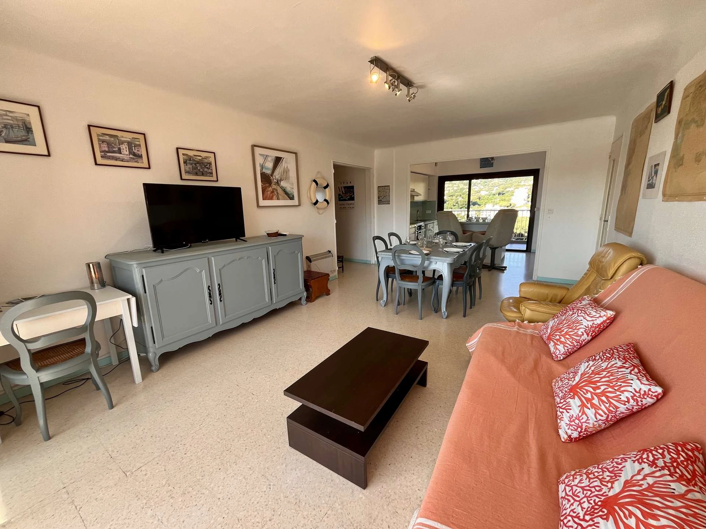 Este alquiler junto al mar consta de un amplio salón con aire acondicionado y luminoso que da acceso a una hermosa terraza con vista al mar, una cocina bien equipada.