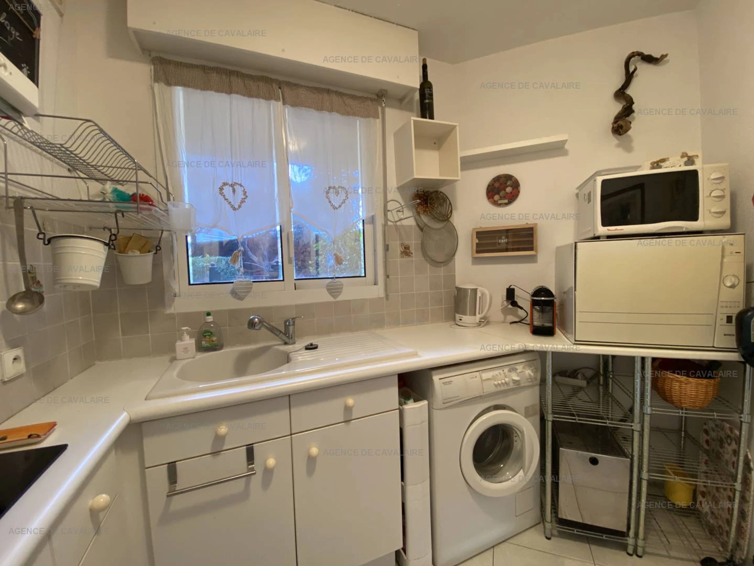 Apartamento climatizado en el primer piso con ascensor en una residencia segura en el puerto de Cavalaire que consta de una sala de estar (sofá cama doble) con acceso a la terraza, una cocina equipada y un dormitorio que da a la terraza (cama doble 160x200).