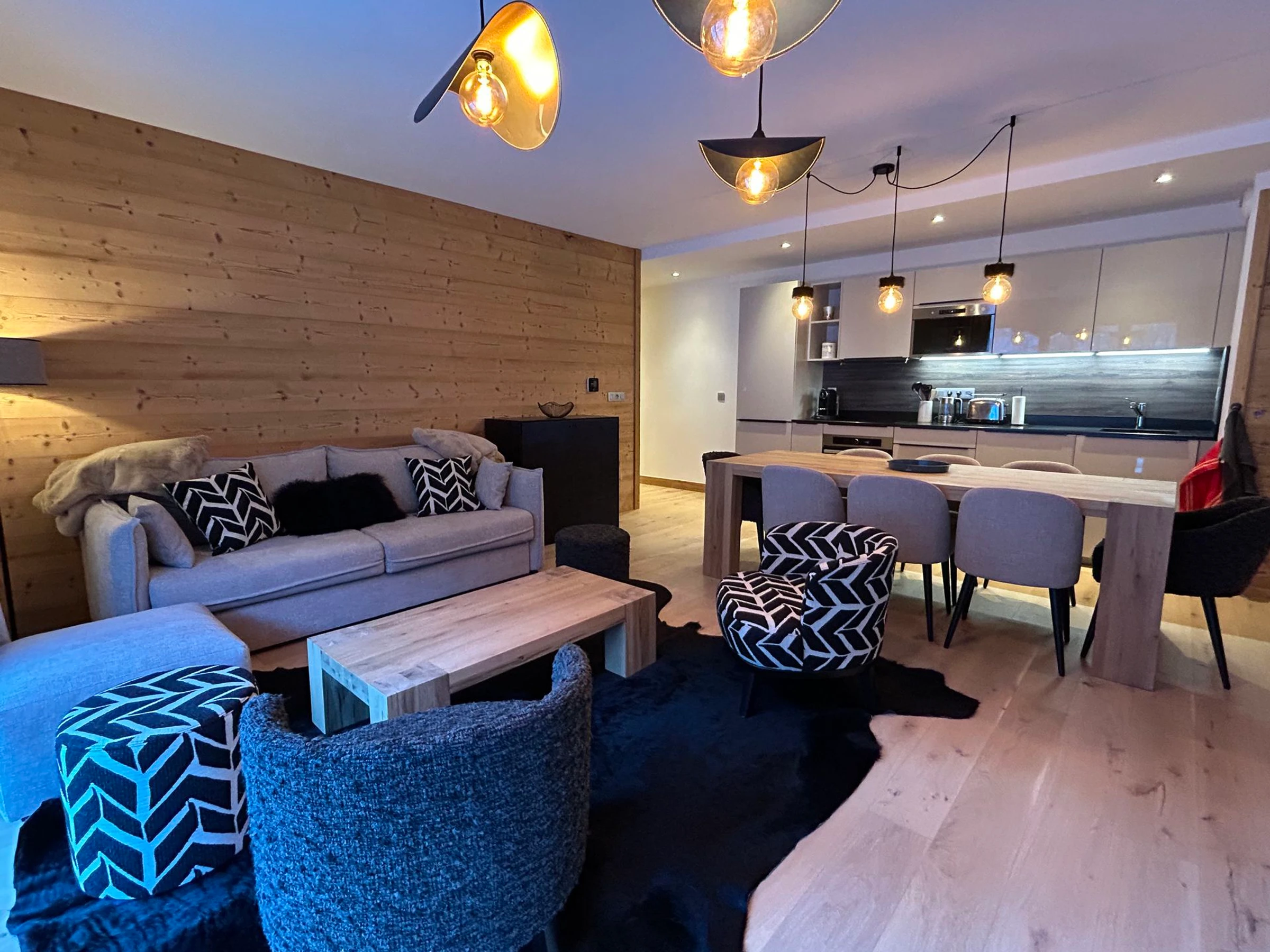 Precioso apartamento de 83 m², con clasificación oficial de 3 estrellas, para 6 personas, en la primera planta con ascensor de la nueva residencia Blanc Mont-Blanc, ubicada en una zona tranquila en el corazón de Chamonix.