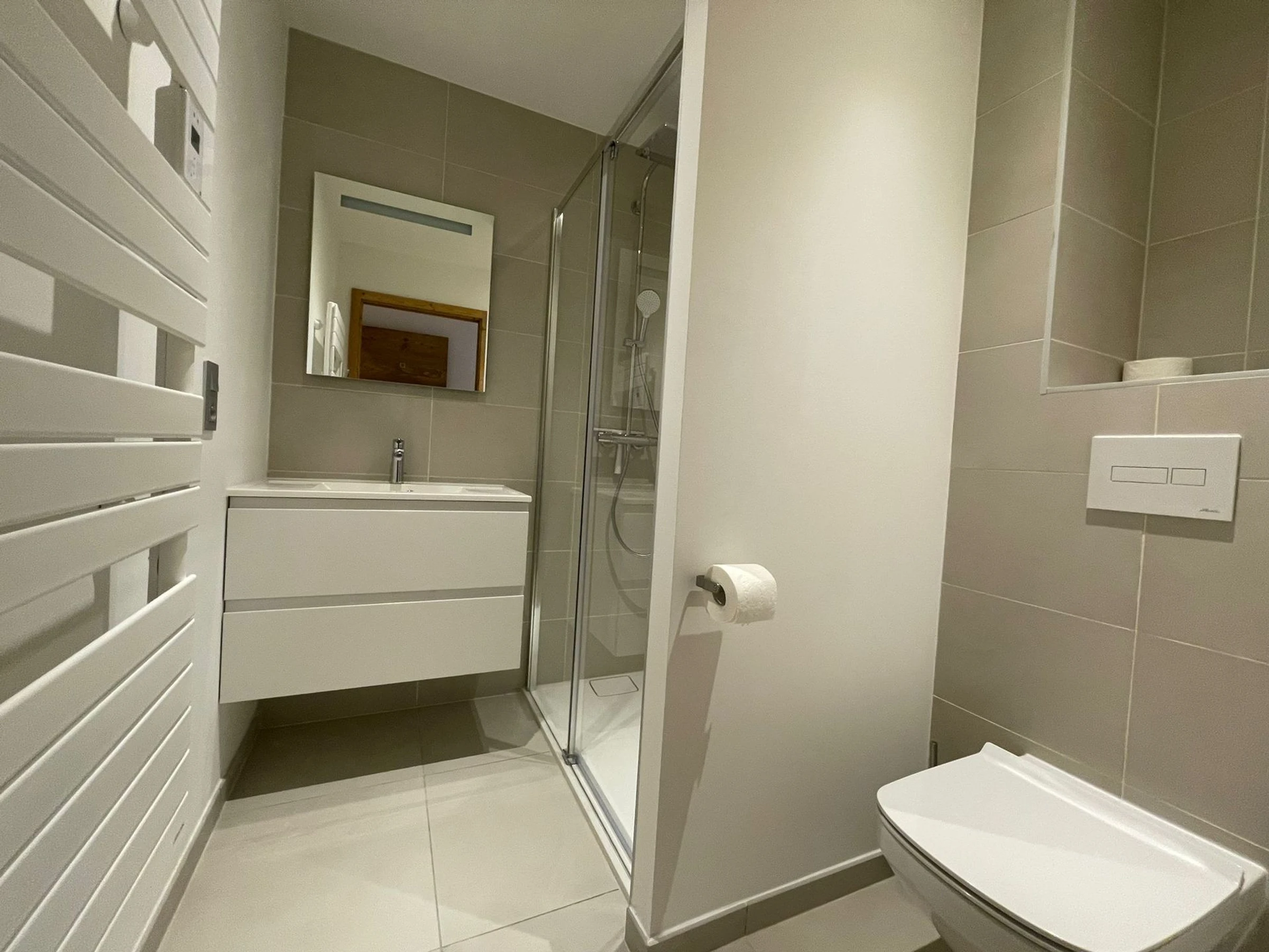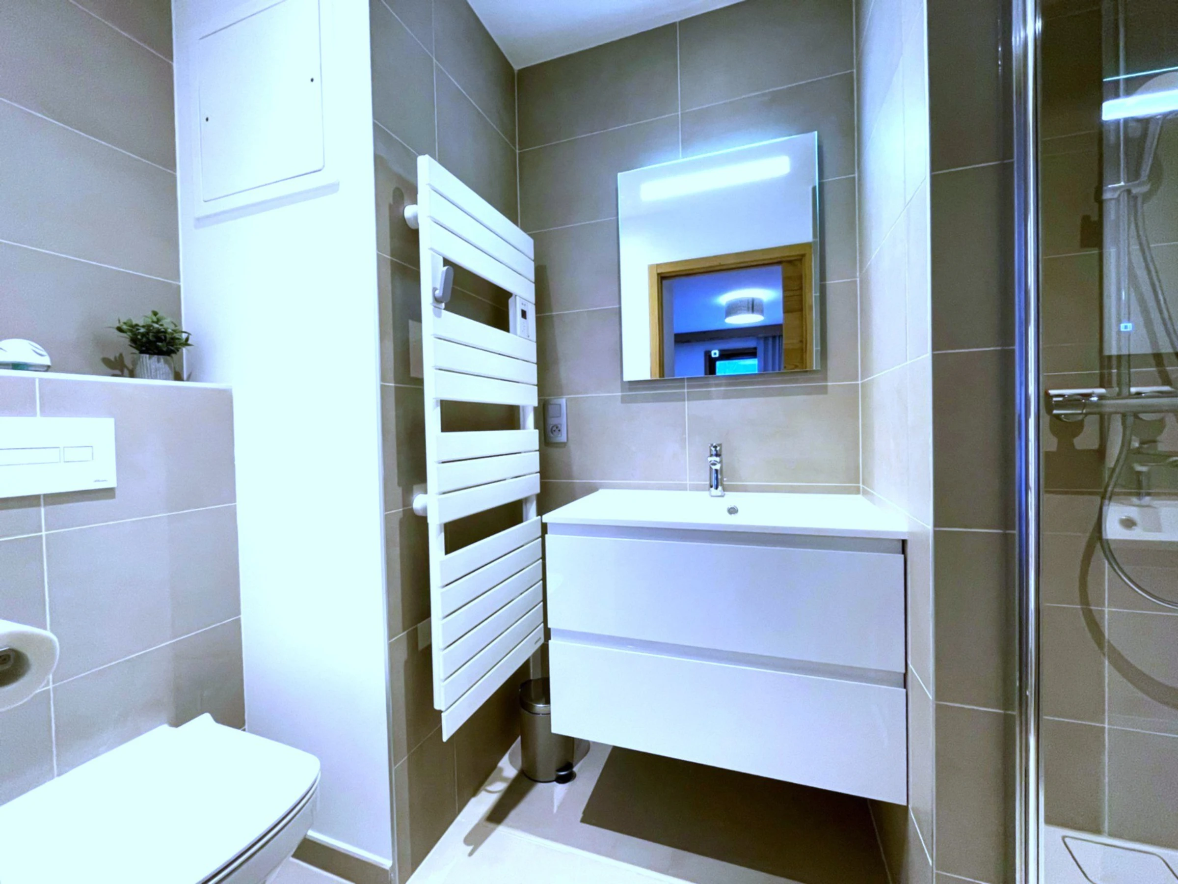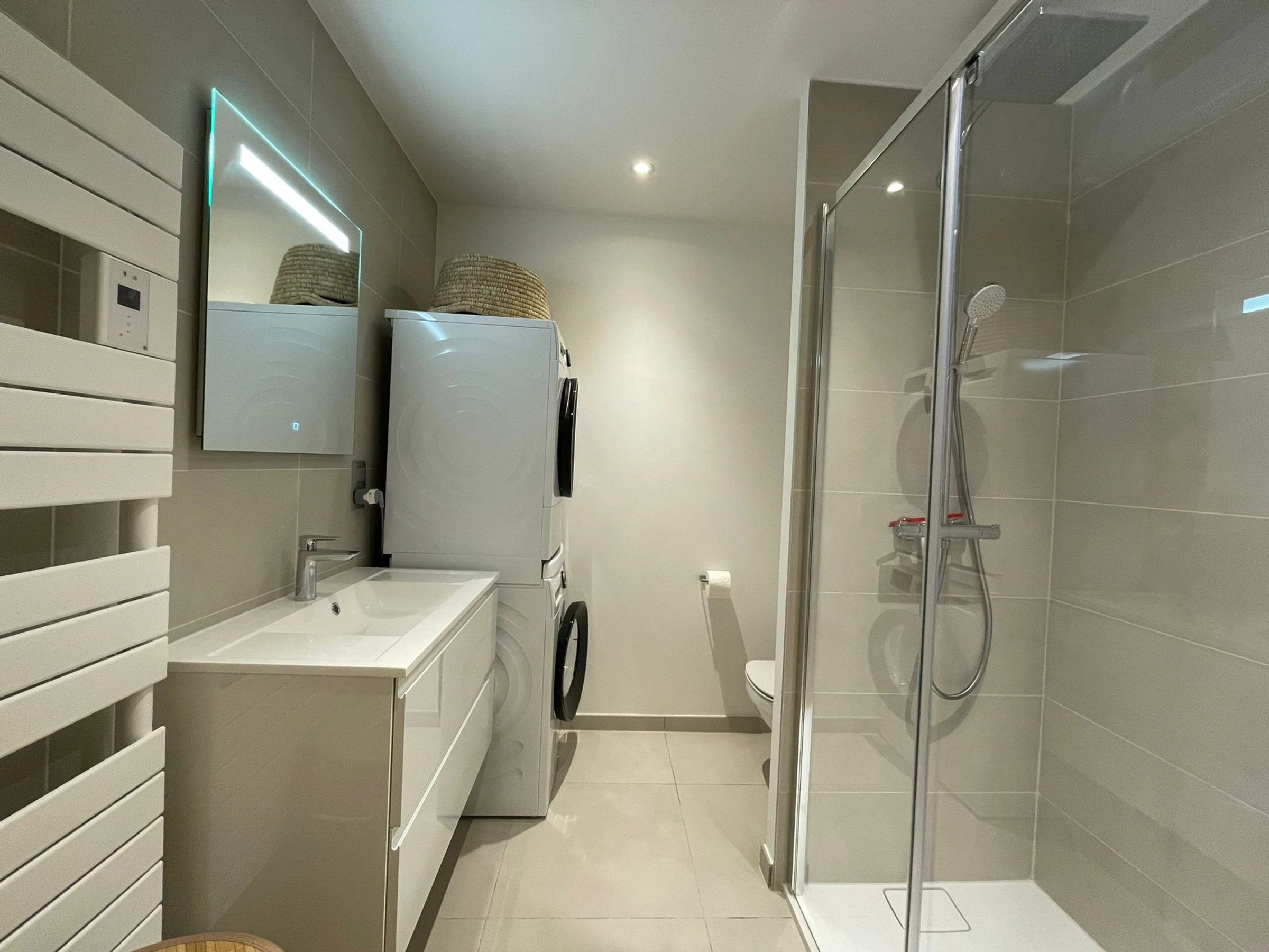 - Baño con ducha, WC, lavadora y secadora