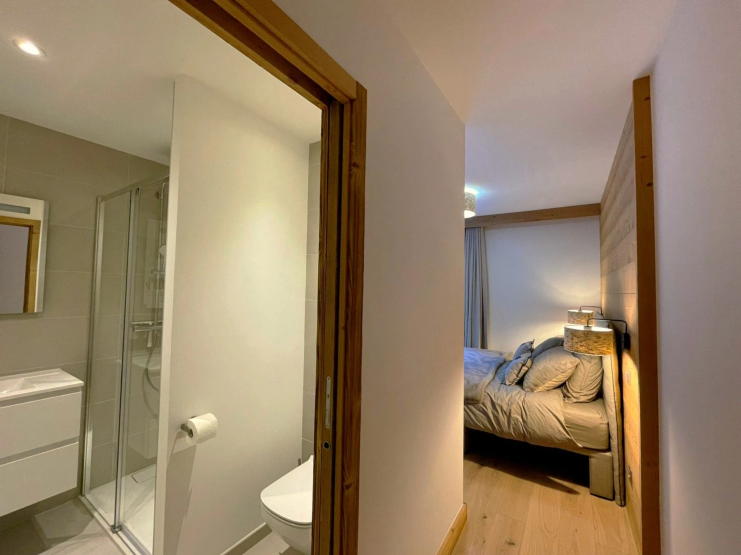 - Habitación doble con una cama doble (160x200) y baño en suite con ducha y WC