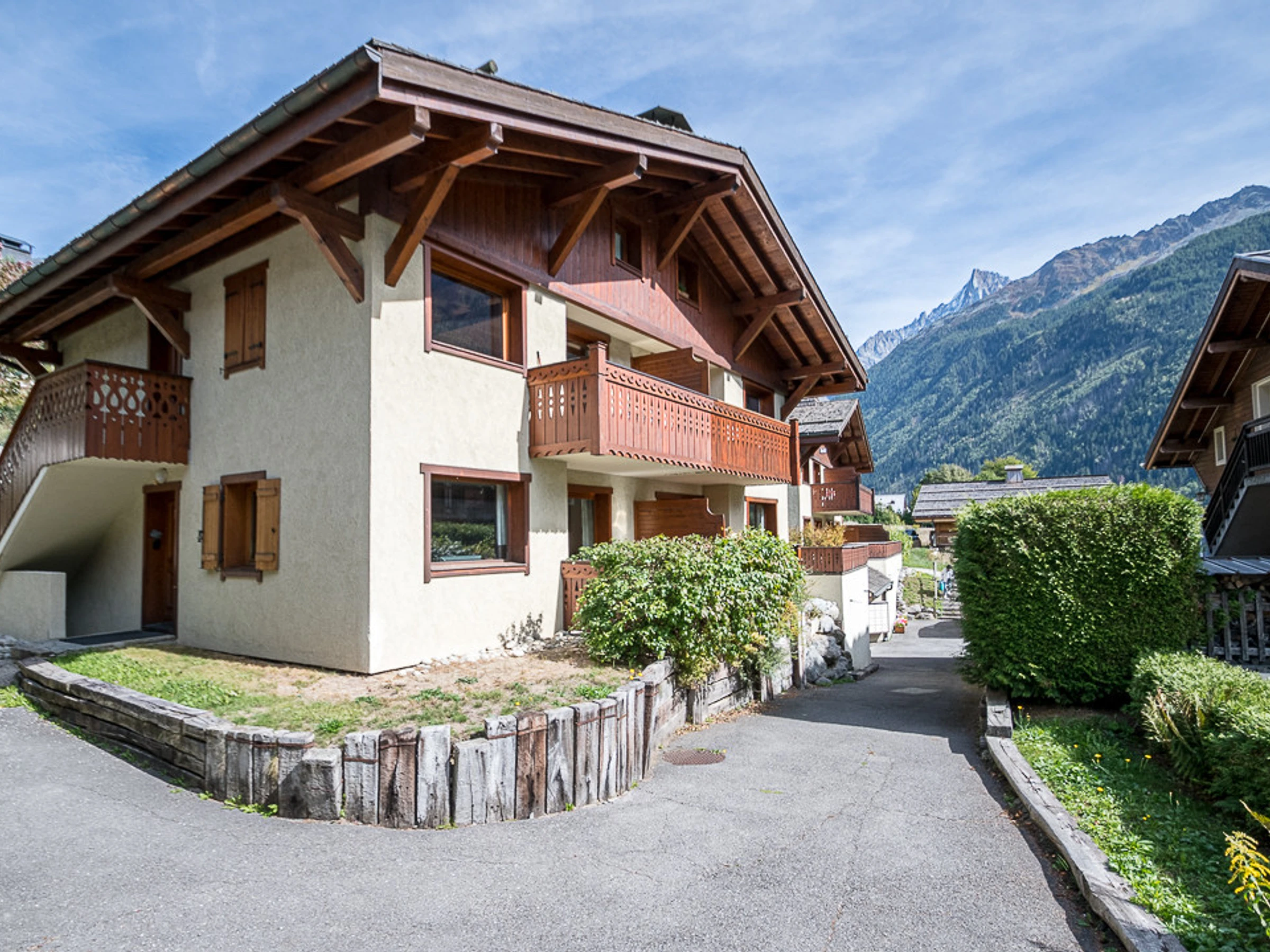 Precioso apartamento dúplex de 84 m², con clasificación oficial de 3 estrellas, con capacidad para 8 personas en sus 3 dormitorios. Orientado al sur, se encuentra en la 1.ª y 2.ª planta de un chalet, a 750 metros del centro de Chamonix.