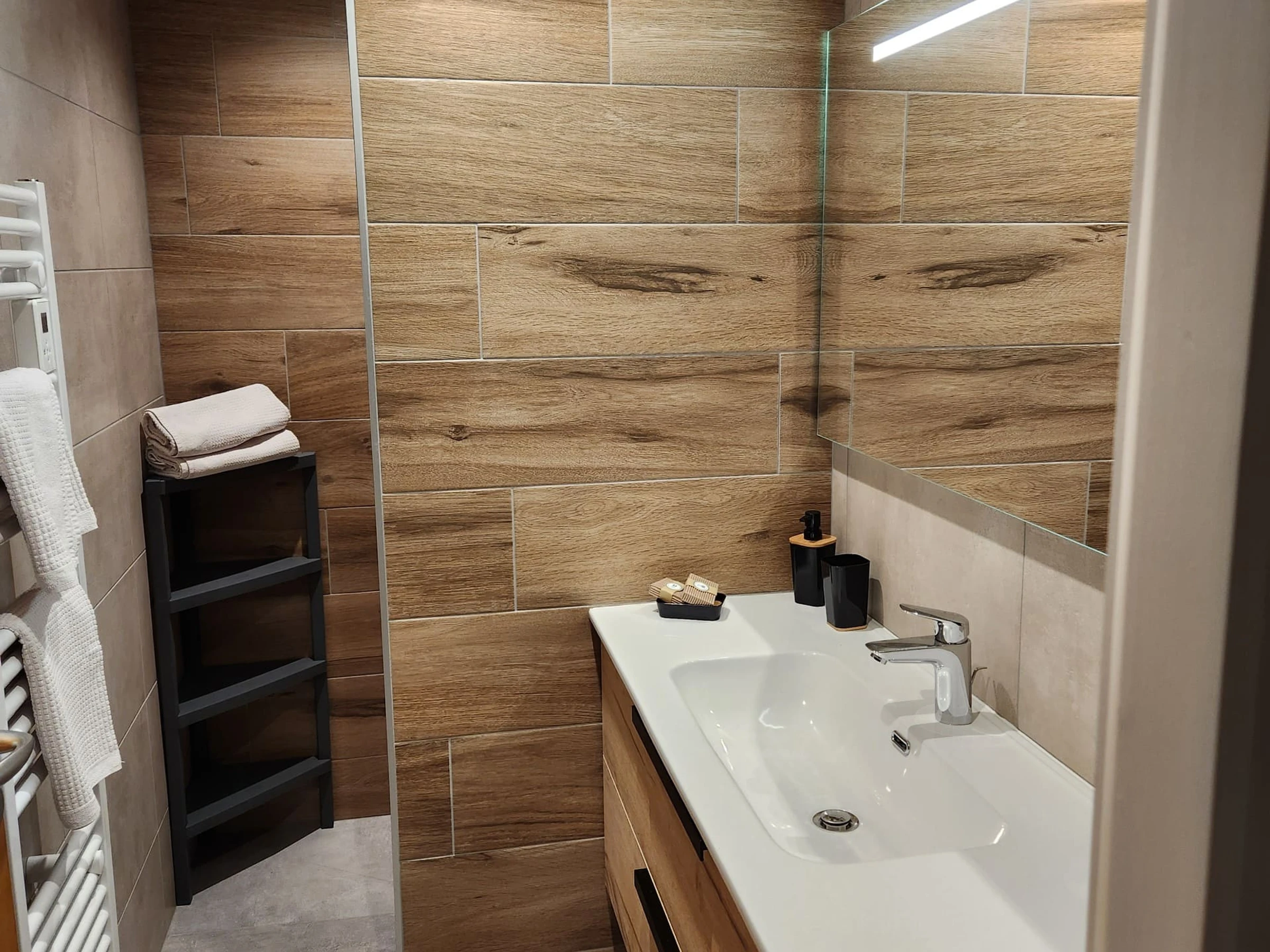 Apartamento n.° 2, 303 route de Vonnes, Chalet Le Choucas. Apartamento en chalet, 3 habitaciones, 6 personas. Superficie: 60 m². Número de baños: 2. Número de dormitorios: 2. Distancia al centro del pueblo: 300 m. Distancia a los remontes: 400 m del teleférico Super-Châtel. Distancia a la guardería de los Mouflets: 600 m. Distancia al centro acuático Forme d'O: 600 m. Cocina abierta al salón, frigorífico con congelador, horno, microondas, lavavajillas, raclette, fondue, hervidor eléctrico, tostadora, cafetera DOLCE GUSTO. Salón con 1 sofá cama doble (140 x 190). Televisión, conexión wifi, calefacción. 1 dormitorio con 2 camas individuales. (90 x 200) que puede formar 1 cama doble, 1 dormitorio(s) con 2 camas individuales (80 x 200) que pueden formar 1 cama doble