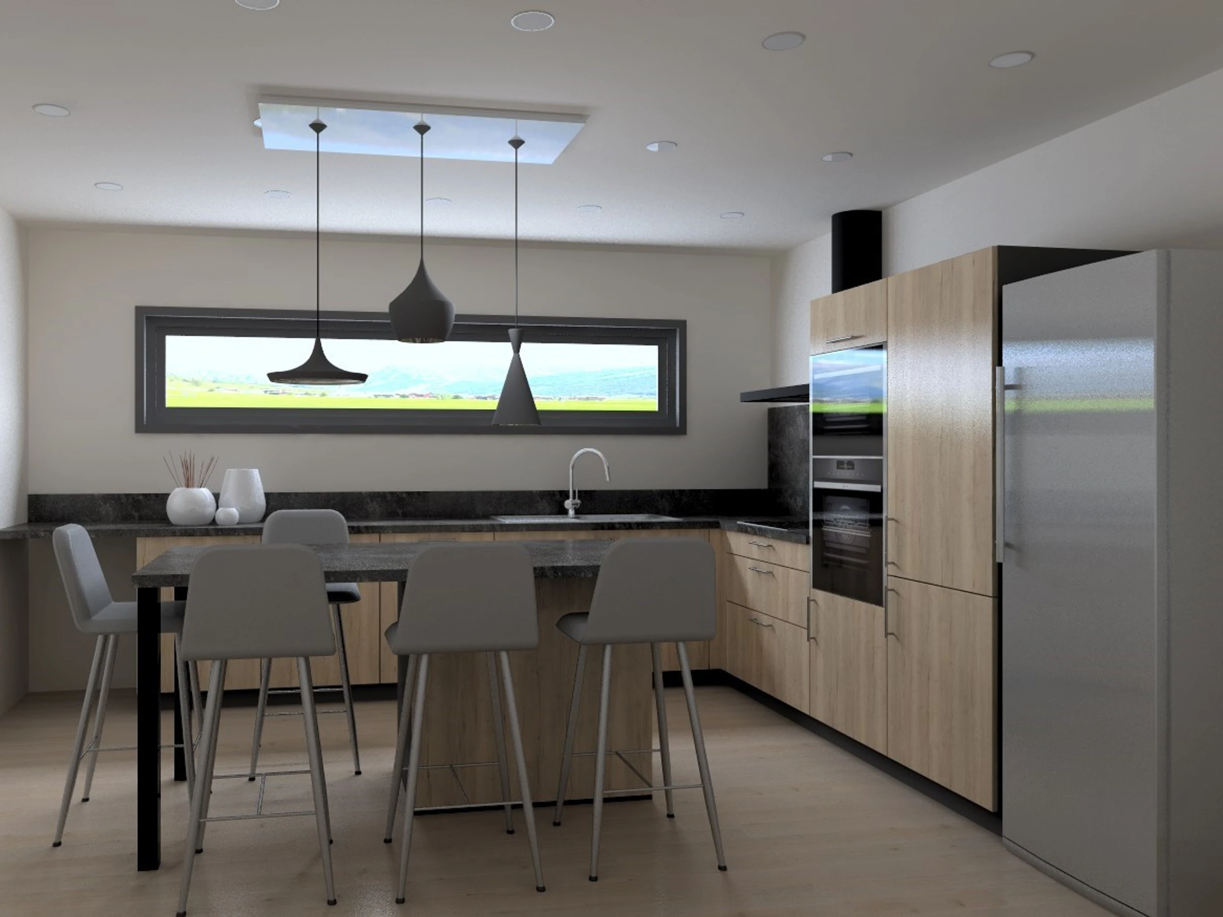 Cocina abierta al salón, Frigorífico con congelador, Horno, Microondas, Lavavajillas, Raclette, Set de fondue, Hervidor eléctrico, Tostadora, Cafetera de filtro