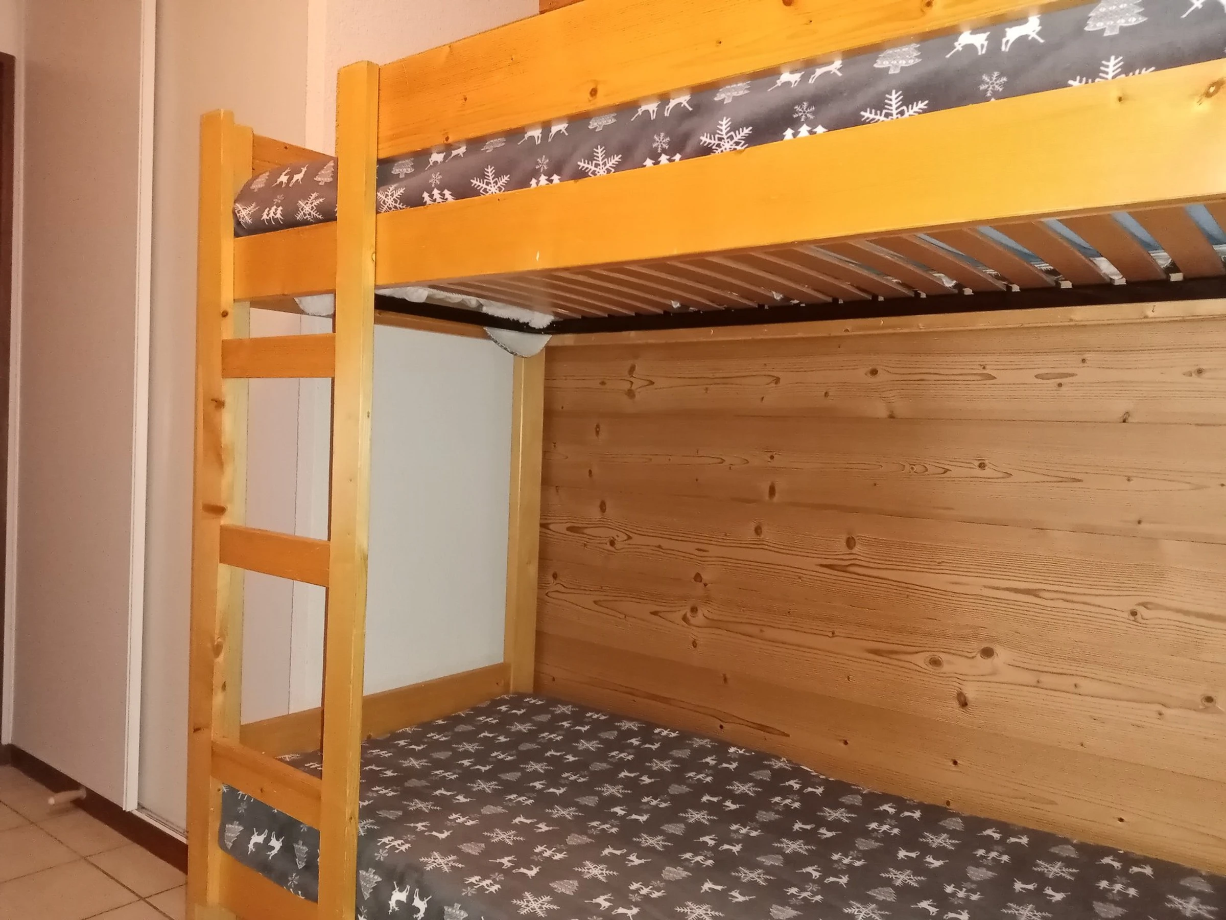 En la entrada, encontrará una zona de montaña con 2 literas, un dormitorio con 2 literas, un segundo dormitorio con cama doble, un baño, un aseo, un salón, una cocina y un balcón de 10 m² en el lado suroeste con una hermosa vista del pueblo y las montañas.