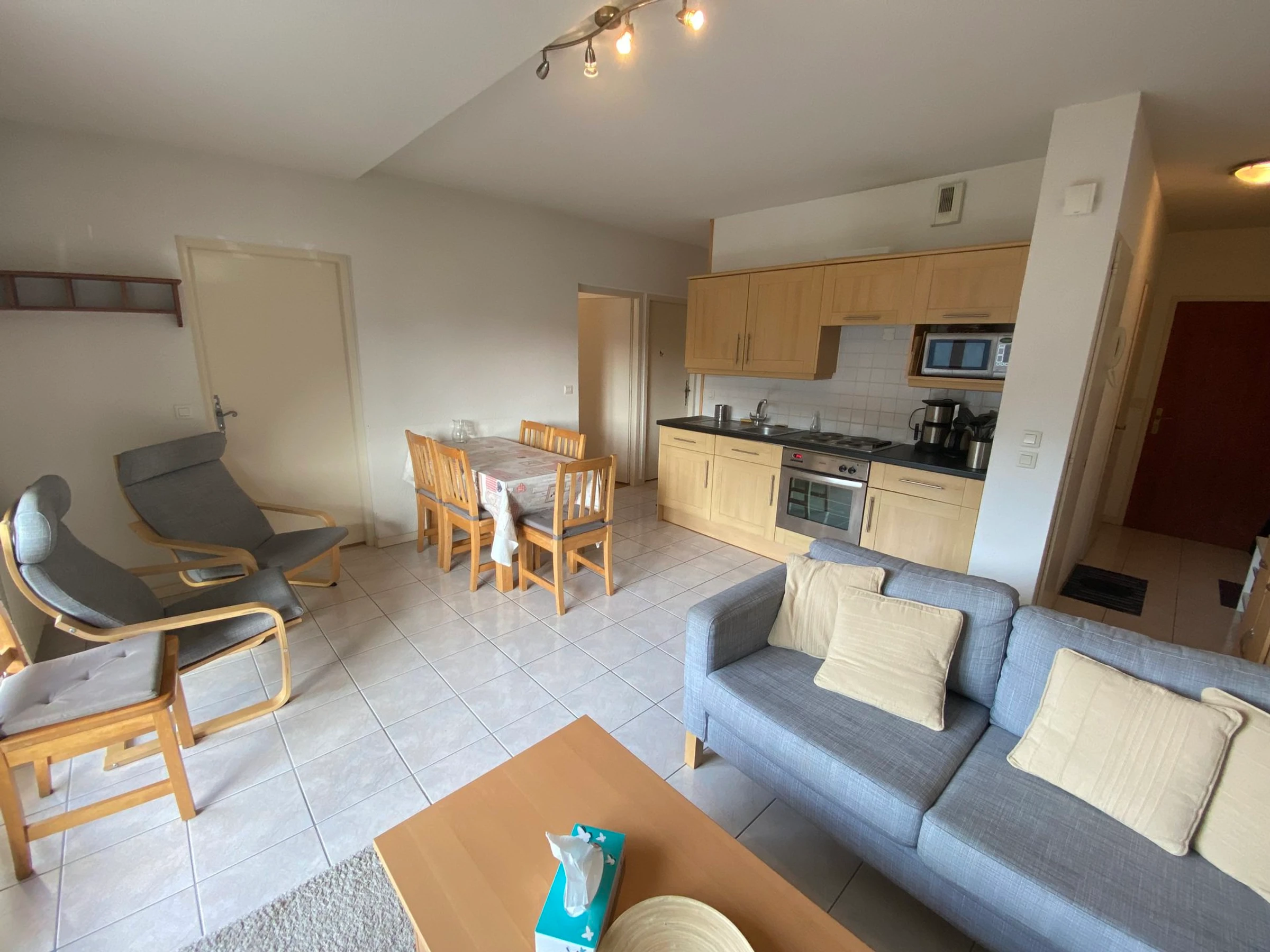 Apartamento en la 2.ª planta, de 53 m², con entrada, baño con ducha y WC, cocina equipada abierta al salón con acceso a un balcón orientado al sur/oeste.