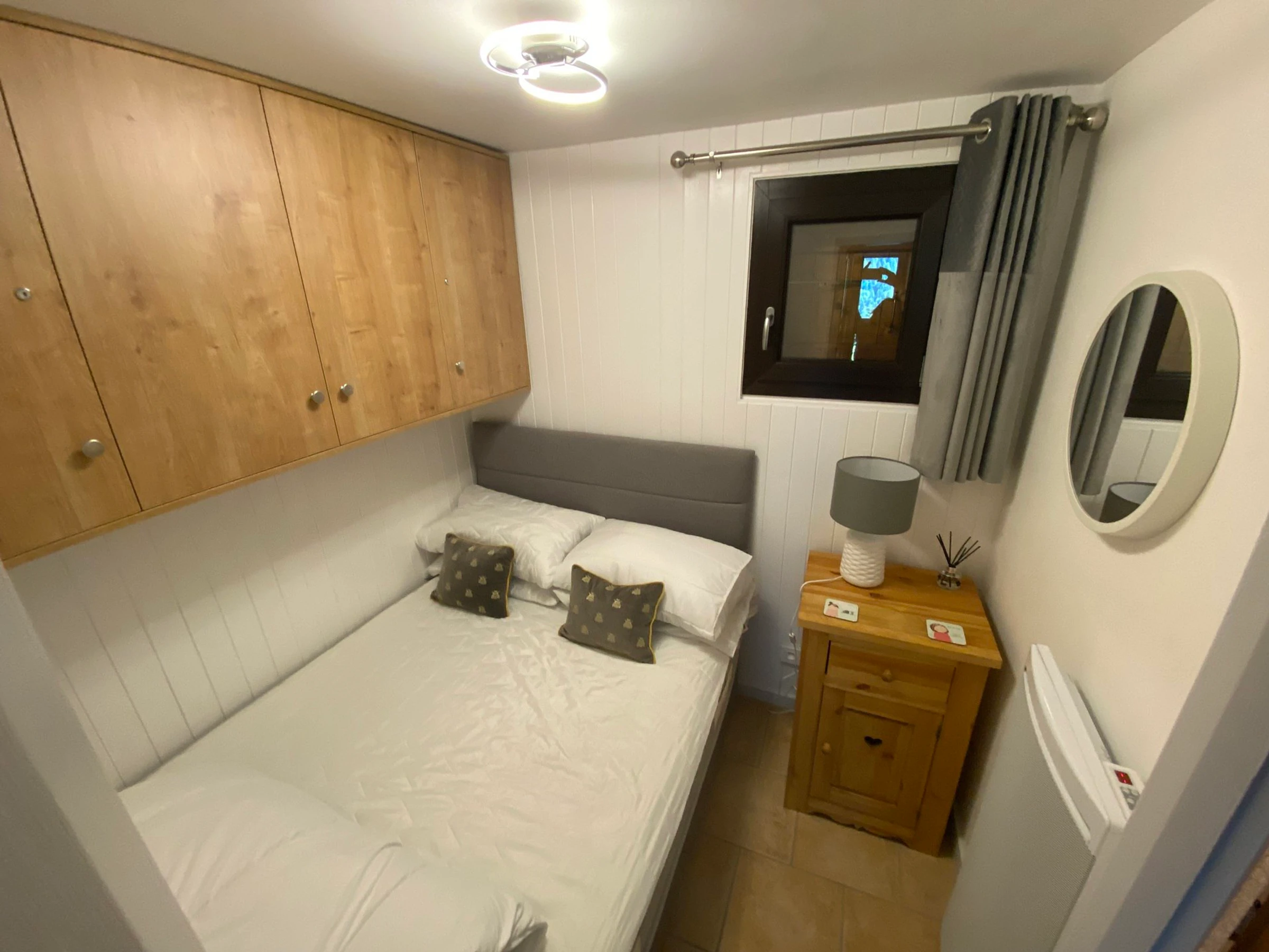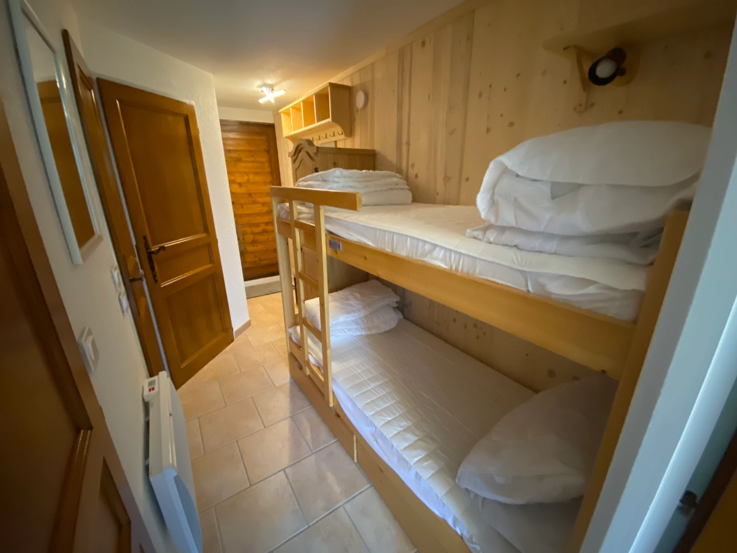 Apartamento en la planta -1, de 25 m², incluye entrada con zona de dormitorio, literas (90x190), dormitorio con cama doble (140x190), baño con ducha, aseo independiente, salón con cocina equipada y balcón orientado al sur/oeste.