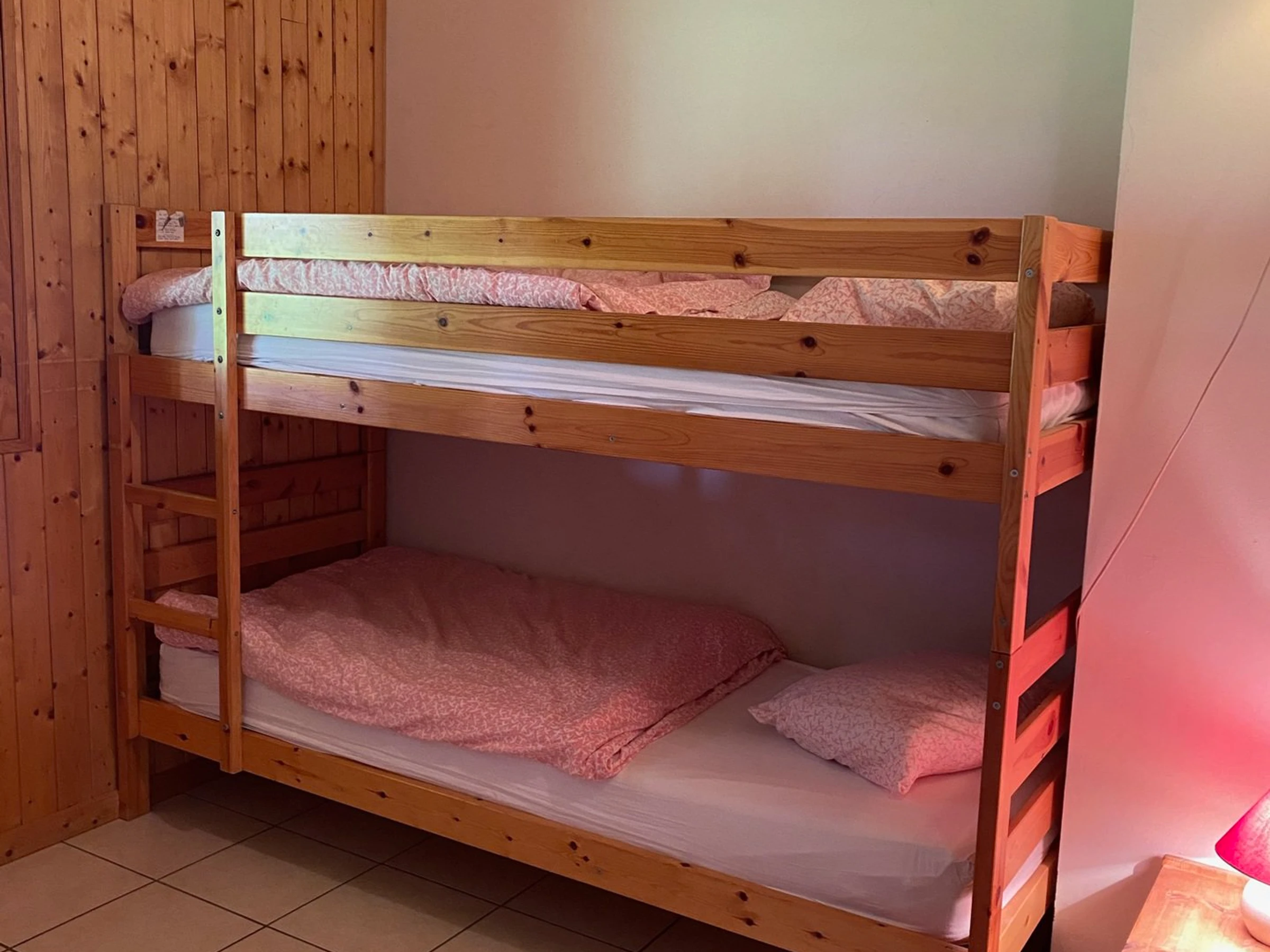 Apartamento en la 3.ª planta, 4 habitaciones + entreplanta de 30 m² (<1,80 m), con entrada, salón con cocina americana equipada (placa de inducción, horno, microondas, frigorífico y lavavajillas) y sofá cama, baño con ducha, lavabo e inodoro, otro baño con ducha, lavabo e inodoro separado. Un dormitorio con cama de matrimonio (160x200) y otro dormitorio con literas (90x190), una zona de dormitorio con 2 camas individuales (90x200) y una entreplanta con 2 camas individuales (90x200). Balcón orientado al sur.