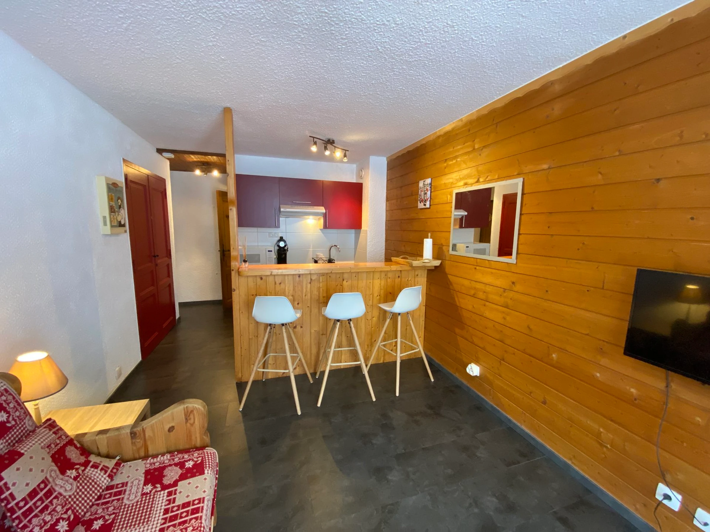 Apartamento ubicado en la 1.ª planta. Incluye entrada, baño con ducha, lavabo, inodoro y lavadora, salón con cocina americana equipada y sofá cama, y balcón con orientación norte/oeste.