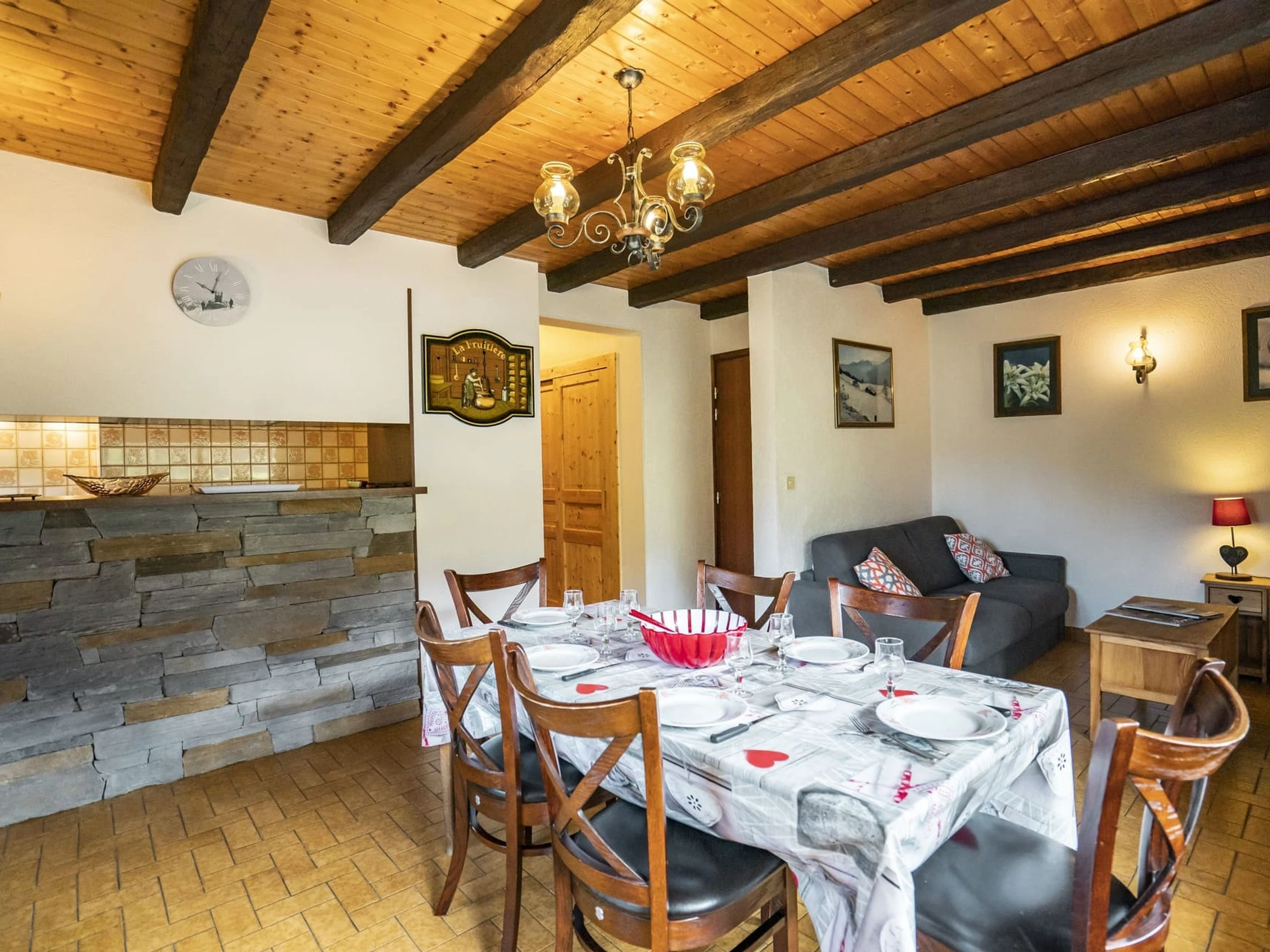Cocina independiente, 1 refrigerador con congelador, 1 horno, 1 microondas, 1 placa de inducción, 1 lavavajillas, 1 parrilla raclette, 1 juego de fondue, 1 hervidor eléctrico, 1 tostadora, 1 cafetera de filtro