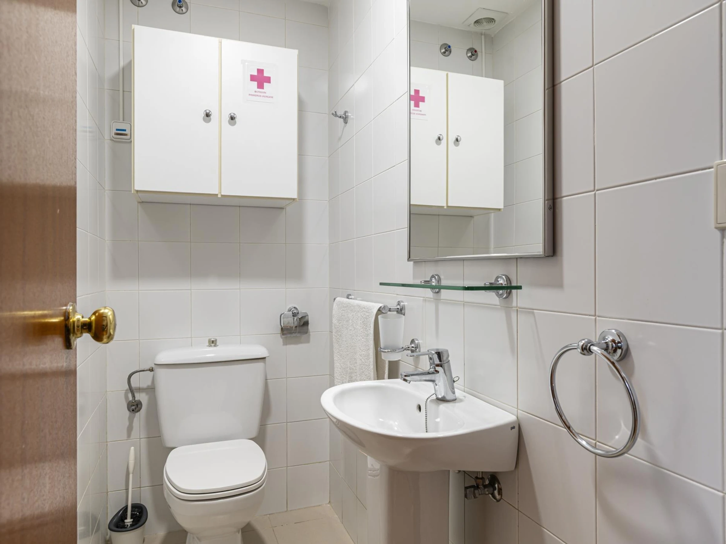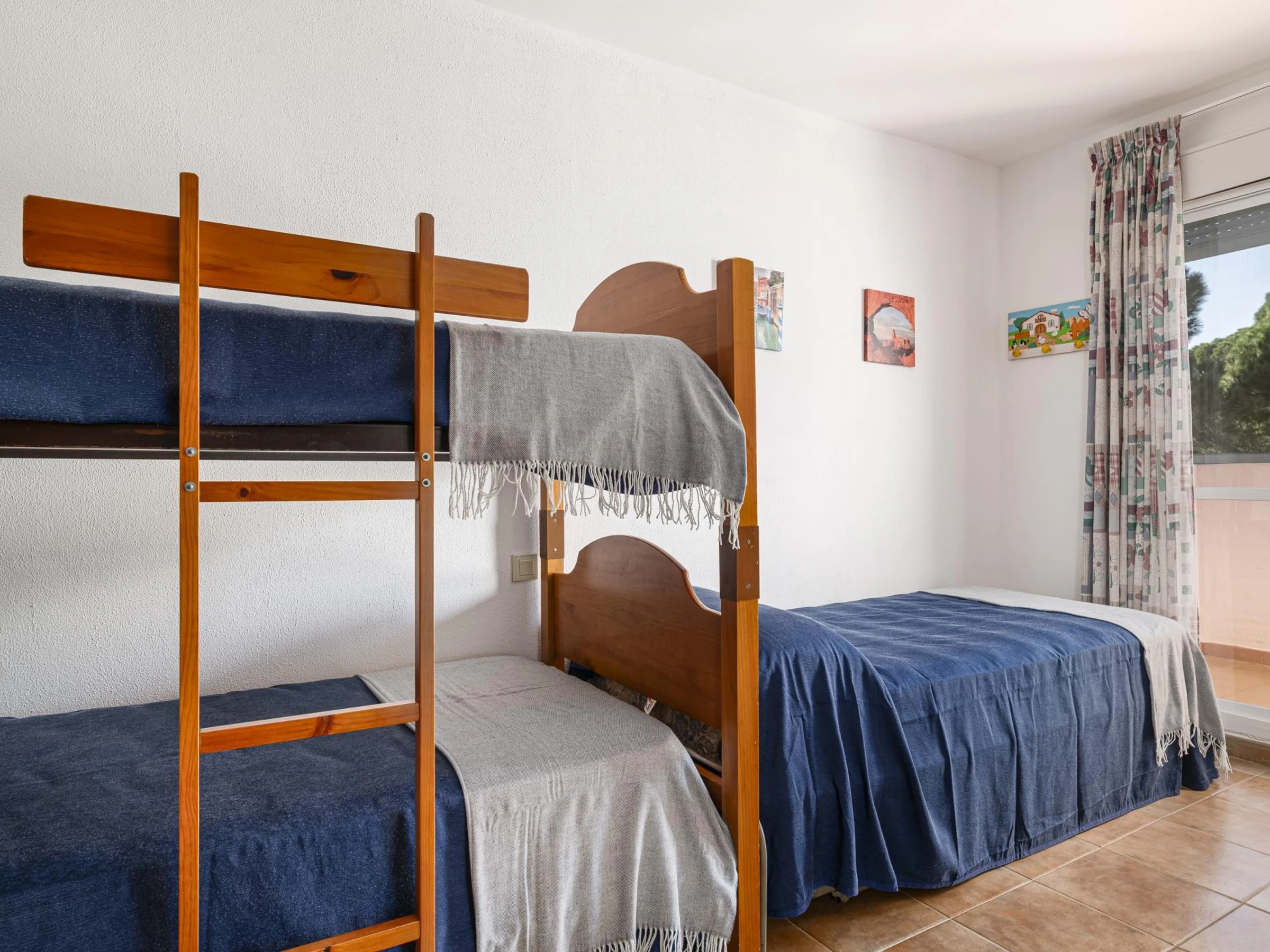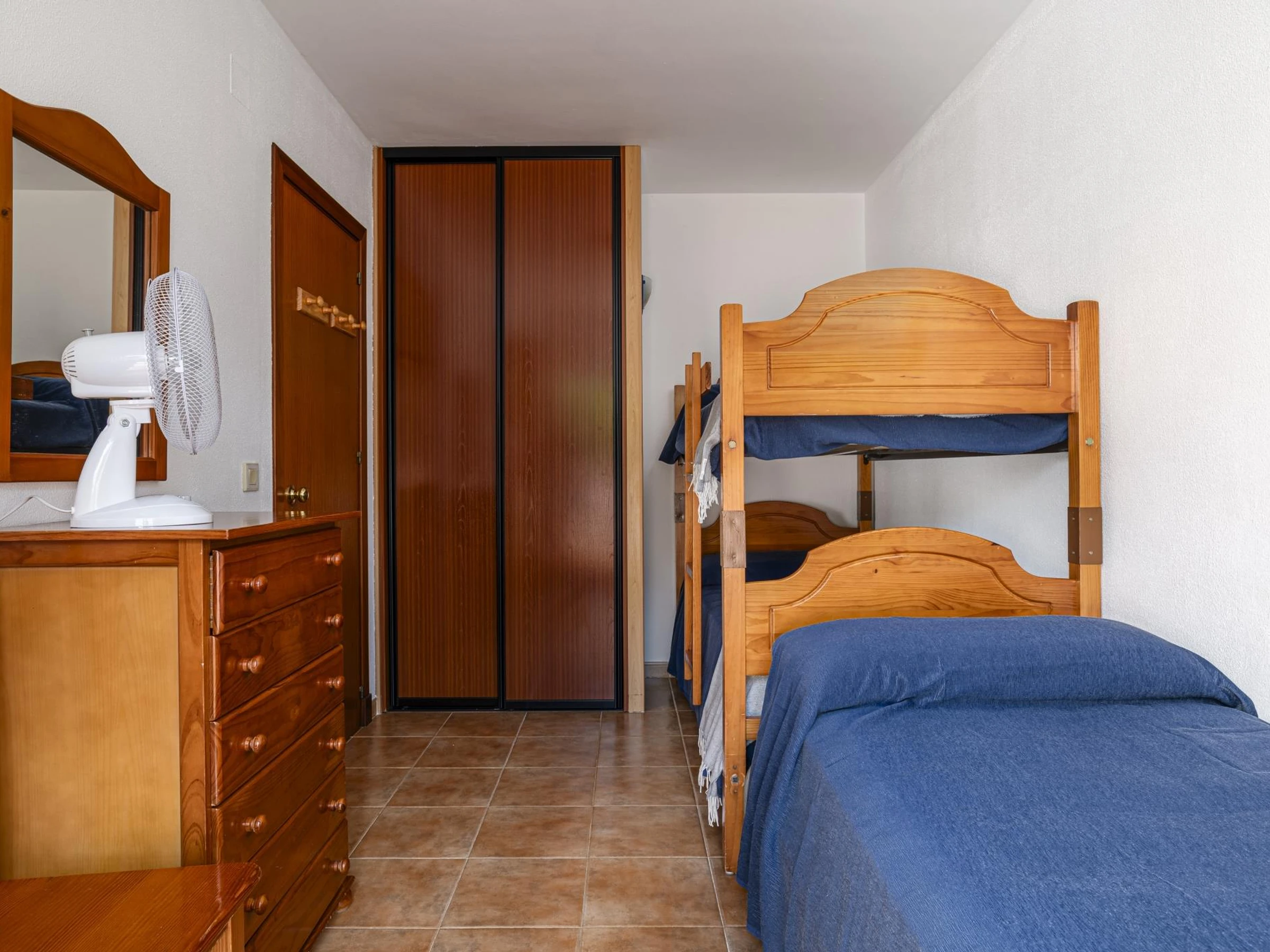 Subiendo a la primera planta, descubrirás dos acogedores dormitorios diseñados para el descanso y confort de todos los huéspedes. El dormitorio principal, con su elegante cama de matrimonio y vistas a los jardines, te invita a relajarte y desconectar. El segundo dormitorio, perfecto para familias, está equipado con literas, una cama individual adicional y un espacioso armario. Para mayor conveniencia, en esta planta también se encuentra el baño principal, equipado con todo lo necesario.