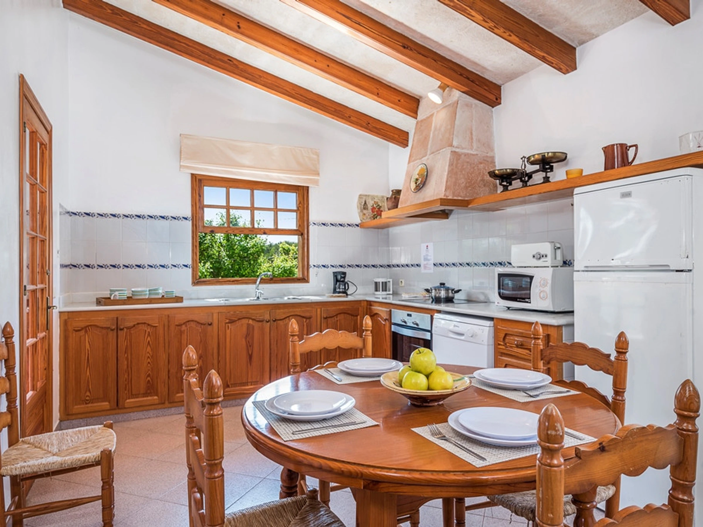 Hay un amplio salón y una cocina muy espaciosa. La cocina totalmente equipada es un punto fuerte de la casa, con nevera, lavadora, congelador, cafetera, horno, lavavajillas, microondas, y una amplia variedad de utensilios que facilitarán la preparación de comidas durante la estancia.