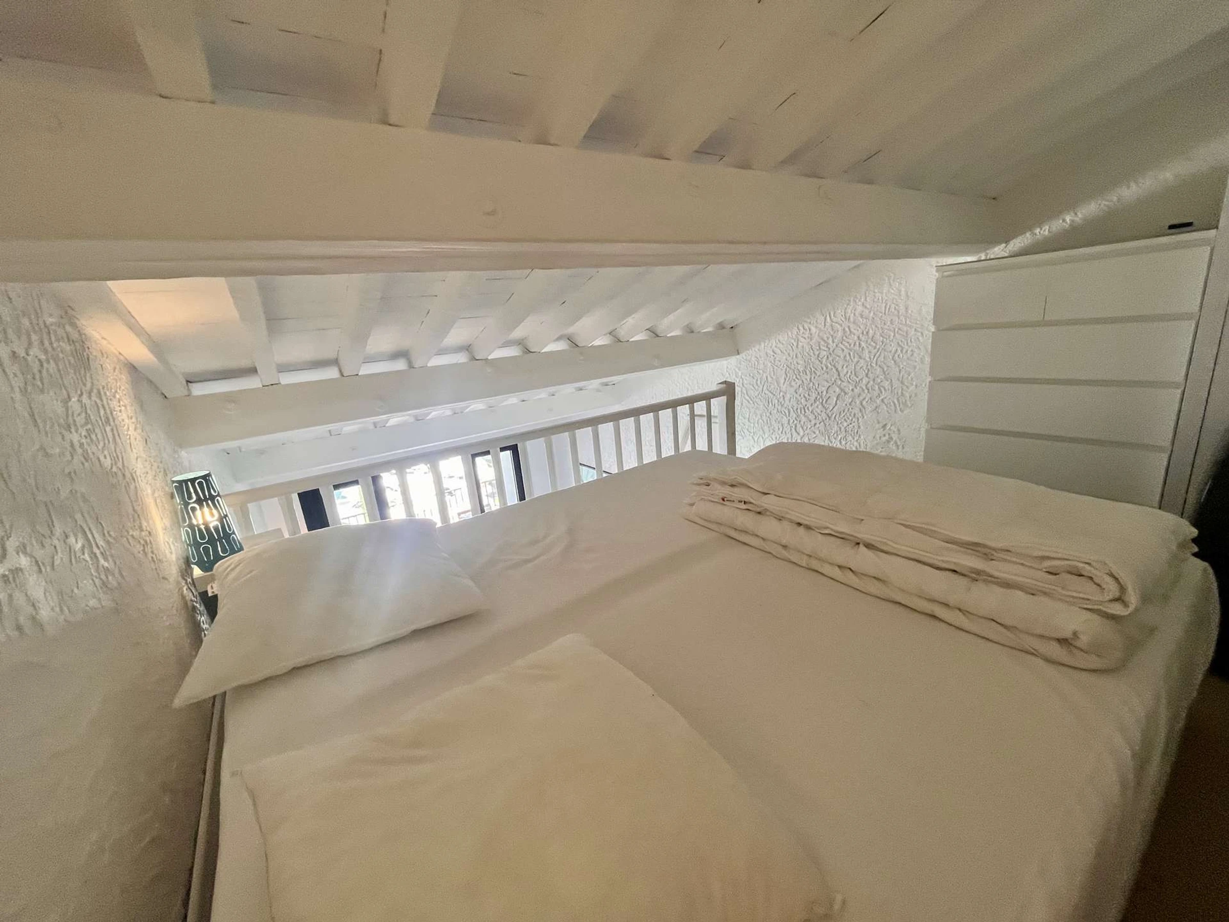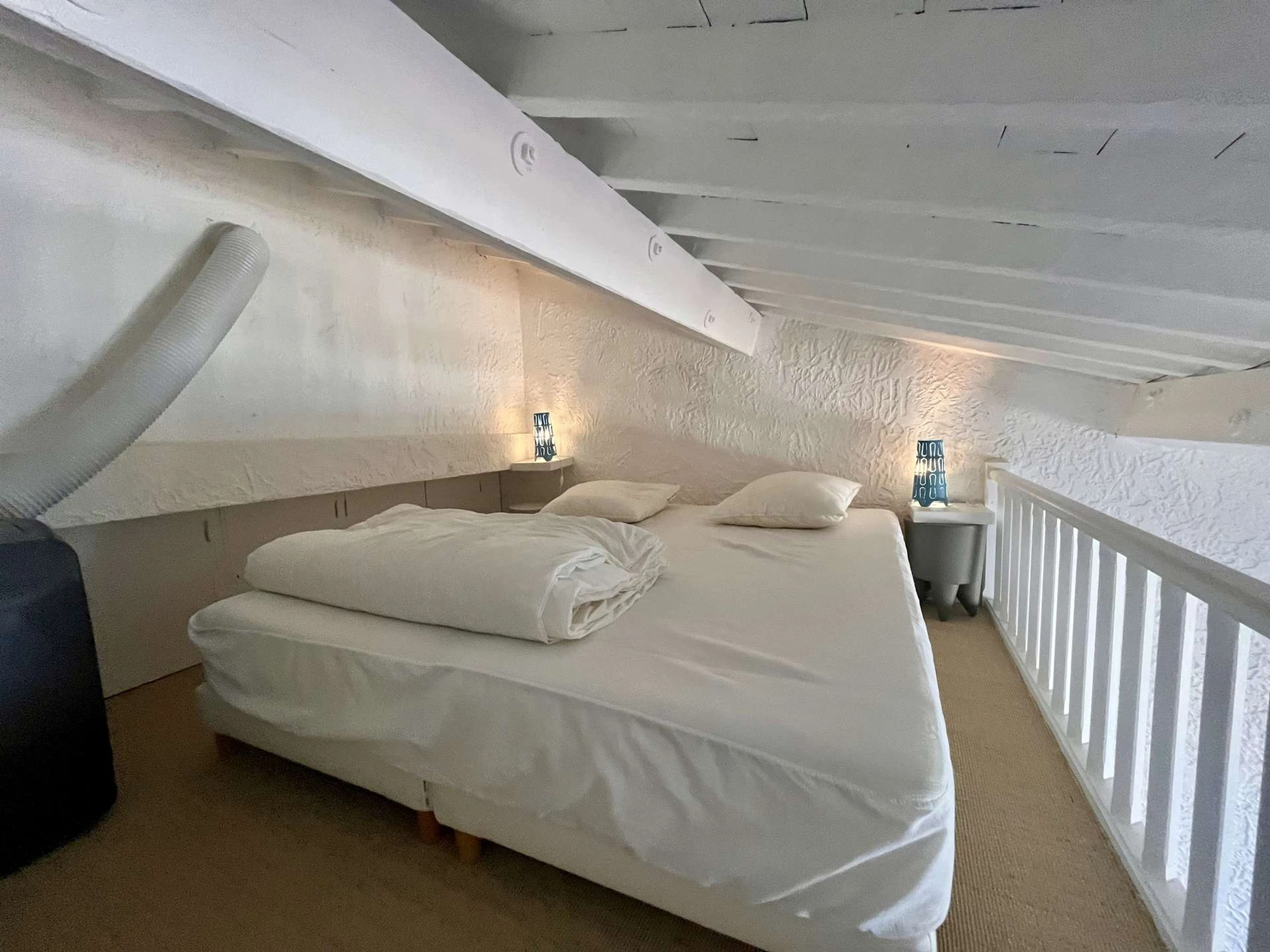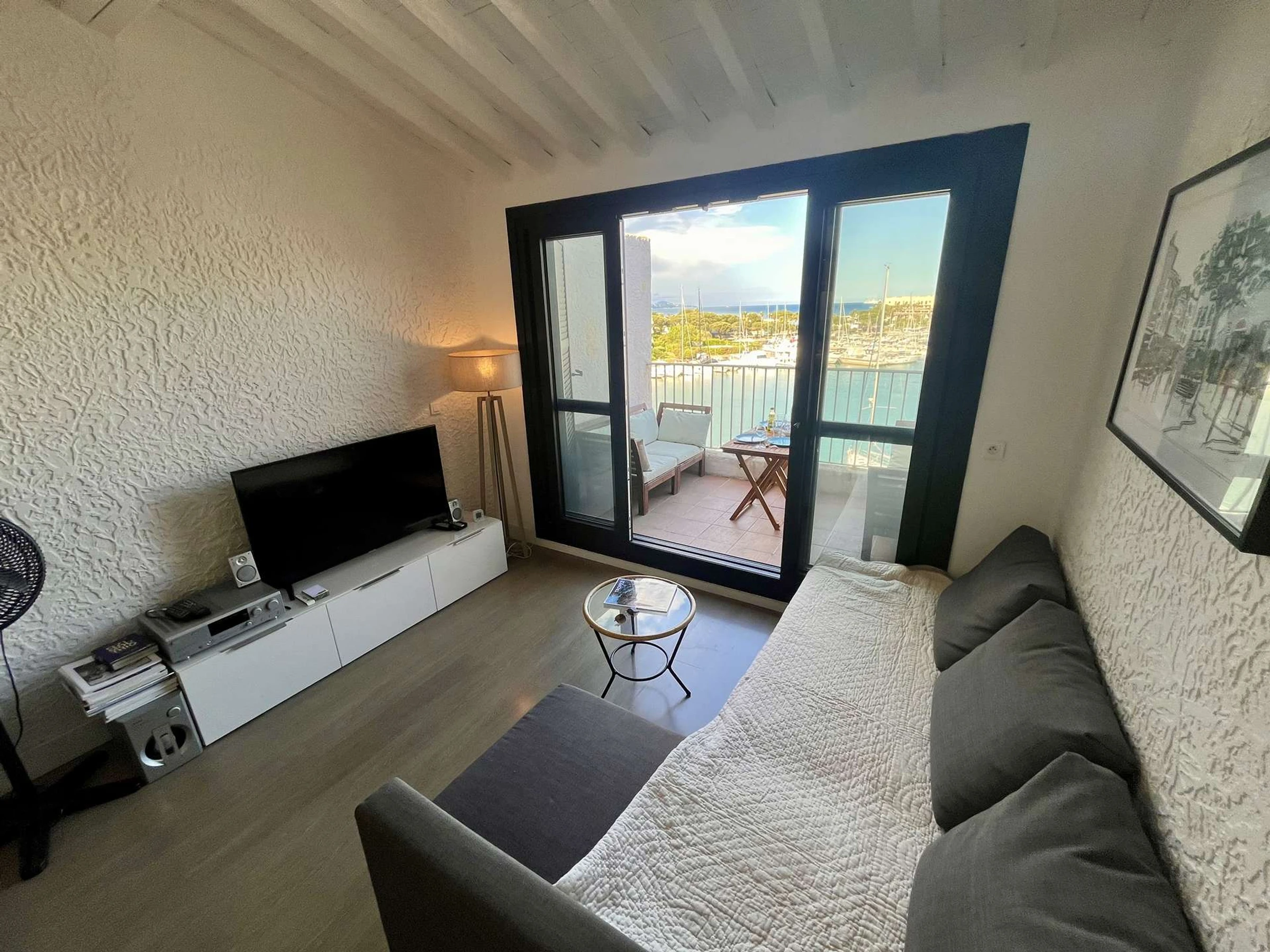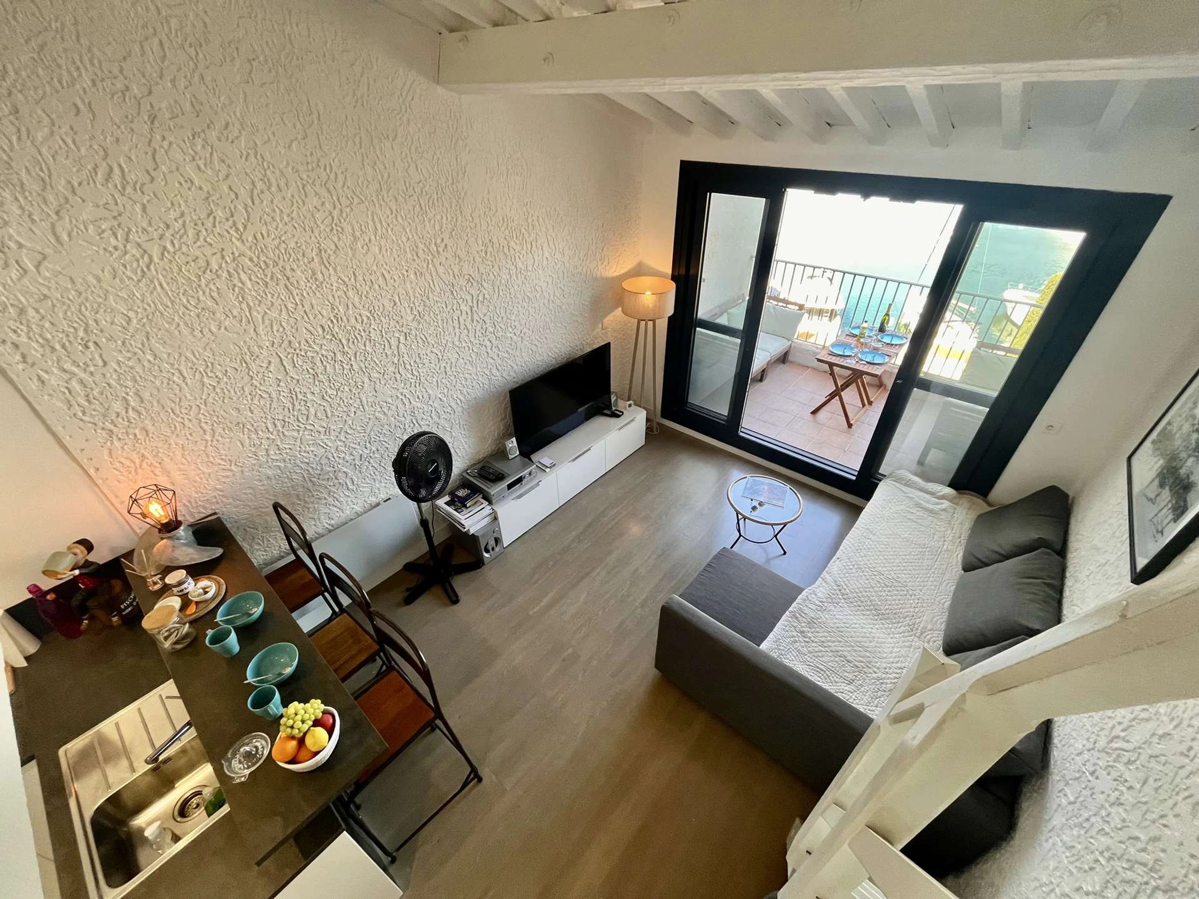 Este apartamento de vacaciones situado en el 3er piso, se compone de una sala de estar con cocina equipada, el sofá es convertible en 140 cm, un baño y un WC separado, en el entrepiso, una zona de dormitorio con 2 camas de 90 cm y un aire acondicionado móvil. También encontrarás una terraza con vistas al puerto deportivo.