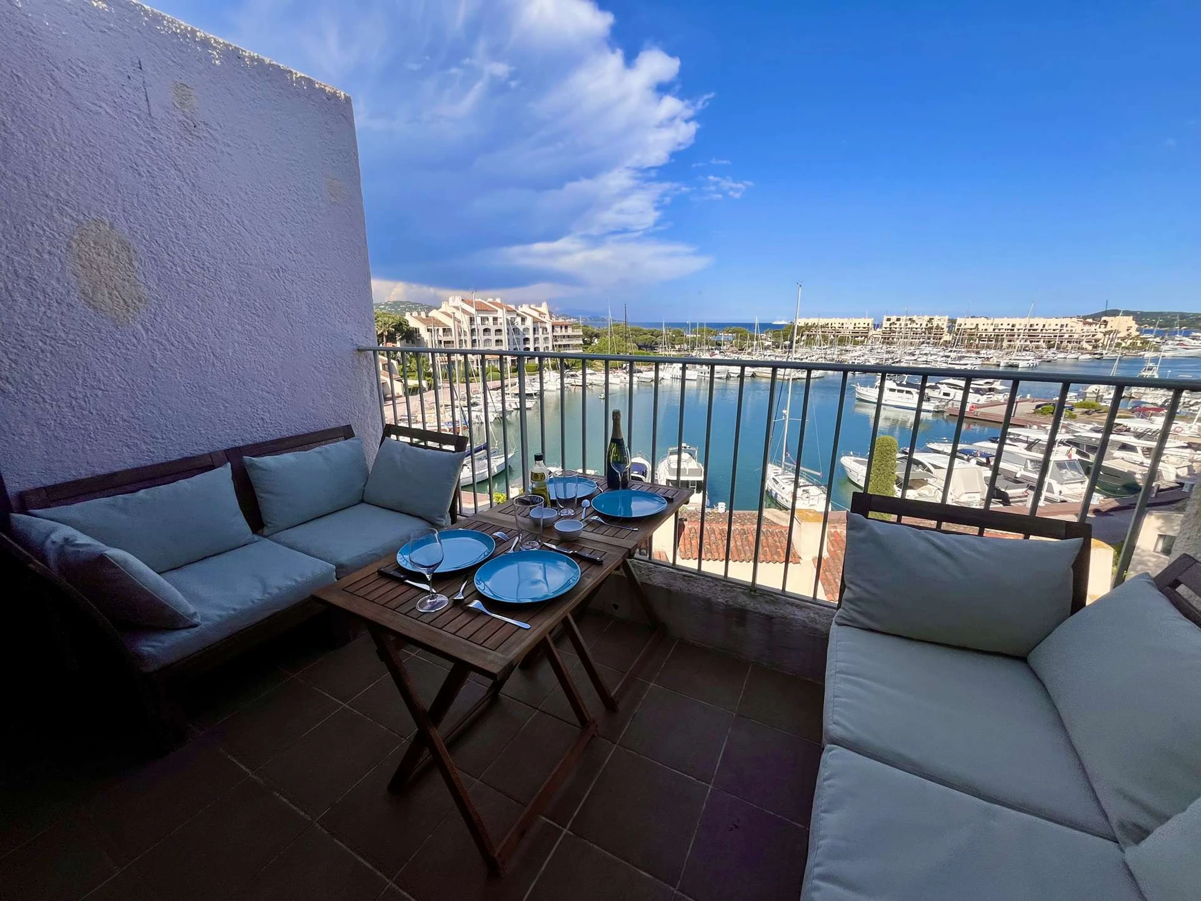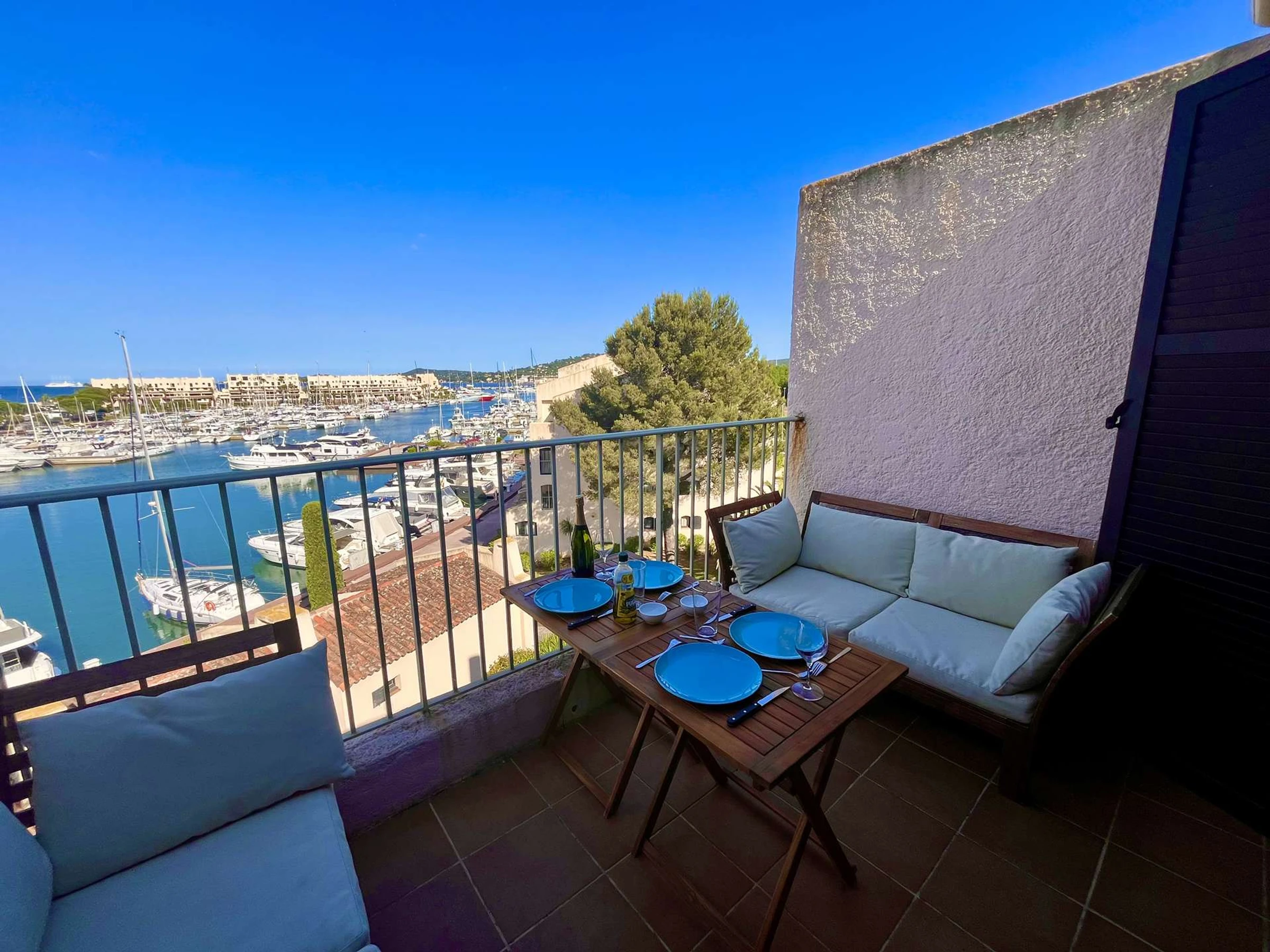 Las ventajas de este alojamiento junto al mar: el apartamento es funcional, la vista desde su terraza cambia a lo largo del día y la ubicación de la residencia te acerca a Saint-Tropez.