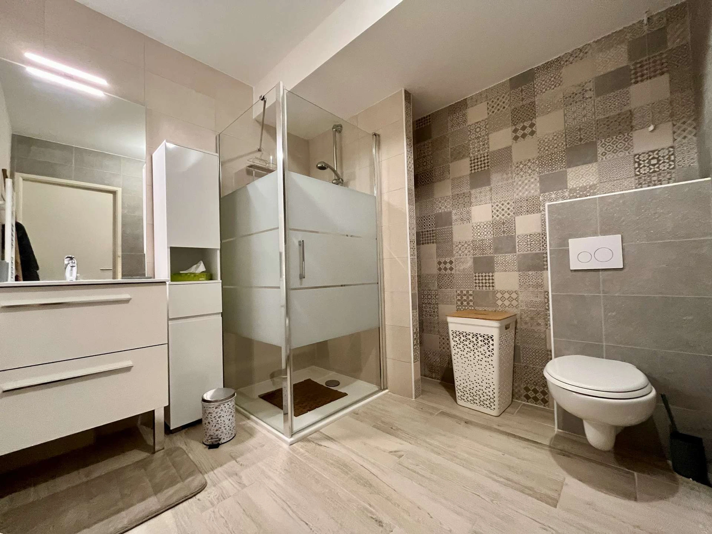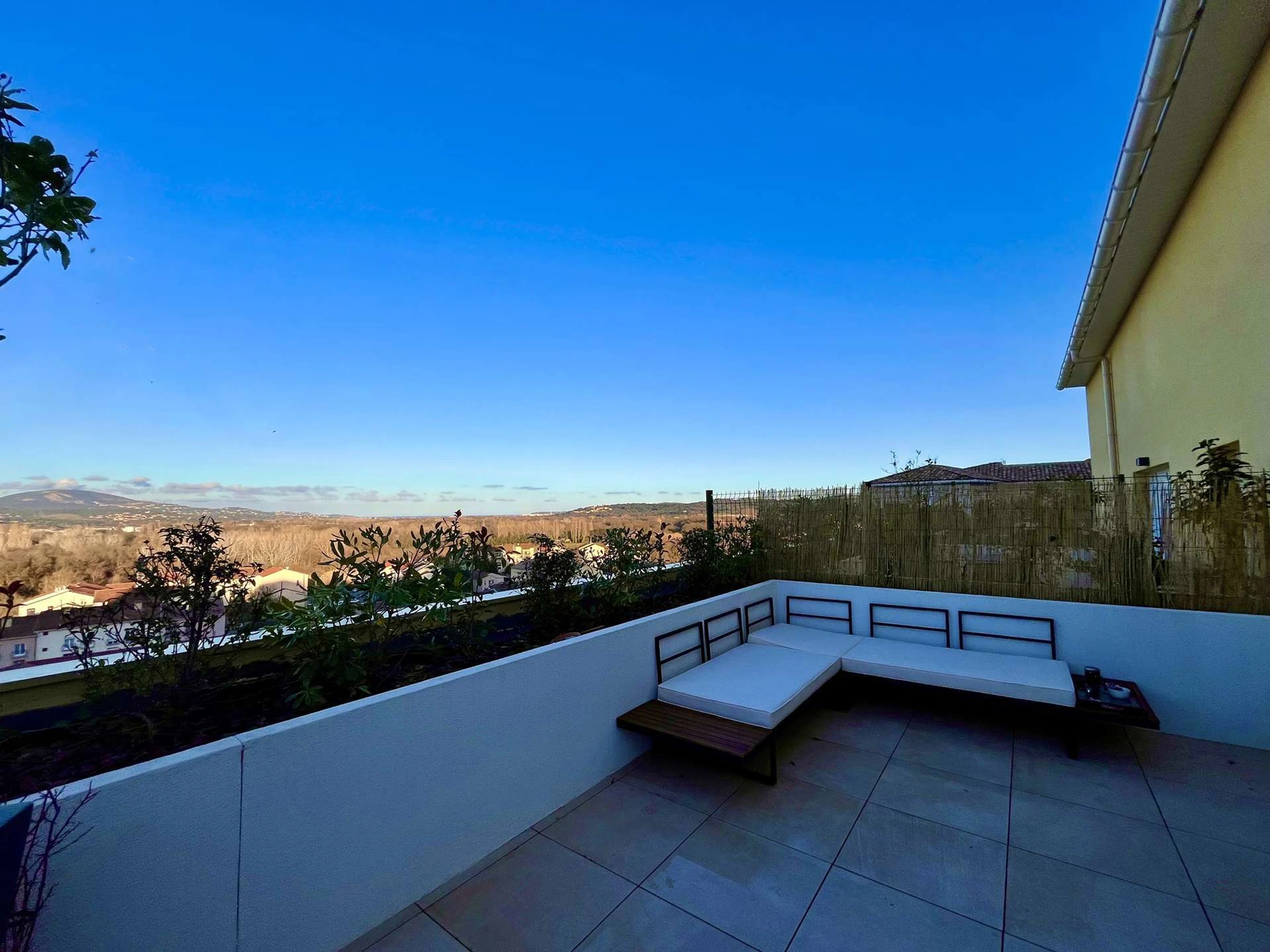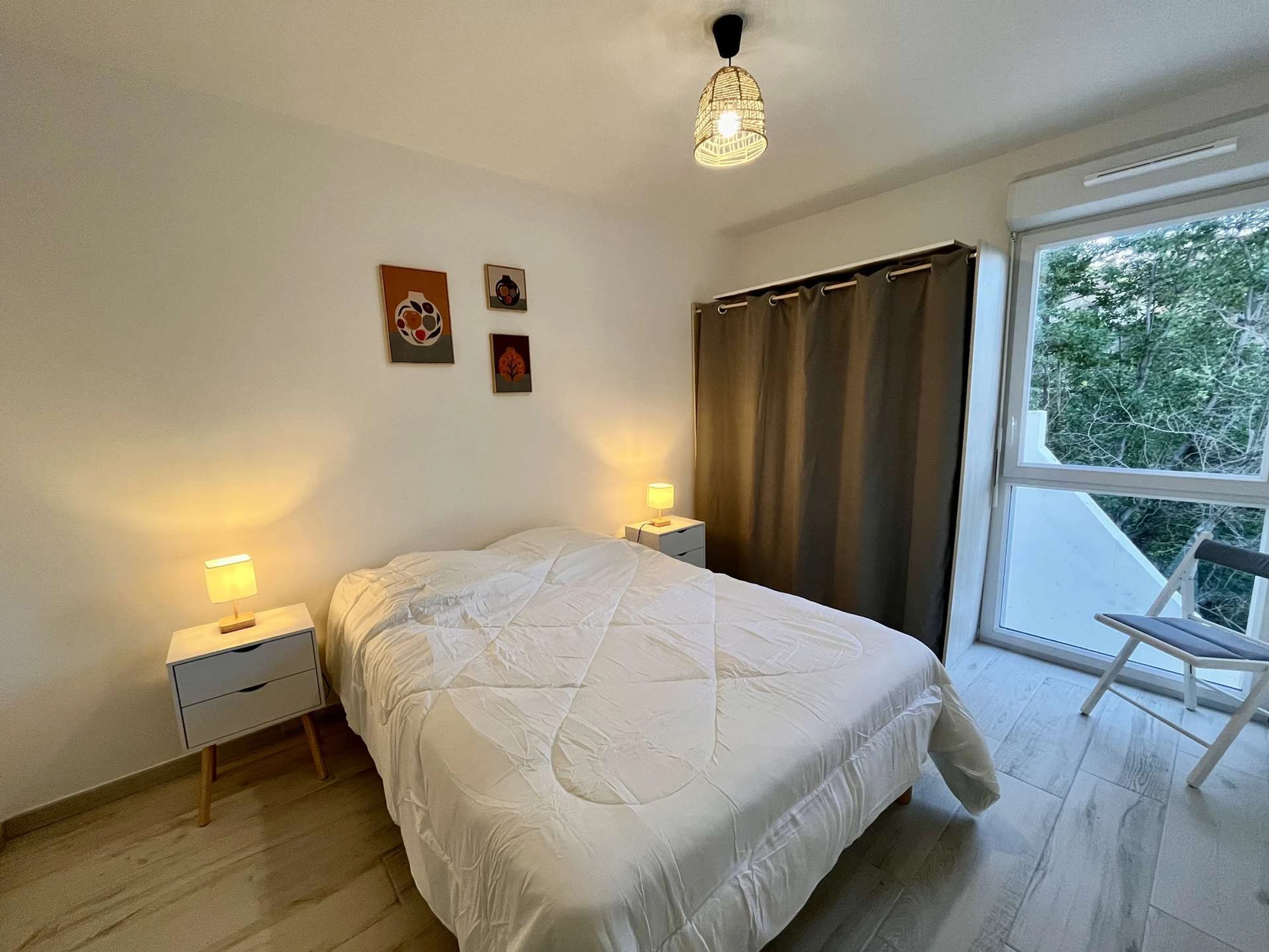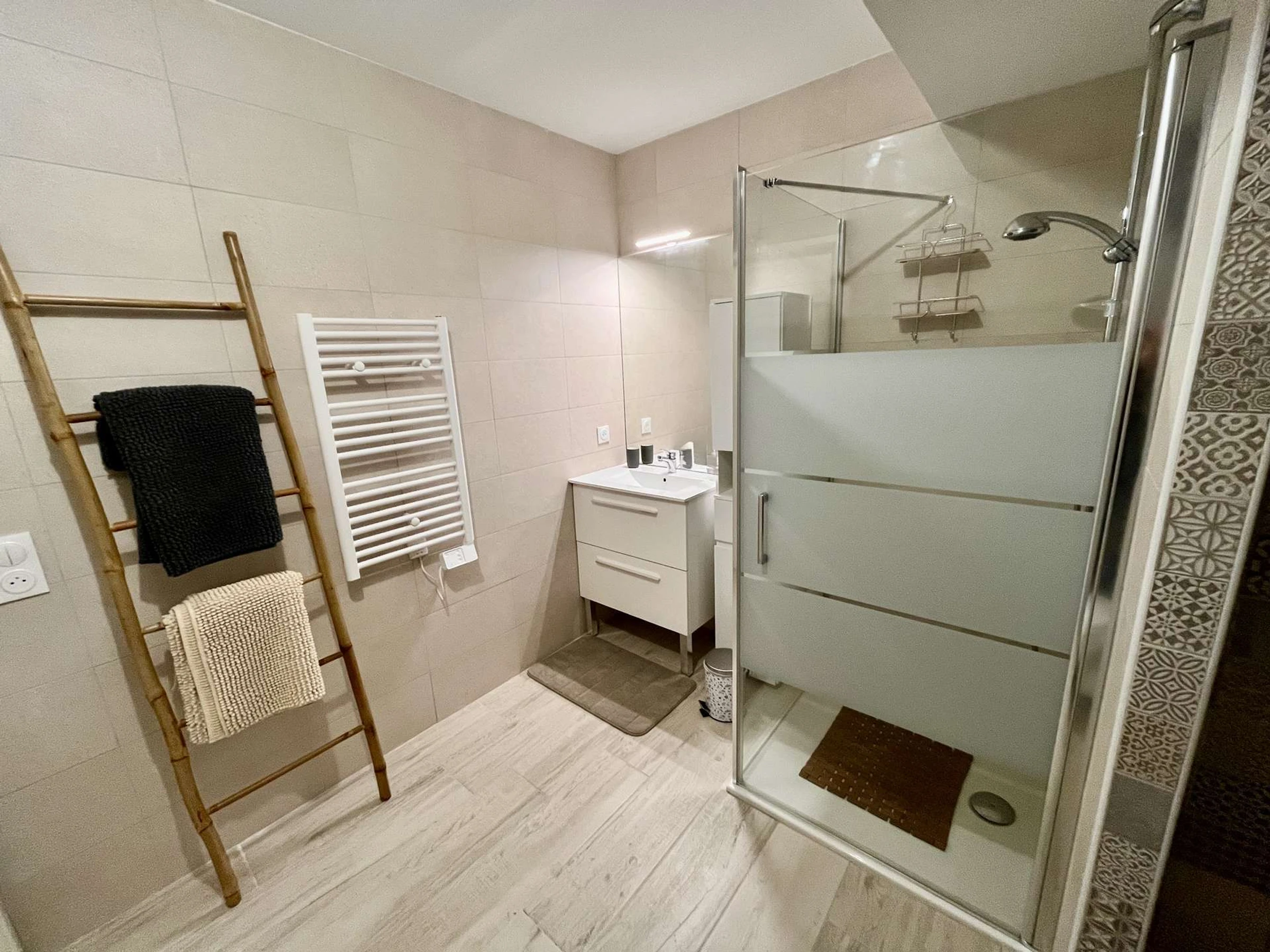 El apartamento consta de un salón con sofá cama de 160 cm, una cocina totalmente equipada, una preciosa terraza con vistas a Grimaud y su castillo, un dormitorio con cama doble de 160 cm, un baño con ducha a ras de suelo y un aseo independiente.