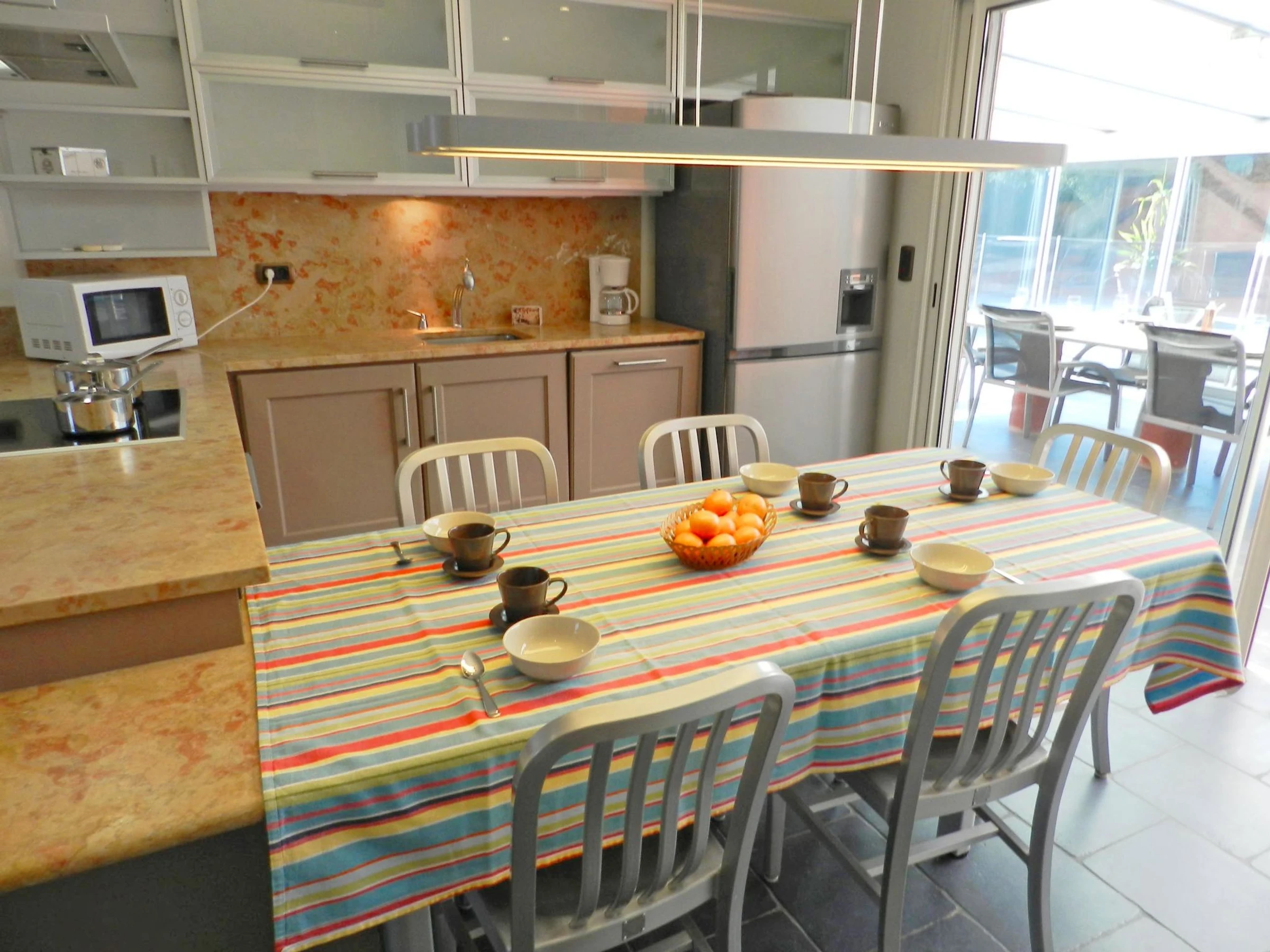 Villa 4 habitaciones 85 m2. Luminoso, con mobiliario bonito y moderno: entrada. Salón-comedor con TV (pantalla plana). Salida al balcón acristalado. 1 dorm. con 1 cama de matrimonio (1 x 140 cm, 190 cm de longitud), ducha/WC y TV (pantalla plana). 1 dorm. con 1 cama (90 cm, 190 cm de longitud), 1 x 2 literas (90 cm, 190 cm de longitud). 1 dorm. con 1 cama de matrimonio (1 x 140 cm, 190 cm de longitud). Cocina abierta (horno, lavavajillas, 4 placas de vitrocerámica, microondas, congelador, cafetera eléctrica). Ducha, WC separado. Terraza grande 50 m2. Muebles de terraza. El alojamiento dispone de: lavadora. Internet (Wifi, extra). A tener en cuenta: apartamento que da a la calle. 1 mascota / perro. Detector de humo. x.