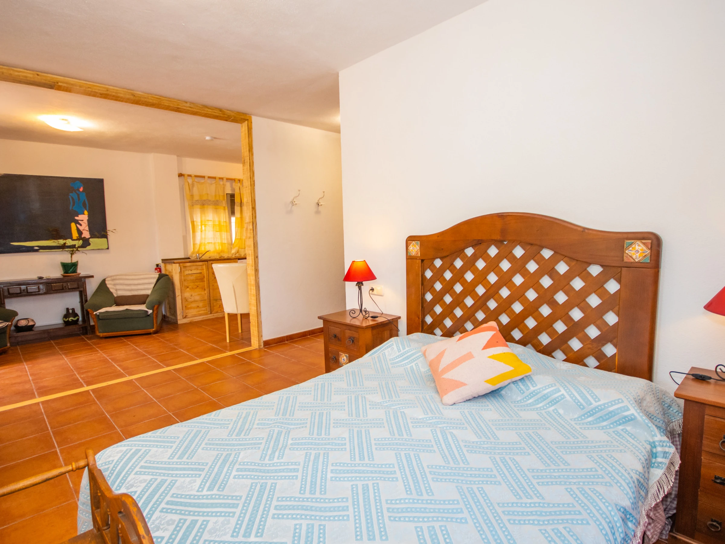 Disfruta de un acogedor y tranquilo estudio rural para 2 personas, ubicado en una casa grande pero con total privacidad, incluyendo el uso exclusivo de la piscina y el jardín. Cuenta con entrada propia y parking privado para tu comodidad. La cama de matrimonio y el ambiente amplio hacen de este espacio el lugar ideal para relajarte en pareja, rodeado de un entorno natural y sin ruidos.