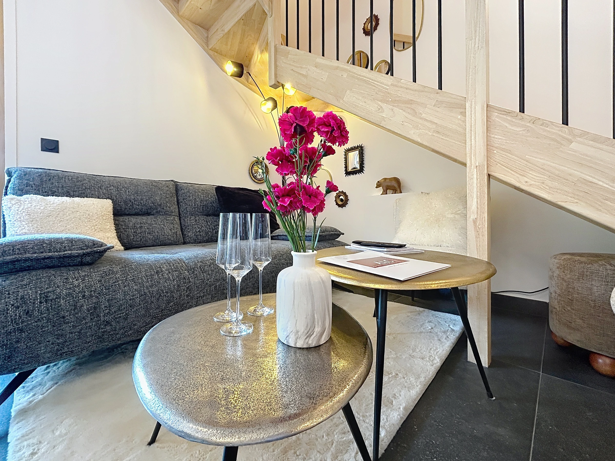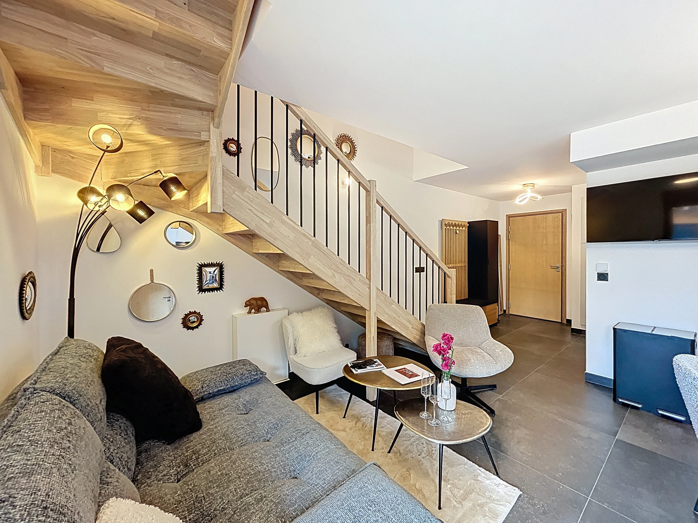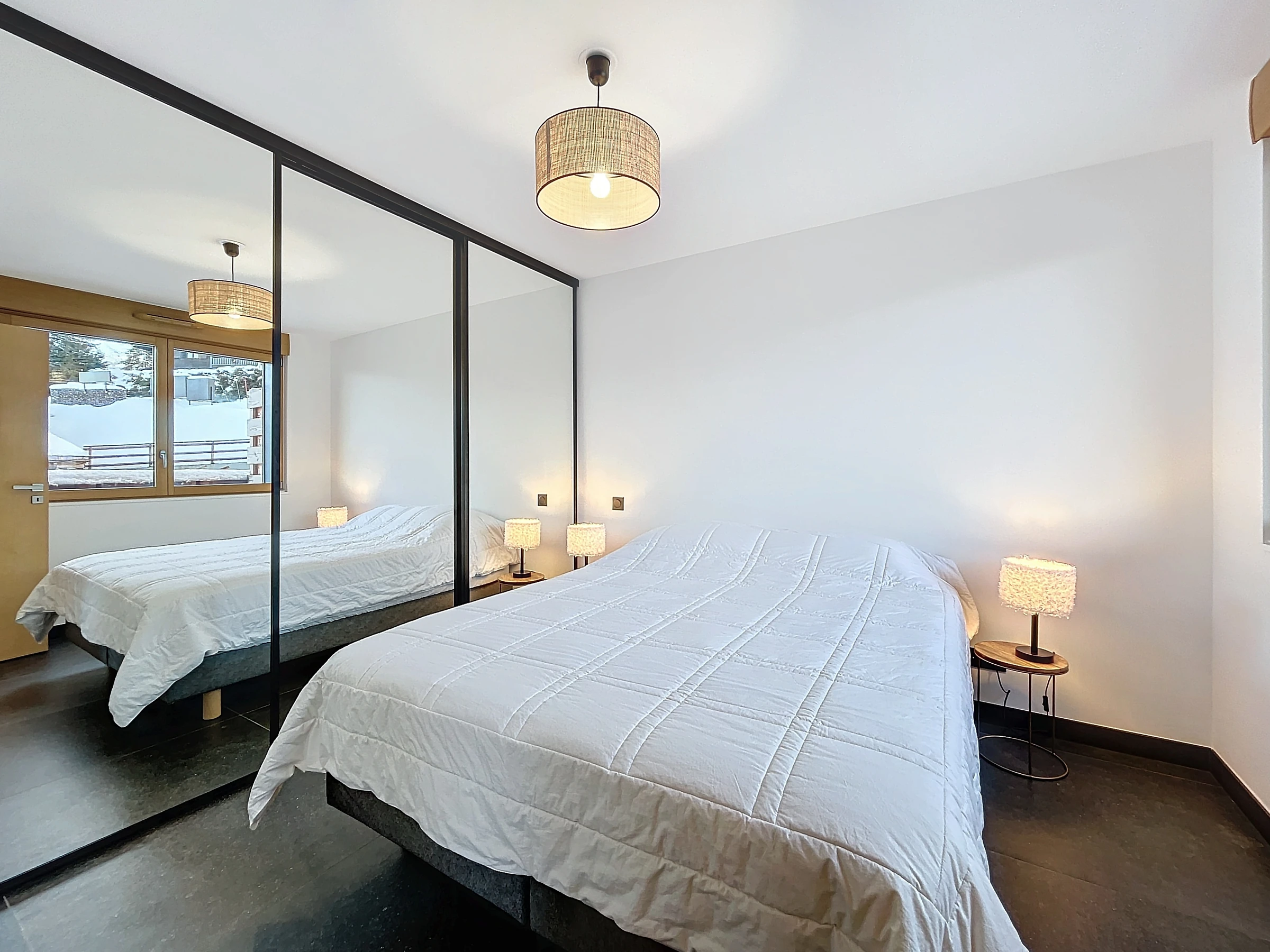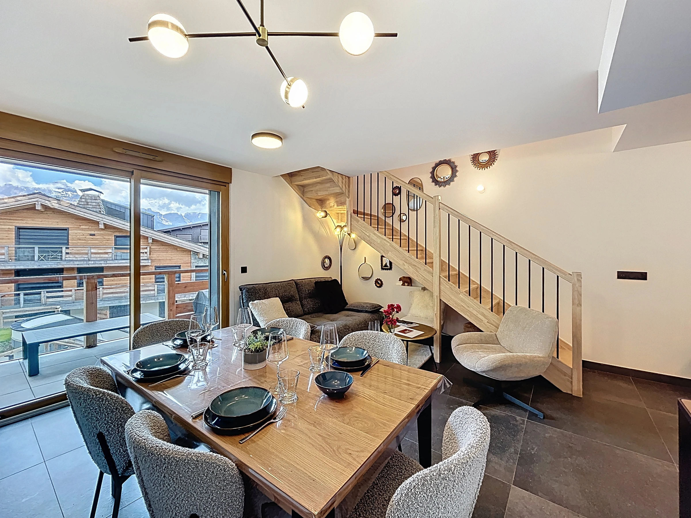Hermoso apartamento dúplex nuevo, de 2 dormitorios, en el segundo piso con ascensor, en una nueva residencia de lujo, ubicada en las inmediaciones del área de esquí Les Portes du Mont Blanc. Consta de una entrada, un espacio de estar abierto con cocina equipada, sala de estar con sofá cama exclusivo para niños (1 plaza 80x160), que da a un hermoso balcón, un dormitorio con una cama de matrimonio 160x190, un amplio vestidor, un baño con ducha, un aseo. En el nivel superior, un dormitorio doble con una cama de 140 x 190, trastero, acceso a un balcón con vista despejada, un baño con ducha con lavadora y secadora. SERVICIOS DE CONFORT incluidos por una semana, con cotización a partir de dos semanas.