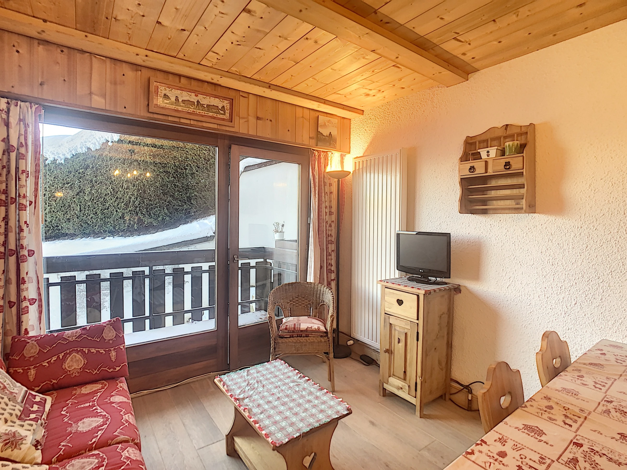 En una residencia situada al pie de las pistas de esquí en invierno y a 3,5 km de Combloux, estudio de aproximadamente 30 m2 en el 1er piso, compuesto por: entrada, aseo, cuarto de baño con lavadora, cabina con 2 literas, salón habitación con sofá cama para 2 personas, zona de cocina equipada (horno, vitrocerámica, frigorífico y pequeño lavavajillas), balcón. Local de esquí.