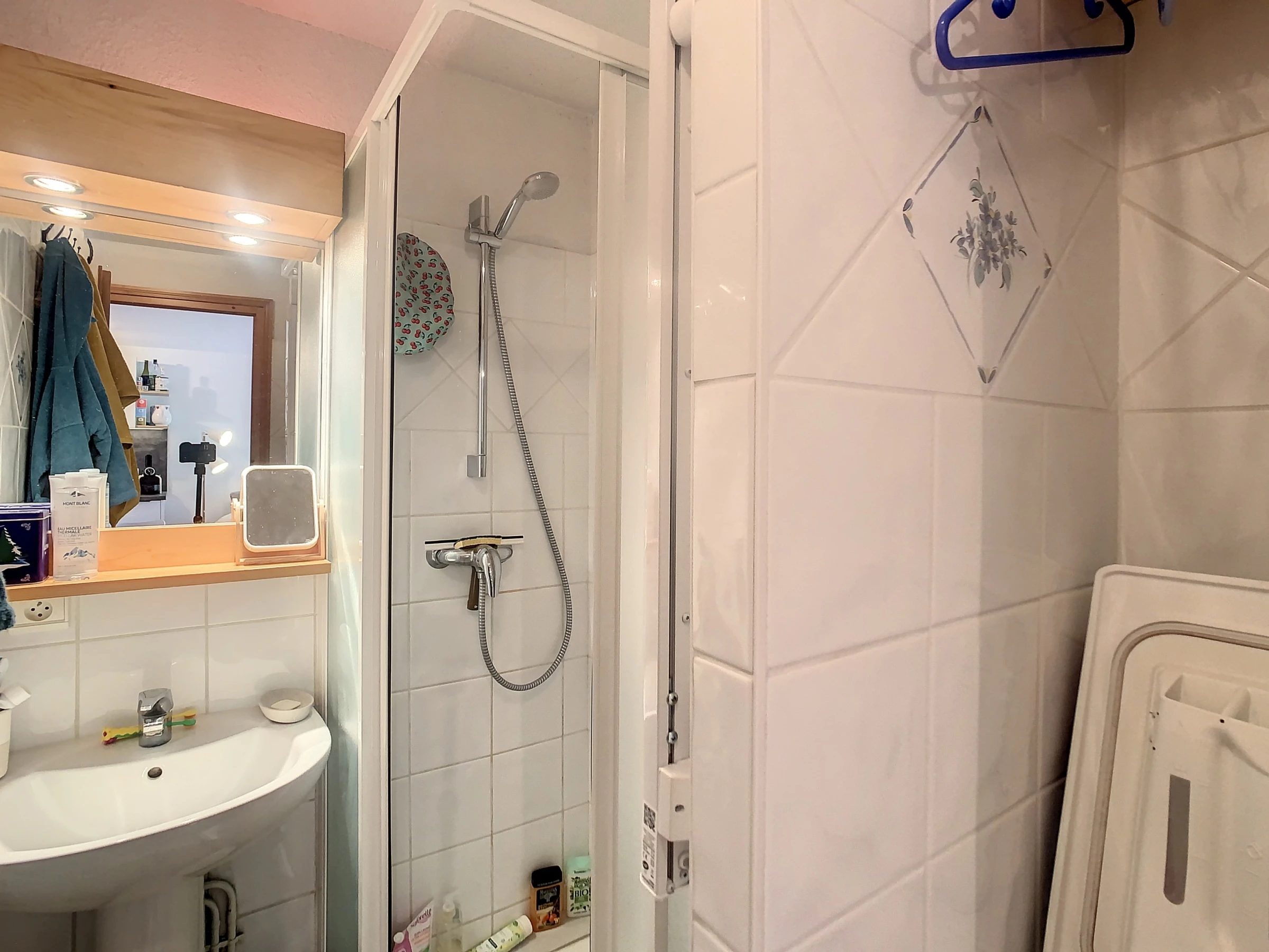 Cerca del pueblo de Combloux, apartamento de 2 habitaciones + tipo cabaña compuesto por: una entrada con armario empotrado, un WC separado, un cuarto de baño con ducha y lavadora, un dormitorio tipo cabaña con literas de 80 cm, un dormitorio con 2 camas individuales (80) empujadas. juntos para formar una cama de 160 y un salón con cocina abierta y equipada (nevera con congelador, lavavajillas, placa de inducción de 3 fuegos, dúo horno/microondas, cafetera + Nespresso, hervidor, tostadora, etc...). Se alquila con guardaesquís.