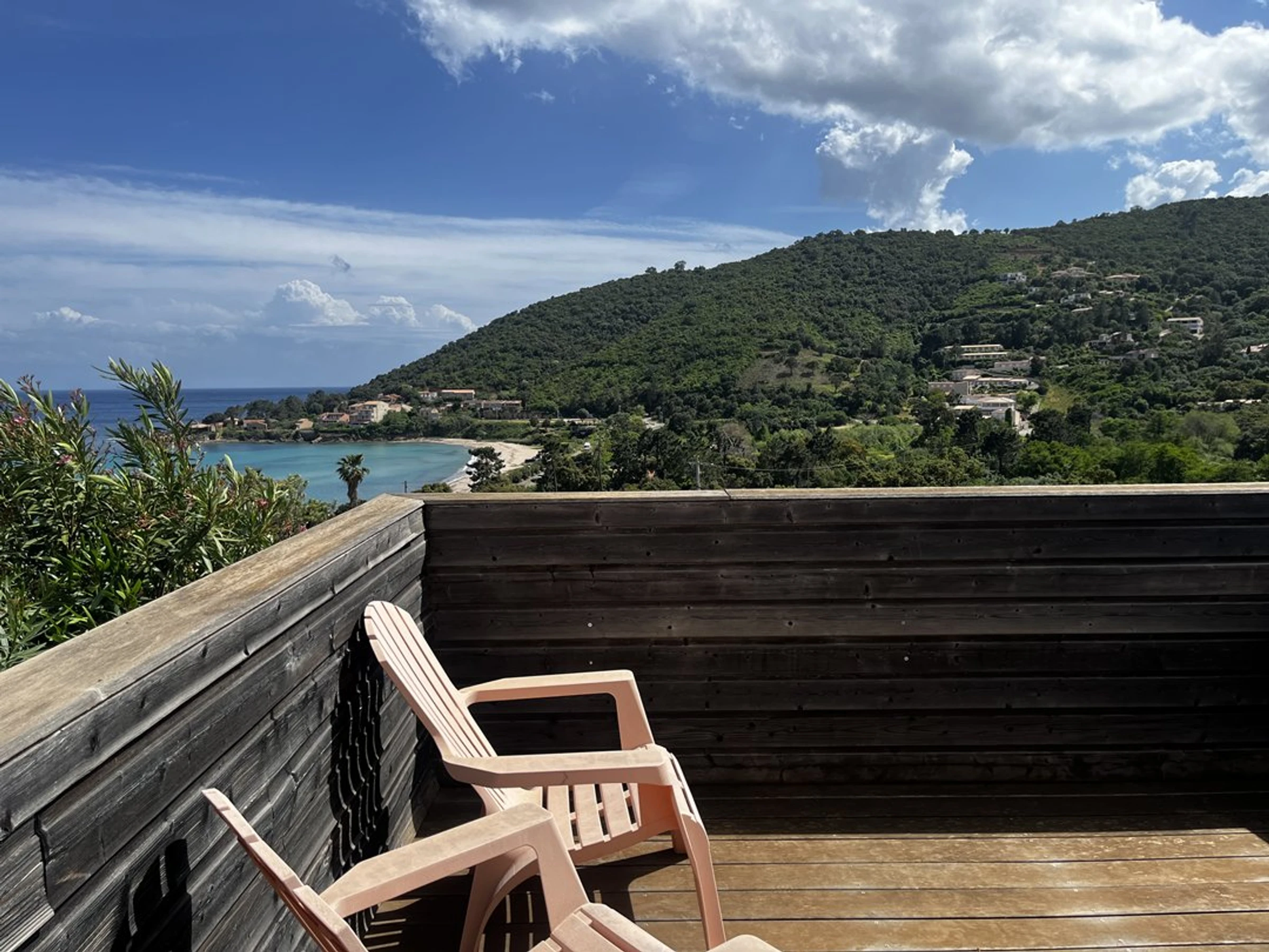 Terraza (cubierta) con vistas al mar: muebles de jardín, barbacoa