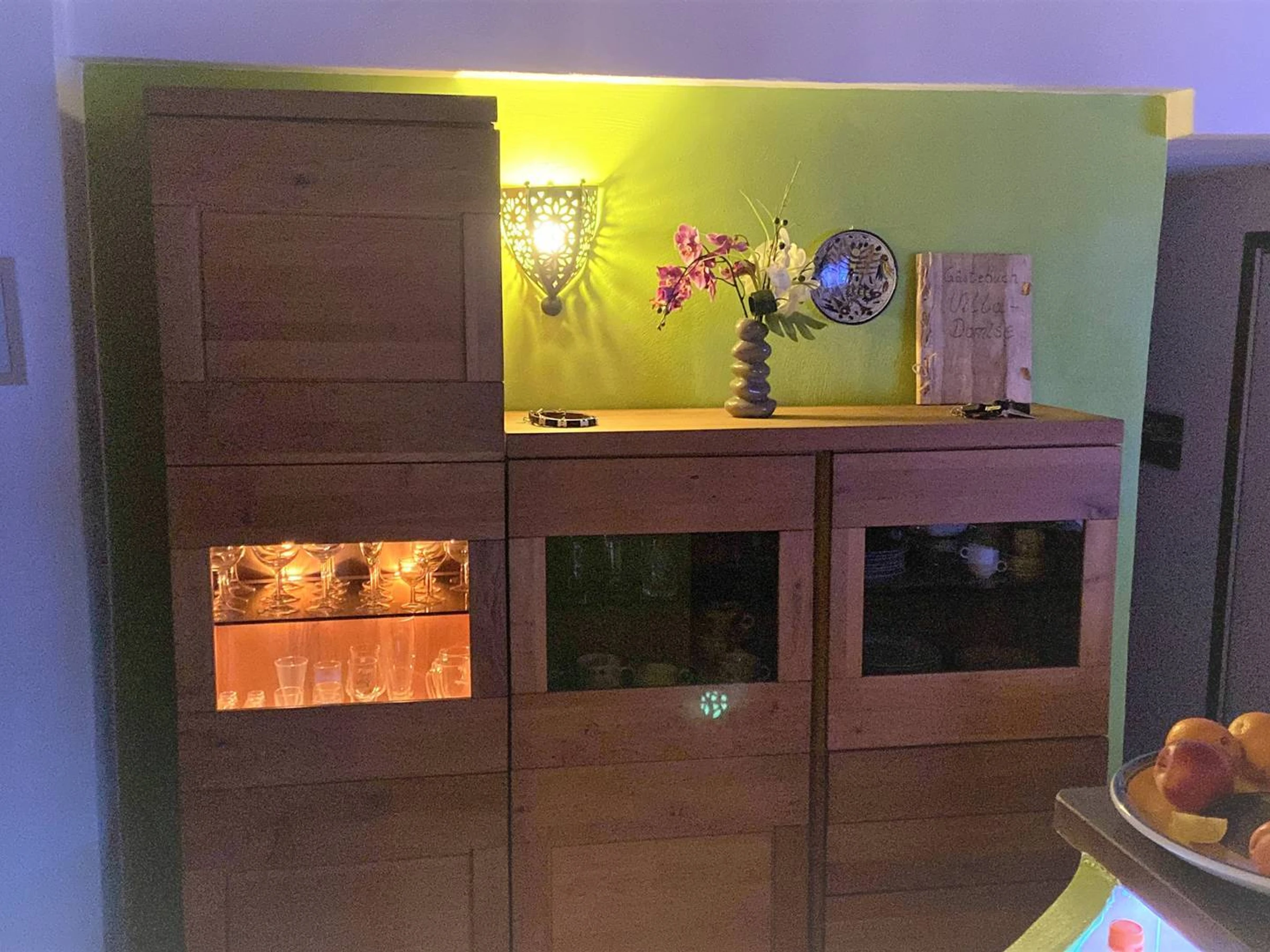 De estar / cocina (americana), lavavajillas, nevera-congelador, horno, cocina (4 gas), microondas, tostadora, cafetera, TV (Alemán + 5 canales franceses)