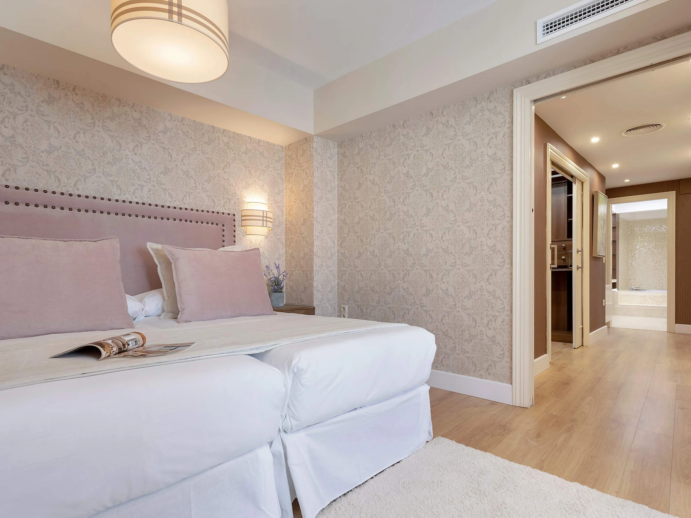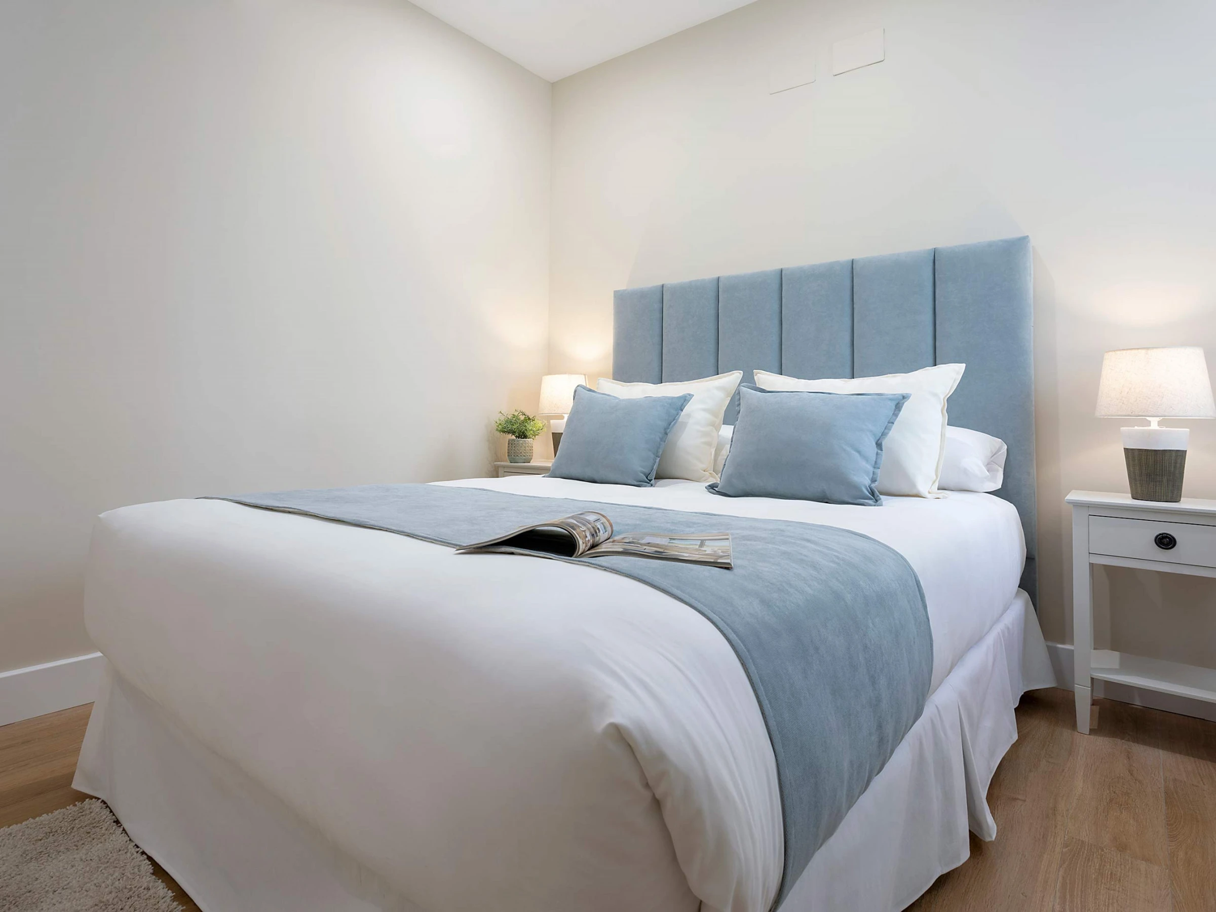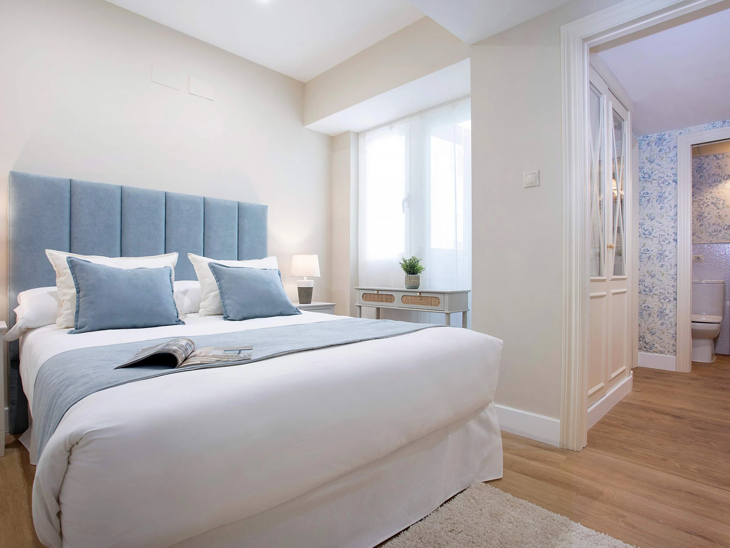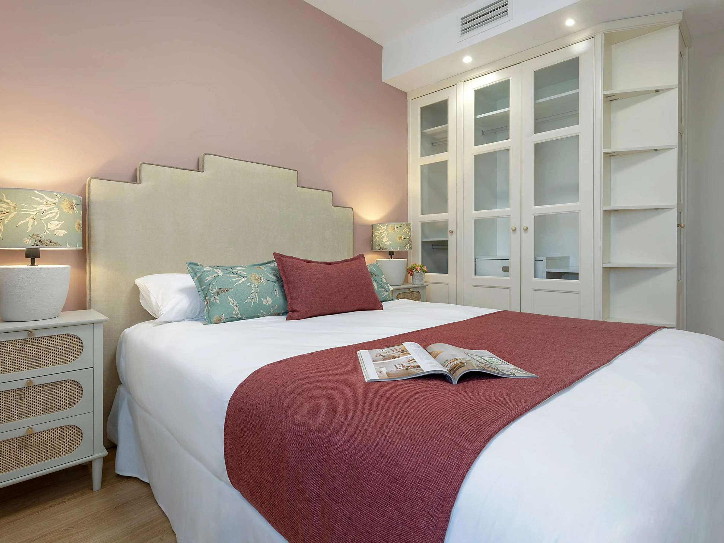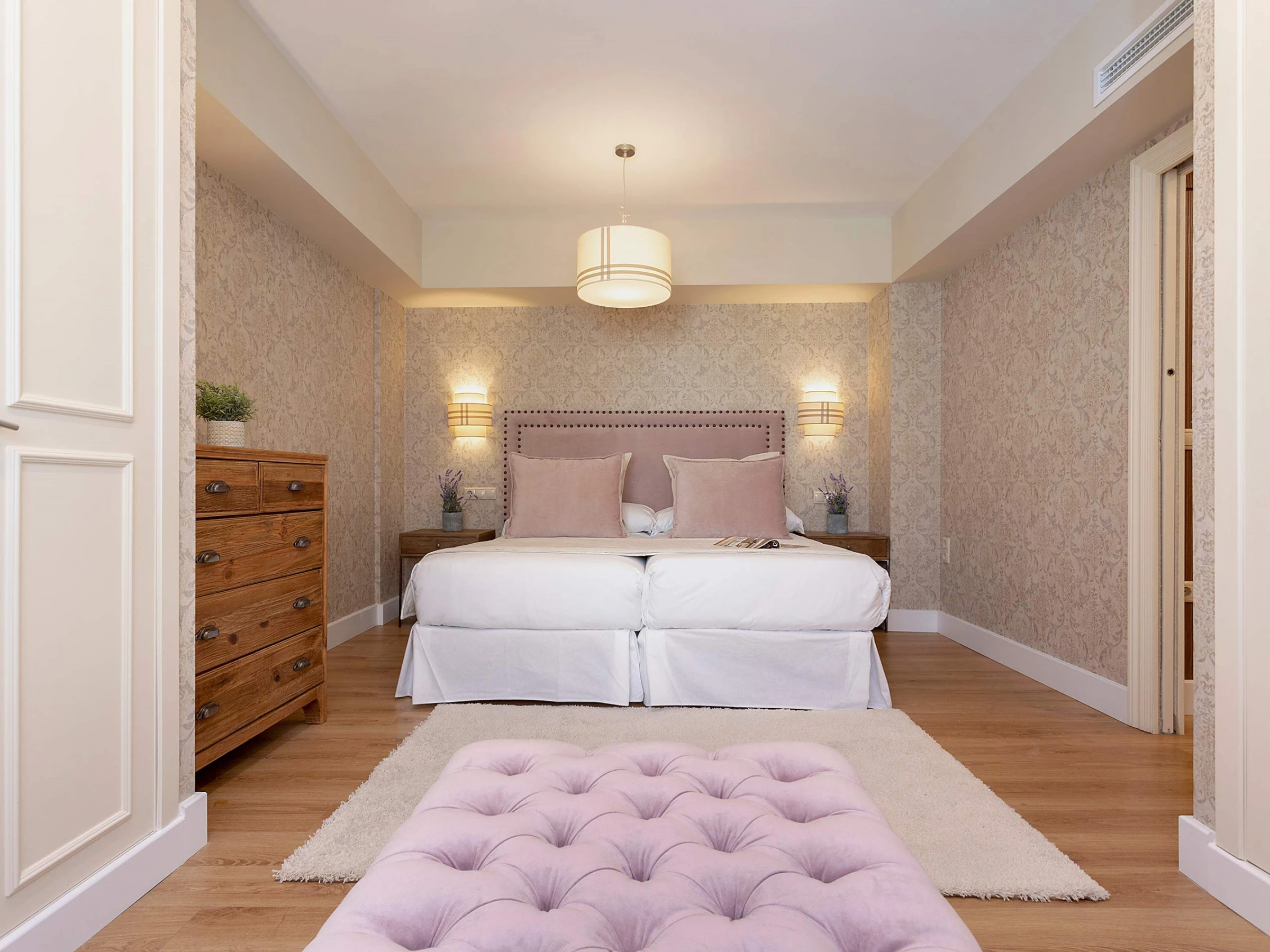 El apartamento dispone de cuatro dormitorios cuidadosamente distribuidos para ofrecer el máximo confort. Tres de ellos cuentan con cama de matrimonio, y el dormitorio principal dispone además de dos camas individuales, baño en suite con jacuzzi, plato de ducha, un gran vestidor y amplios ventanales que permiten disfrutar de luz natural y vistas al exterior.