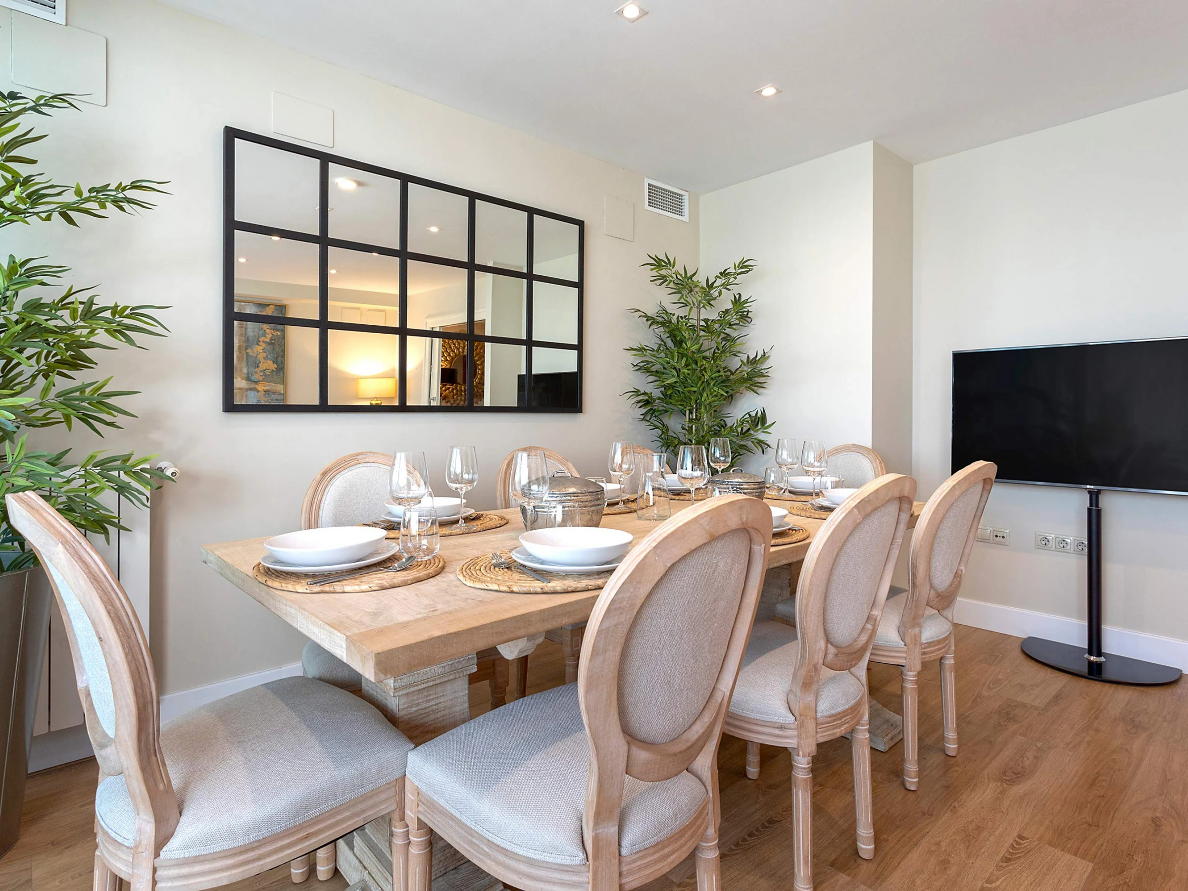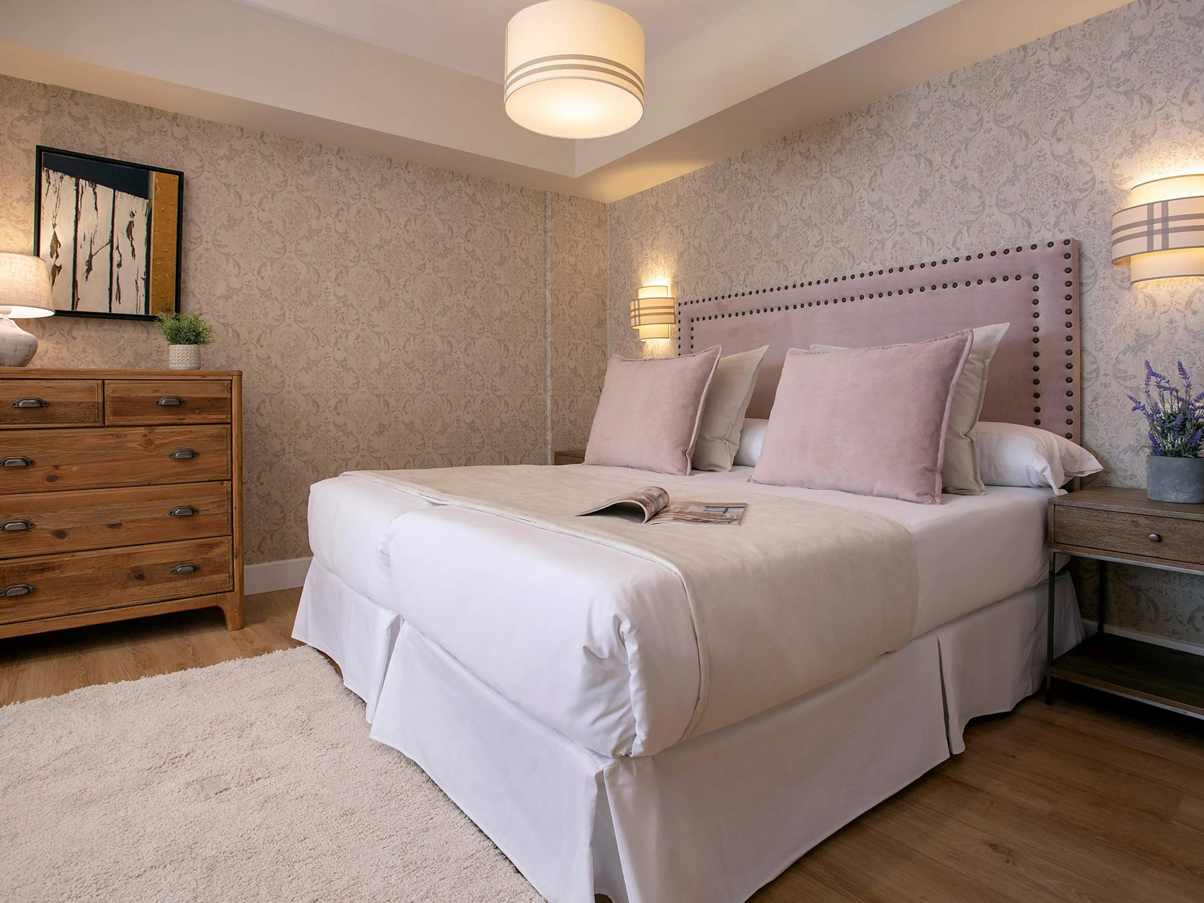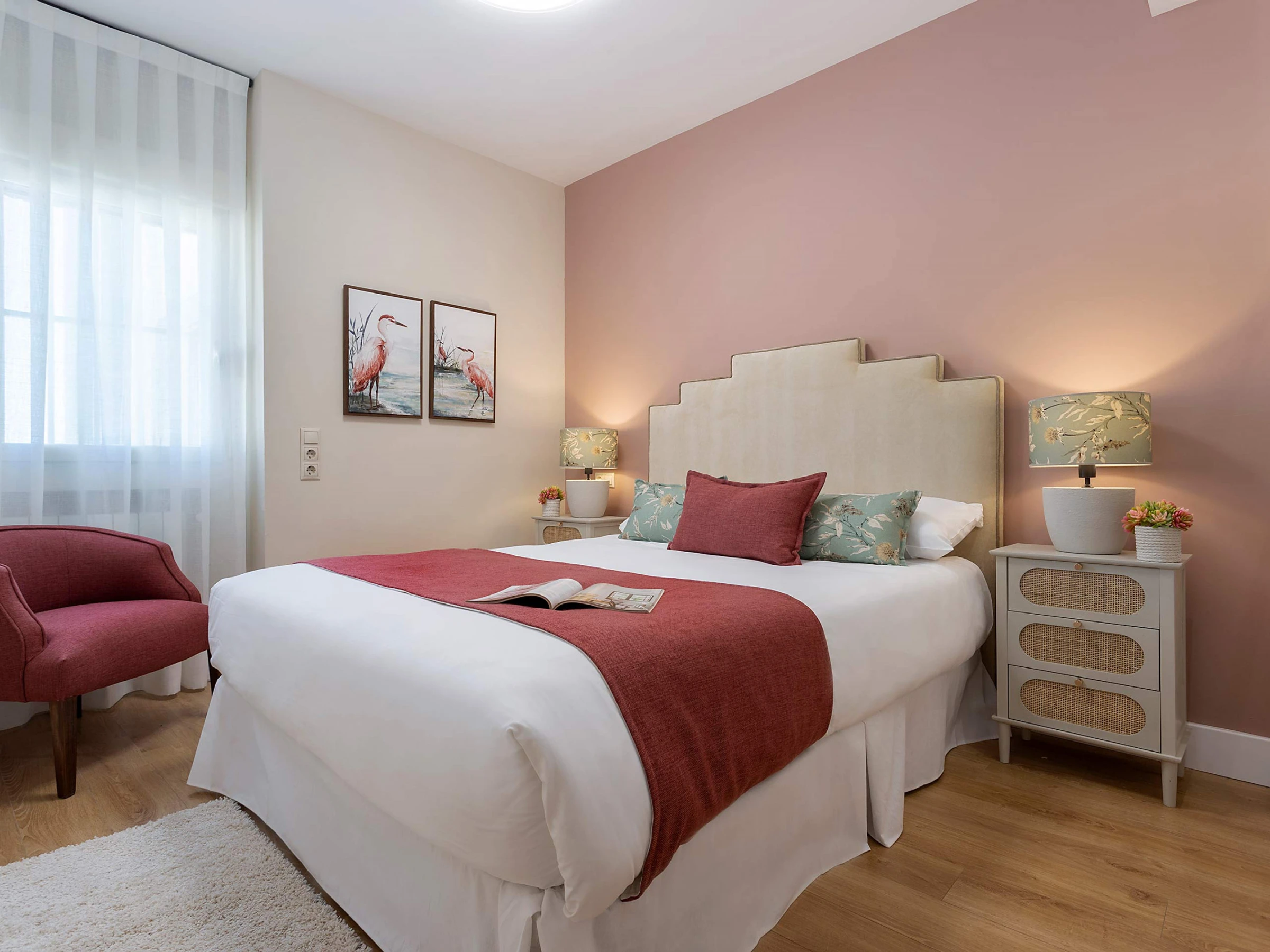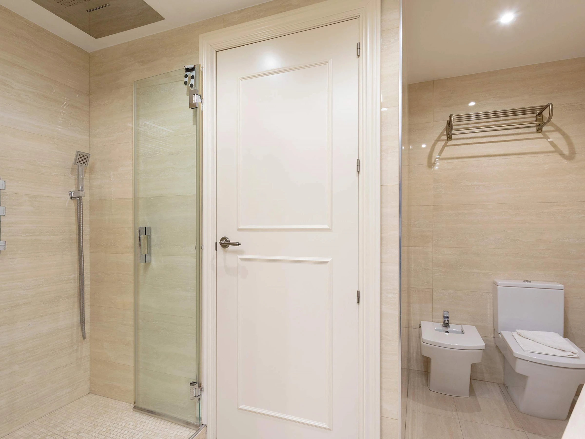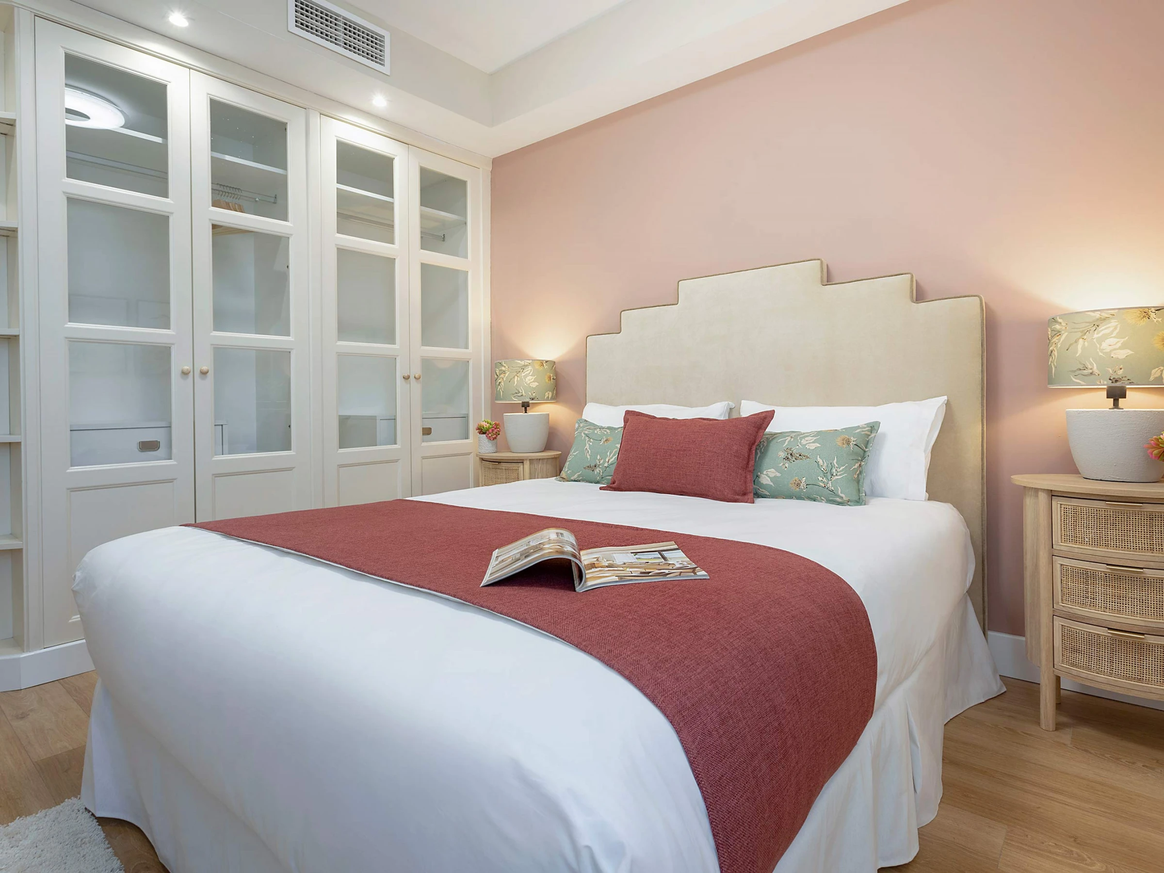 El apartamento dispone de cuatro dormitorios cuidadosamente distribuidos para ofrecer el máximo confort. Tres de ellos cuentan con cama de matrimonio, y el dormitorio principal dispone además de dos camas individuales, baño en suite con jacuzzi, plato de ducha, un gran vestidor y amplios ventanales que permiten disfrutar de luz natural y vistas al exterior.