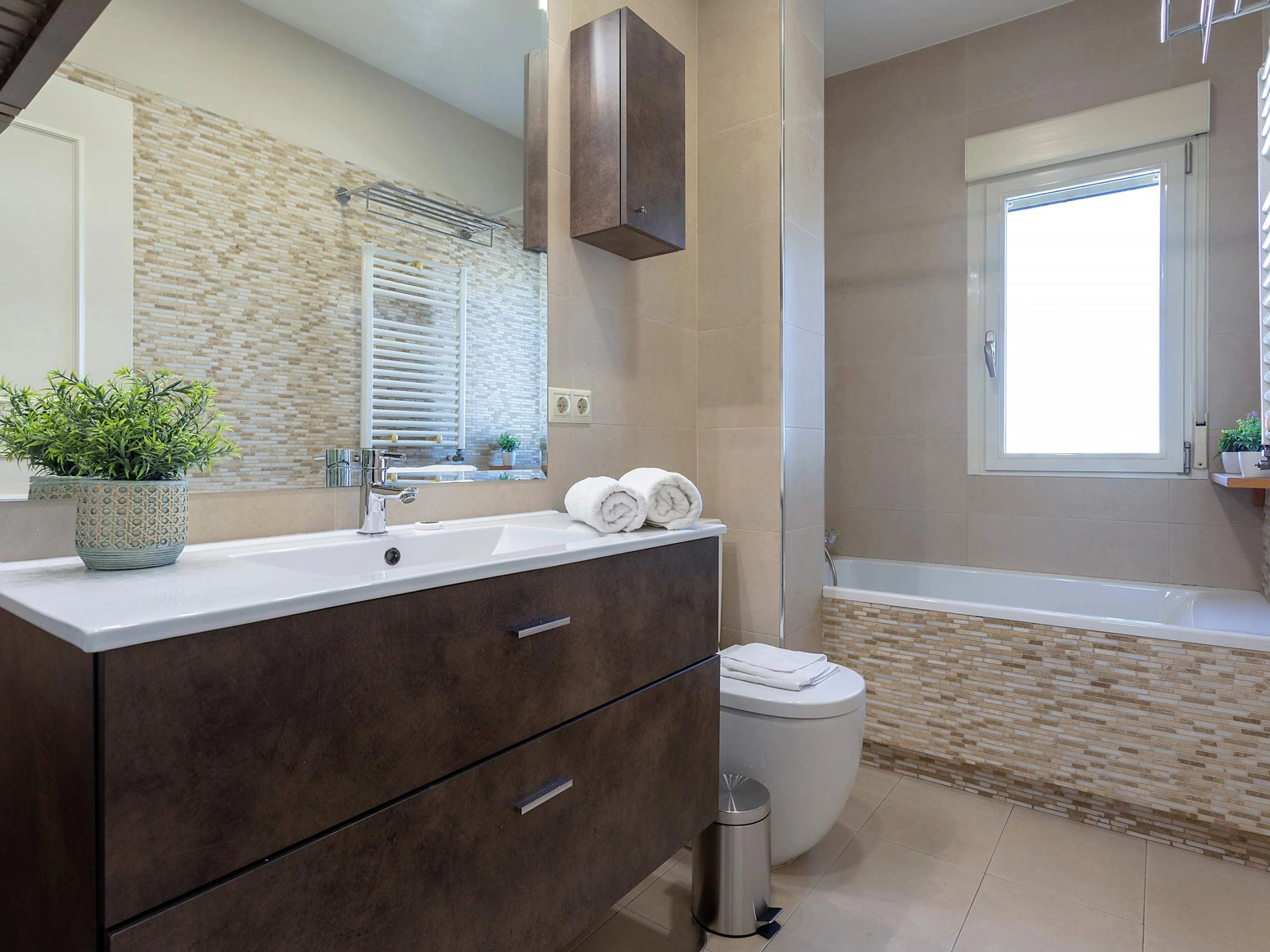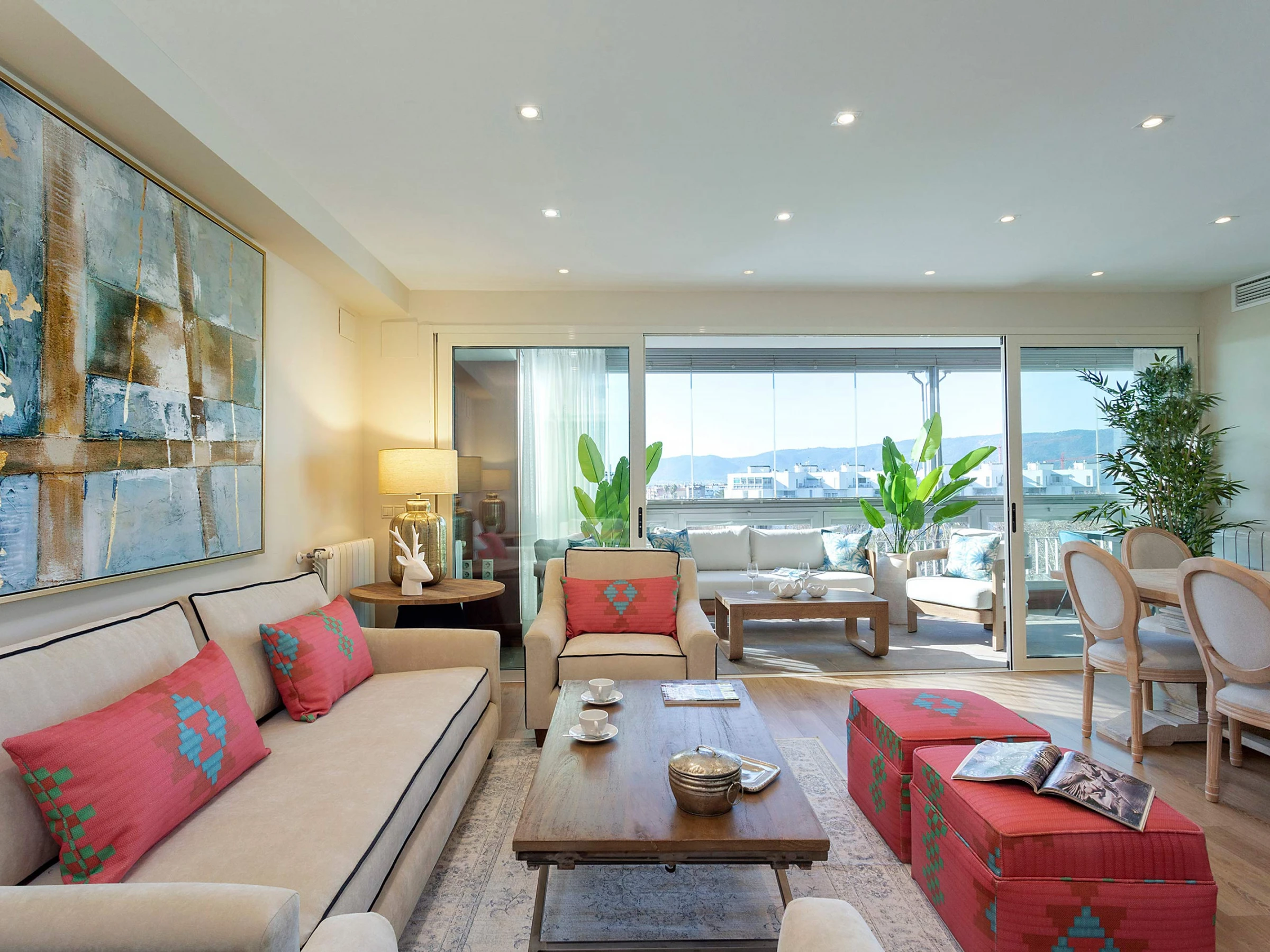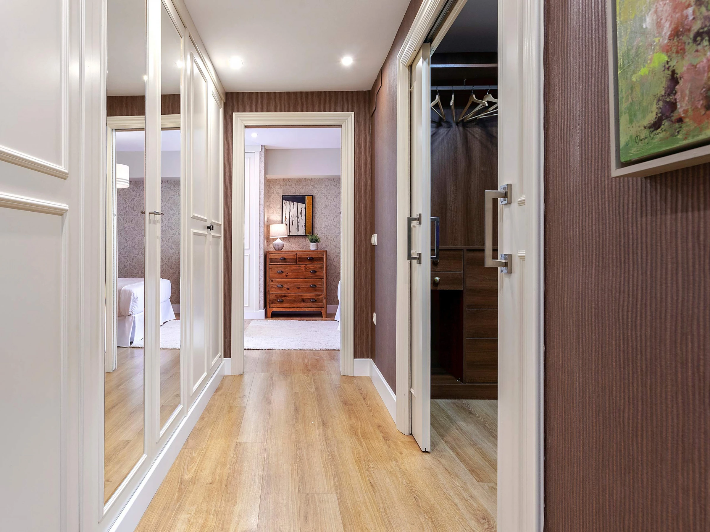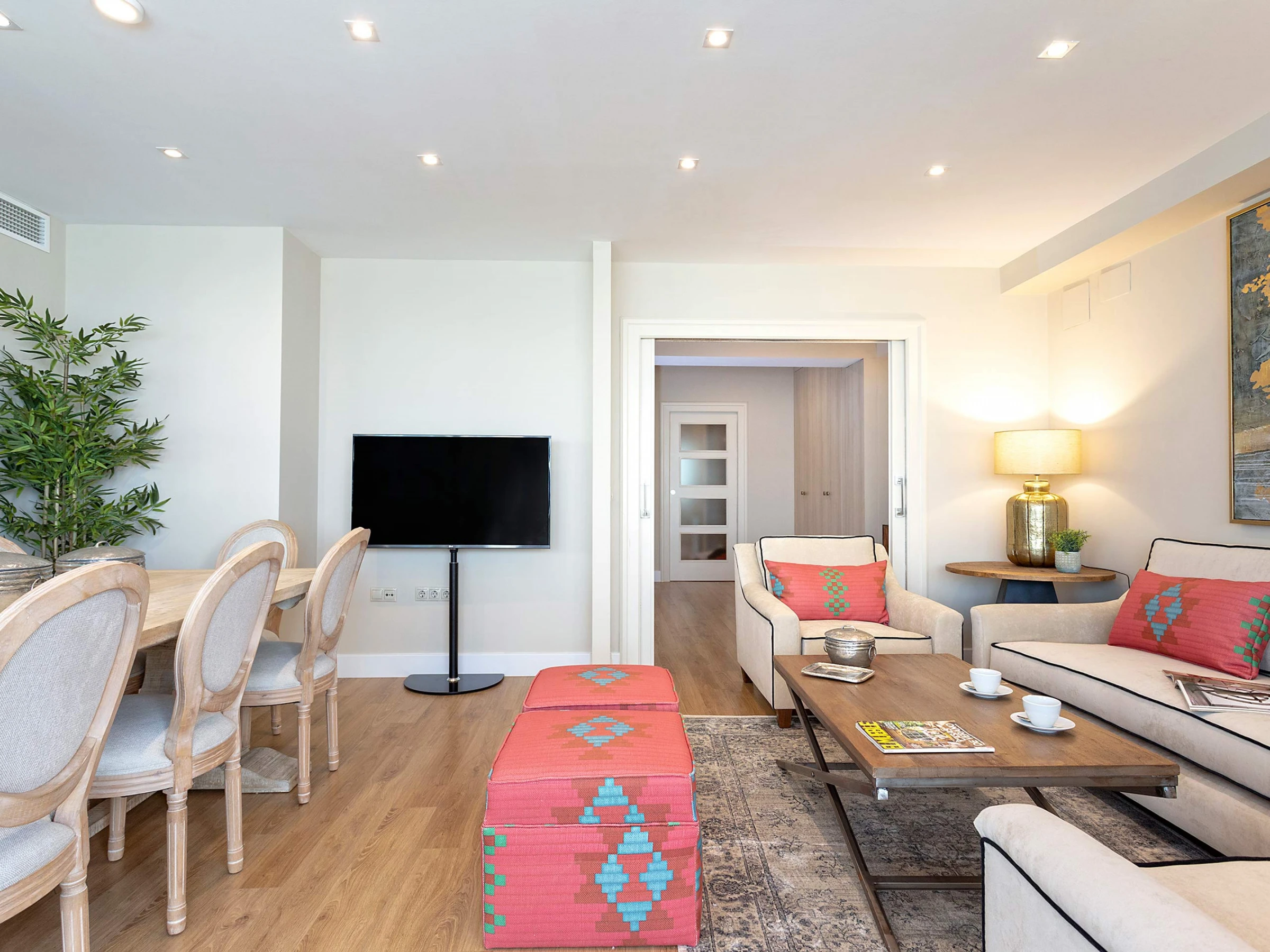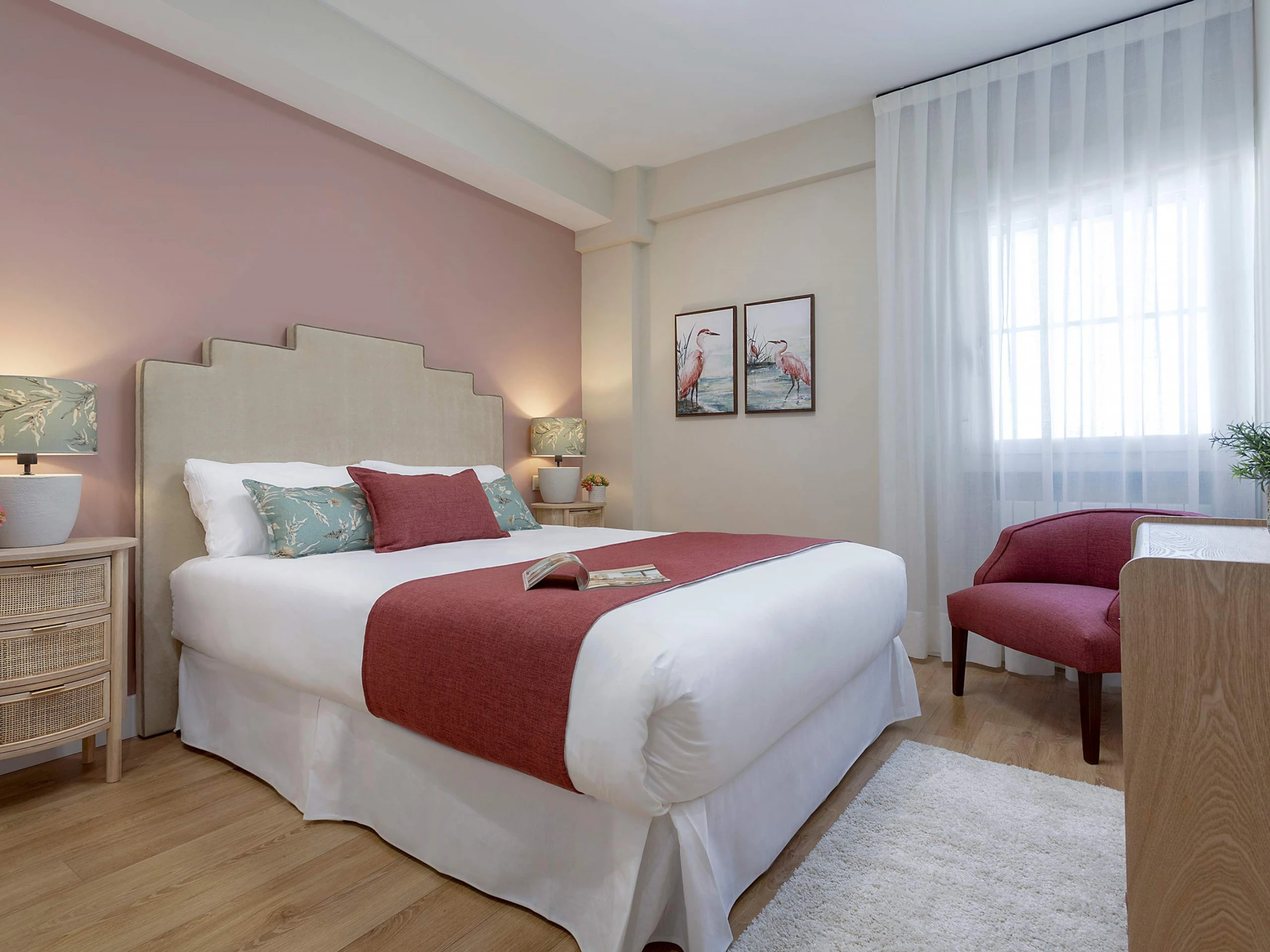 El apartamento dispone de cuatro dormitorios cuidadosamente distribuidos para ofrecer el máximo confort. Tres de ellos cuentan con cama de matrimonio, y el dormitorio principal dispone además de dos camas individuales, baño en suite con jacuzzi, plato de ducha, un gran vestidor y amplios ventanales que permiten disfrutar de luz natural y vistas al exterior.