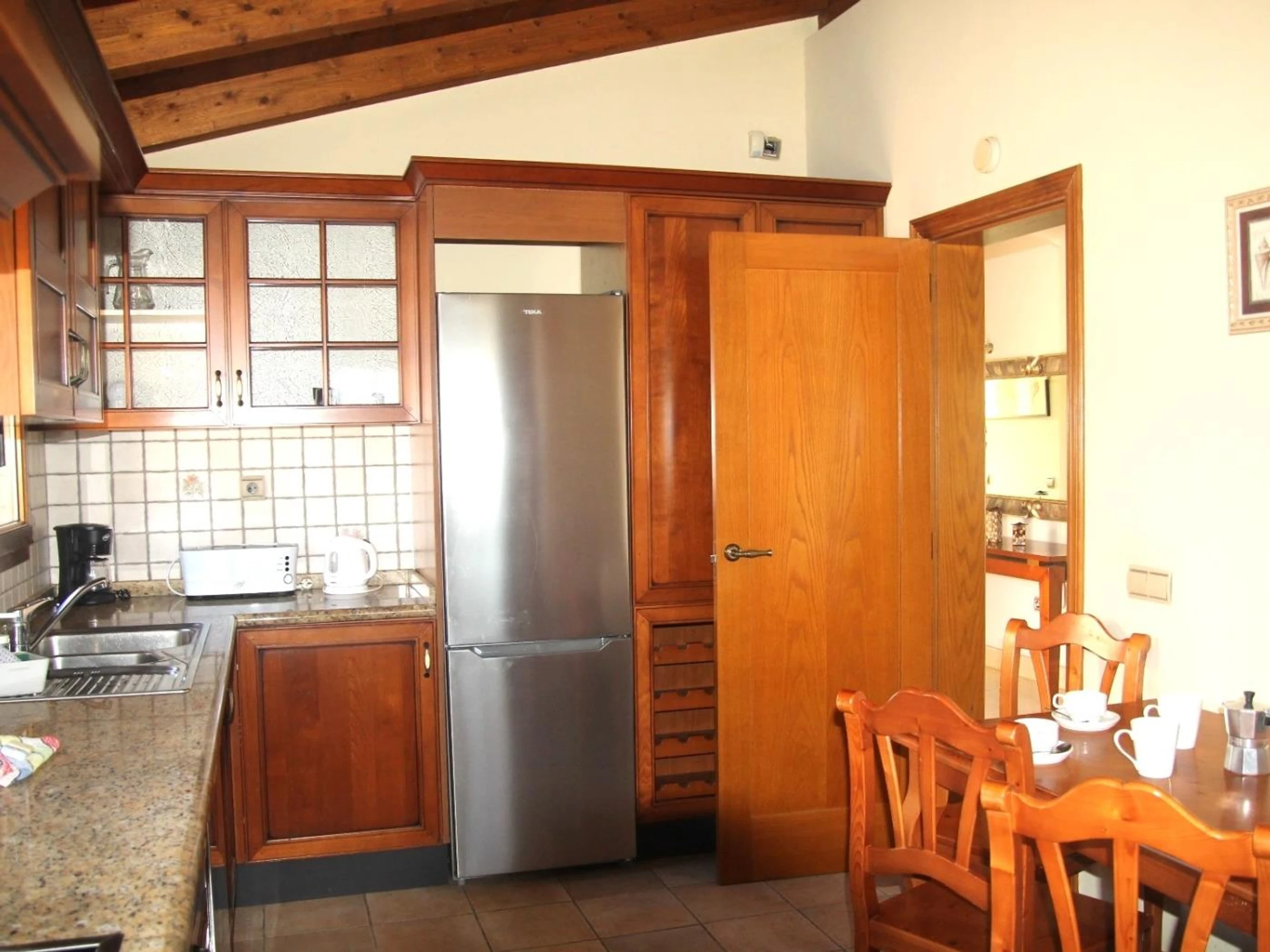 Casa Ducales es una elegante casa de estilo canario con un aire señorial que se refleja en su construcción y decoración. La terraza en la azotea ofrece vistas al mar, mientras que desde el salón se pueden disfrutar las vistas a la piscina. Los grandes espejos aportan un toque de distinción que realza el ambiente clásico de la casa. La cocina, rústica pero completamente equipada, y los dormitorios elegantes —uno de ellos con baño privado— completan esta acogedora vivienda. Disfruta de una barbacoa junto a la piscina y cenas al aire libre. A solo 20 minutos a pie de Corralejo y sus playas, tiendas y restaurantes, Casa Ducales es el lugar ideal para unas vacaciones inolvidables en Fuerteventura.
