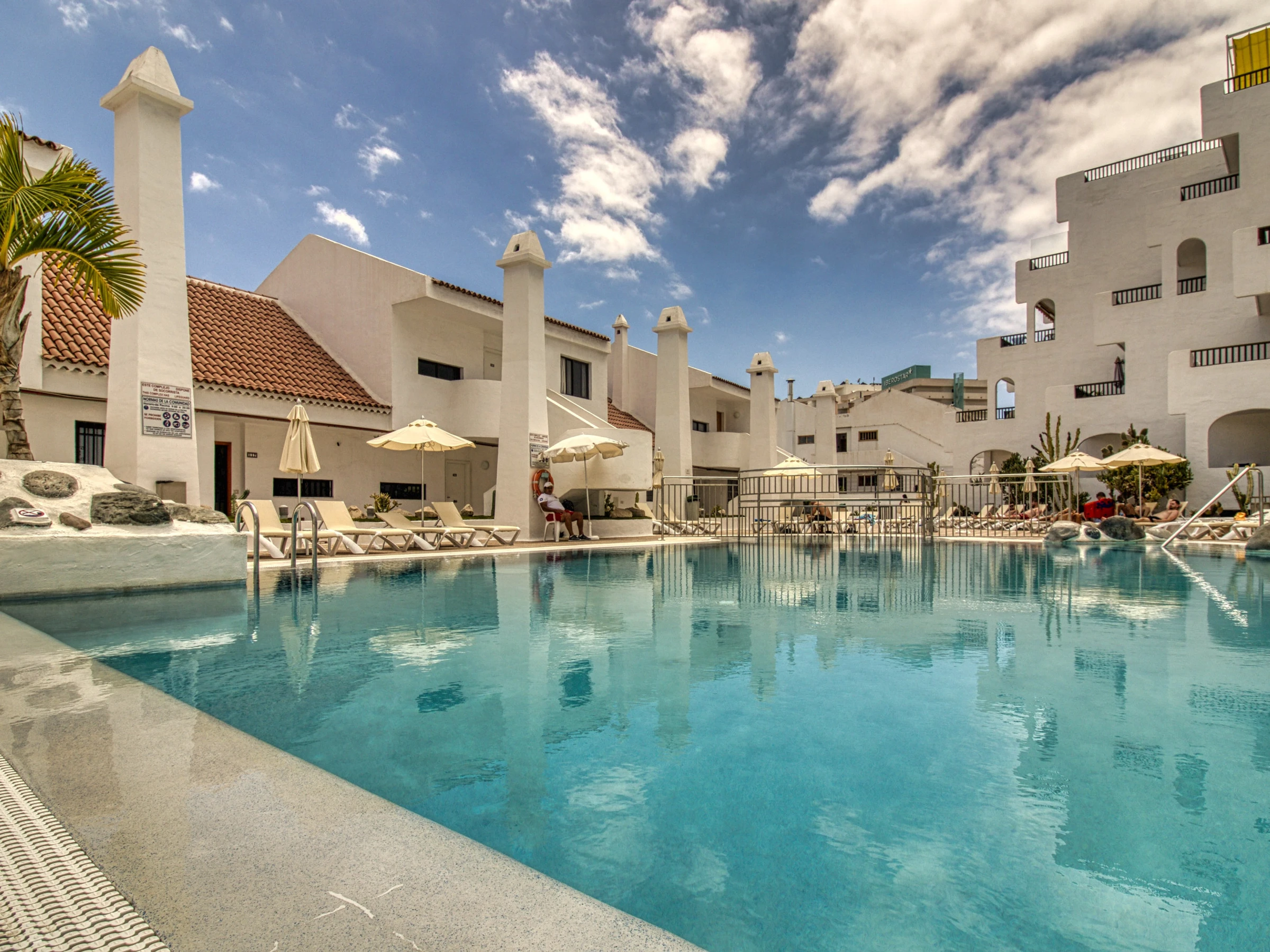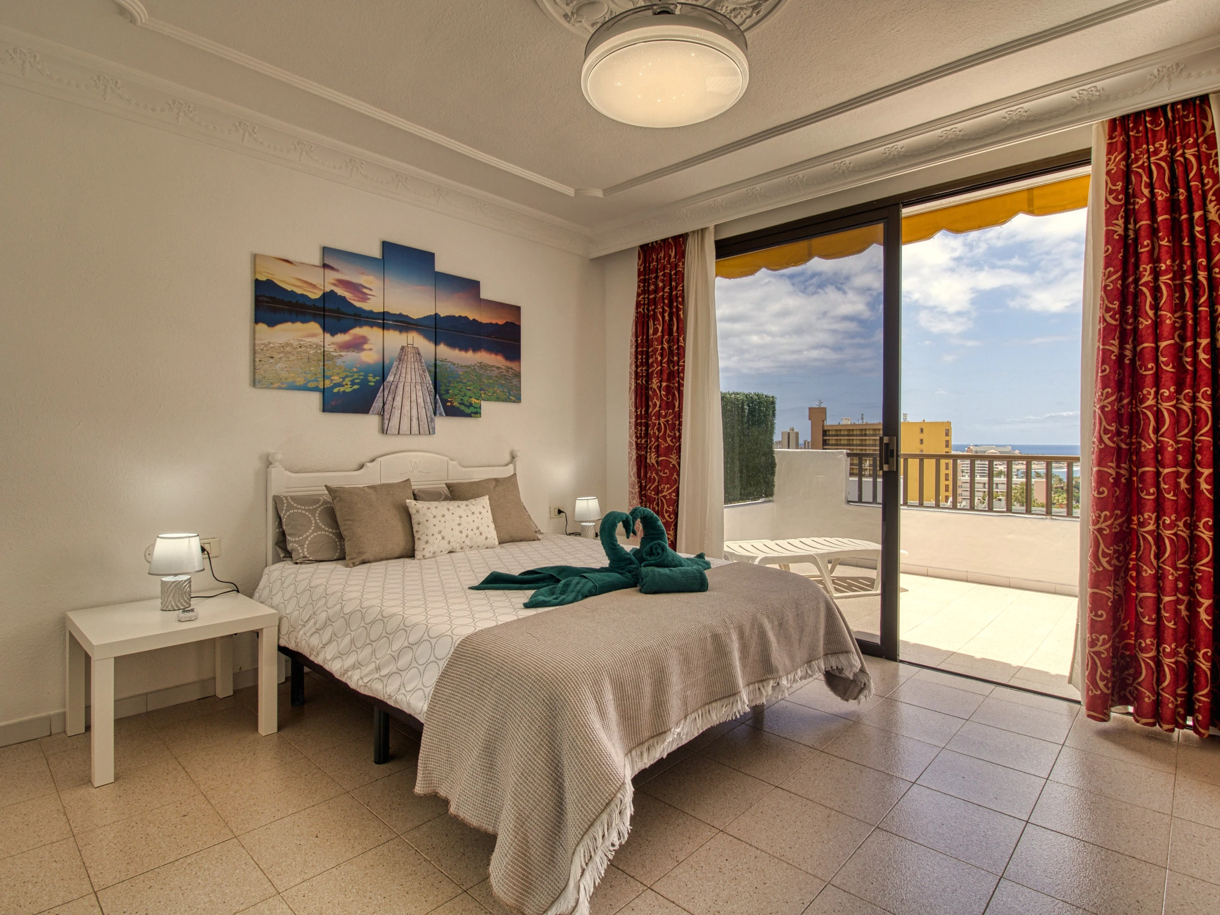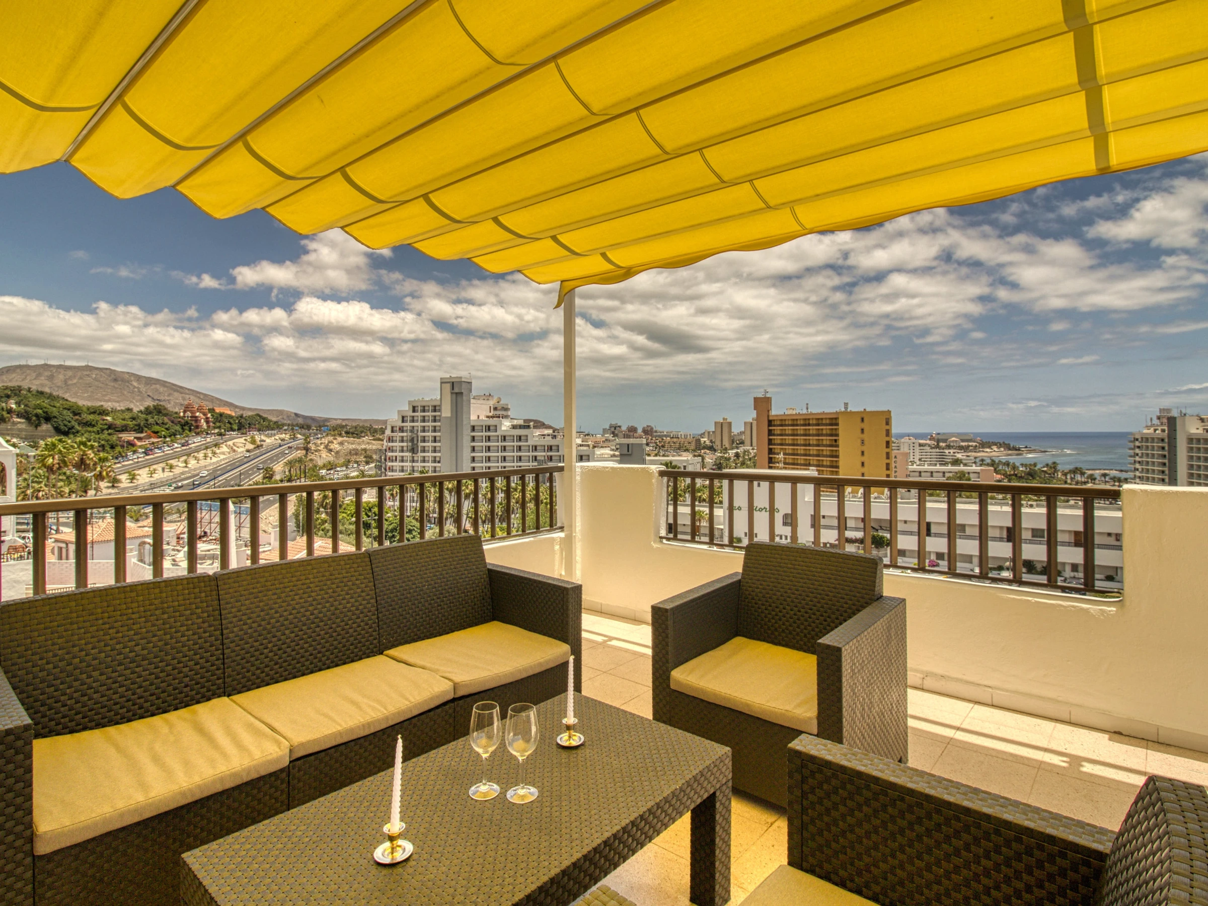 Tiene 2 dormitorios independientes, 1 baño en suite y un 2º baño con Jacuzzi, una cocina totalmente equipada y una hermosa terraza con las mejores vistas de Playas las Américas para disfrutar de tu estancia.