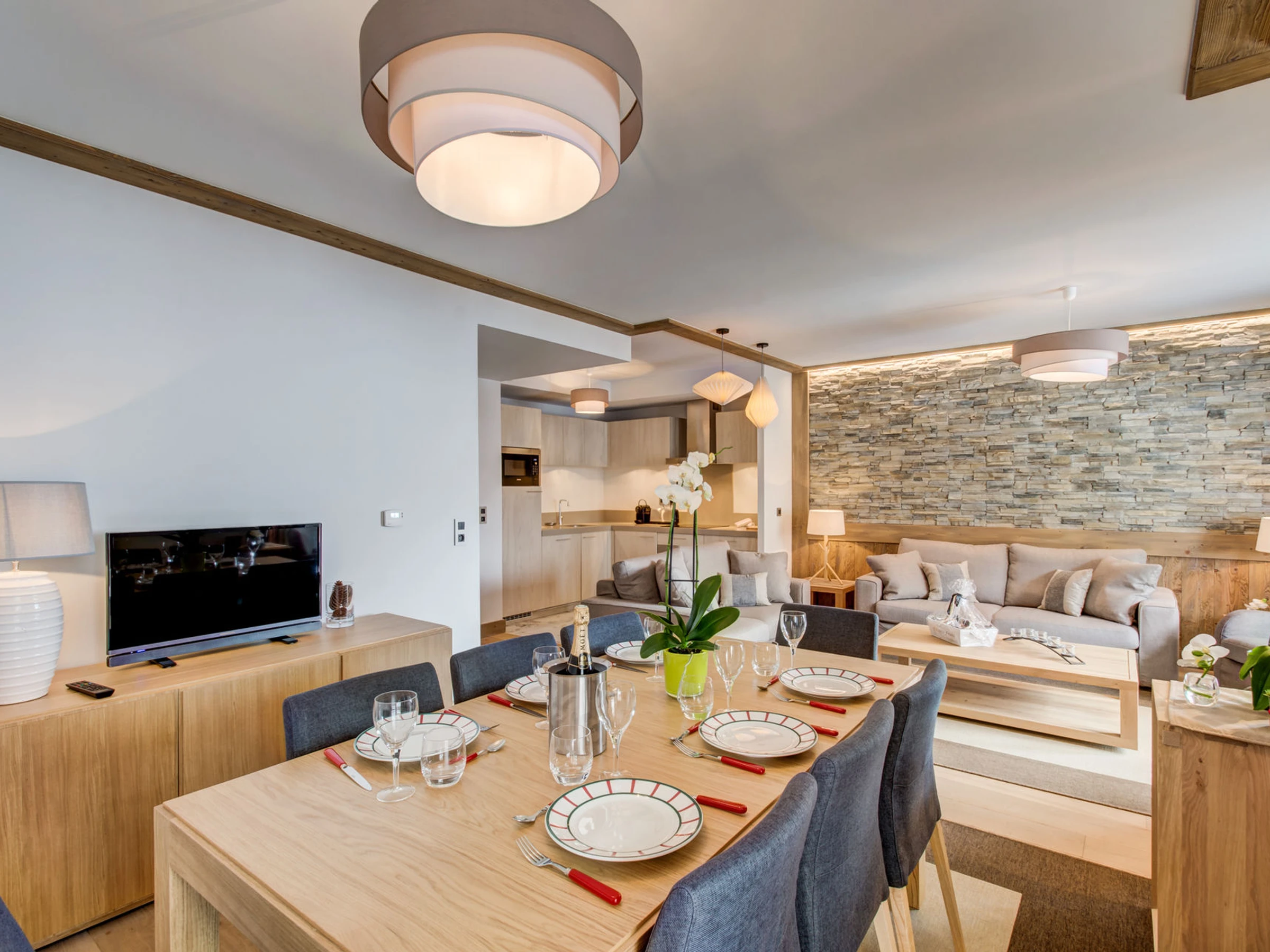 Precioso apartamento de 4 habitaciones y 110 m² con capacidad para 6 personas. Se encuentra en la nueva Residencia CARRE BLANC, en pleno centro de la estación, a poca distancia de las pistas y las tiendas.