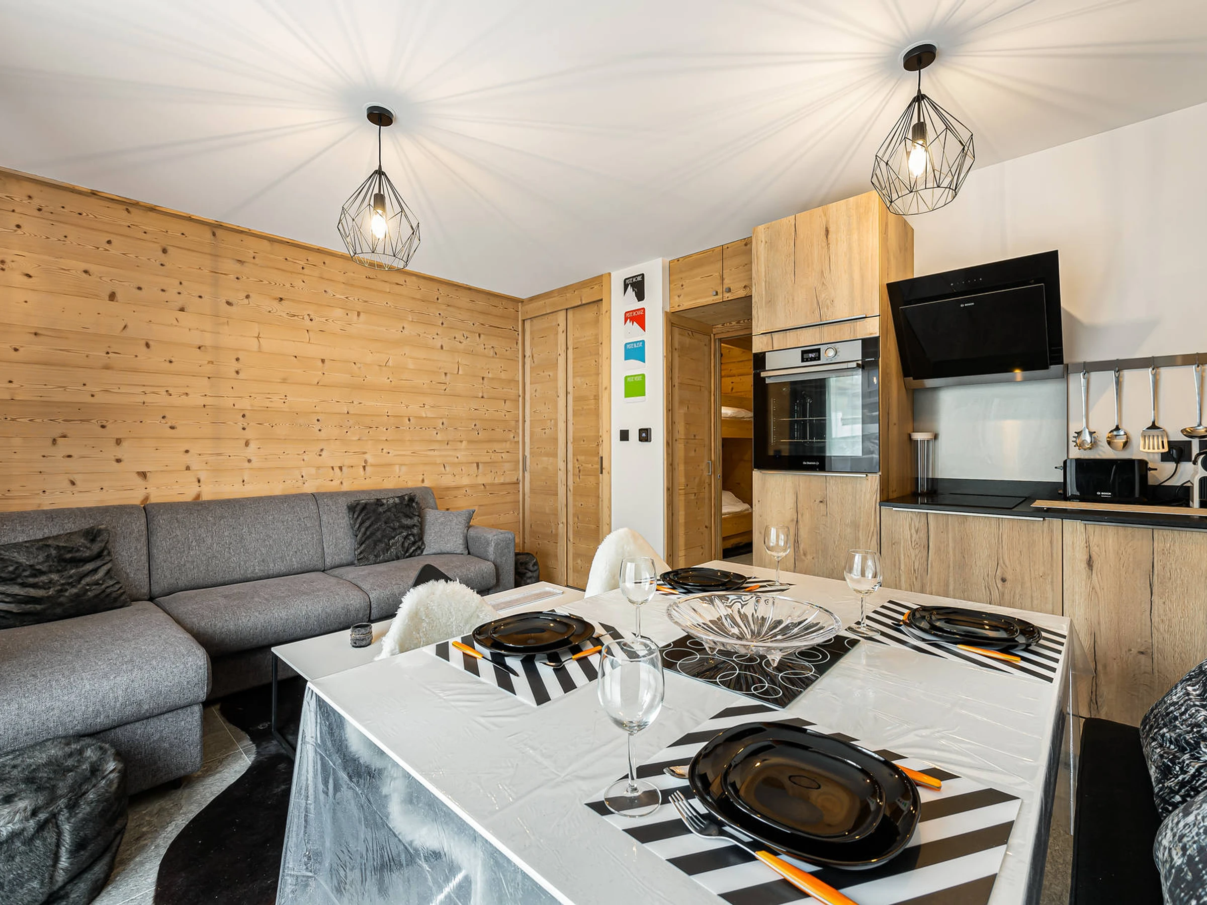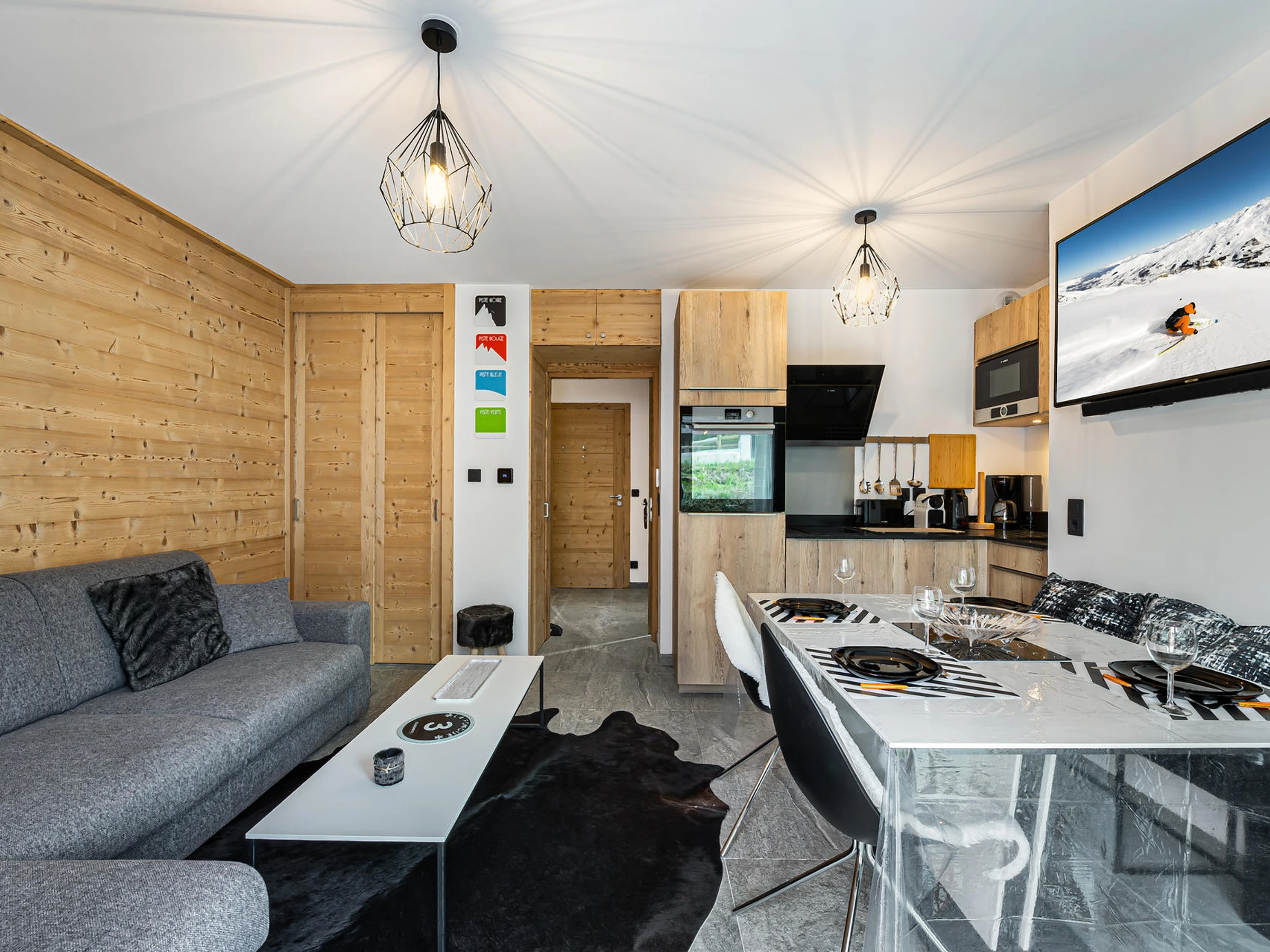 Apartamento de dos dormitorios ubicado en la planta baja de la Residencia CHANTEMERLE, a 100 m del frente de esquí. Con una superficie de 37 m², puede alojar hasta 4 personas. DISTRIBUCIÓN