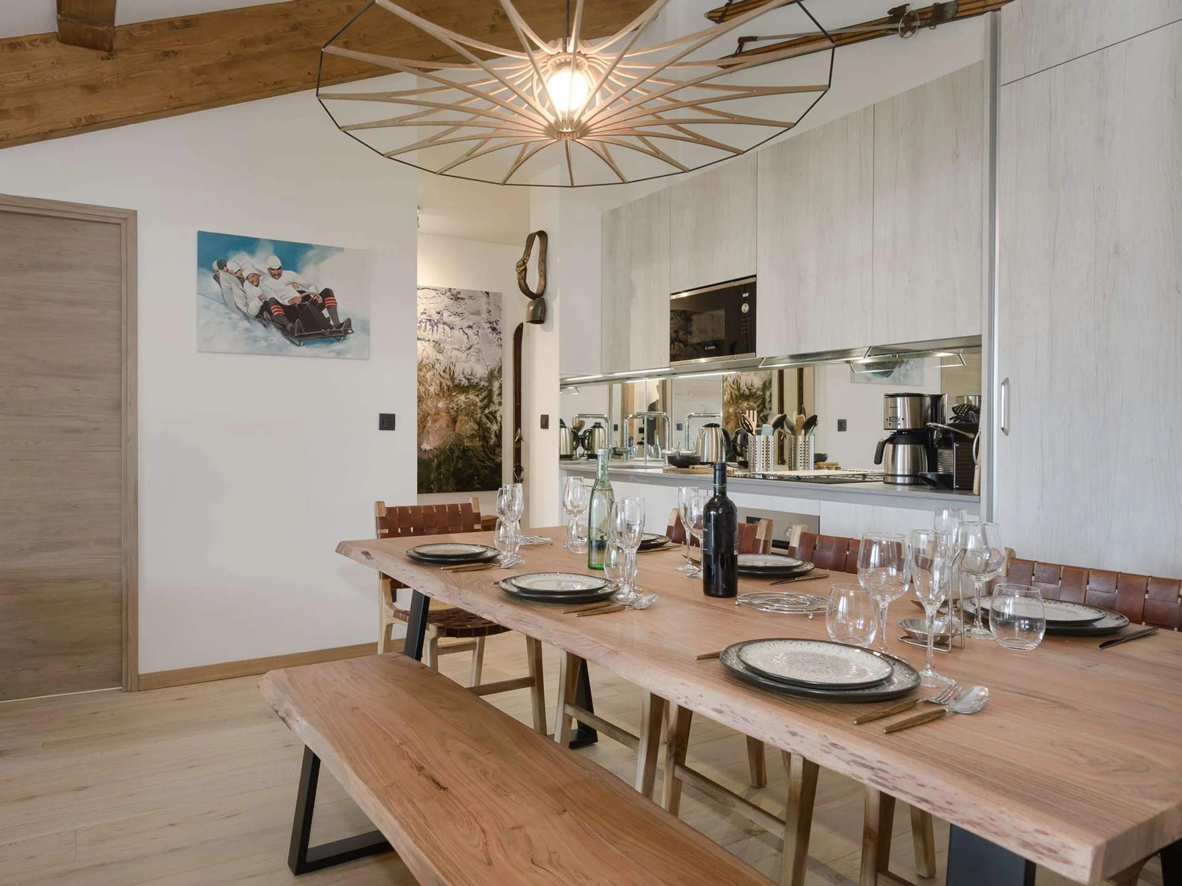 Este magnífico apartamento a estrenar, cuidadosamente decorado, se encuentra en la última planta de una residencia con acceso directo a las pistas de esquí. Ofrece magníficas vistas al valle y a las montañas circundantes.