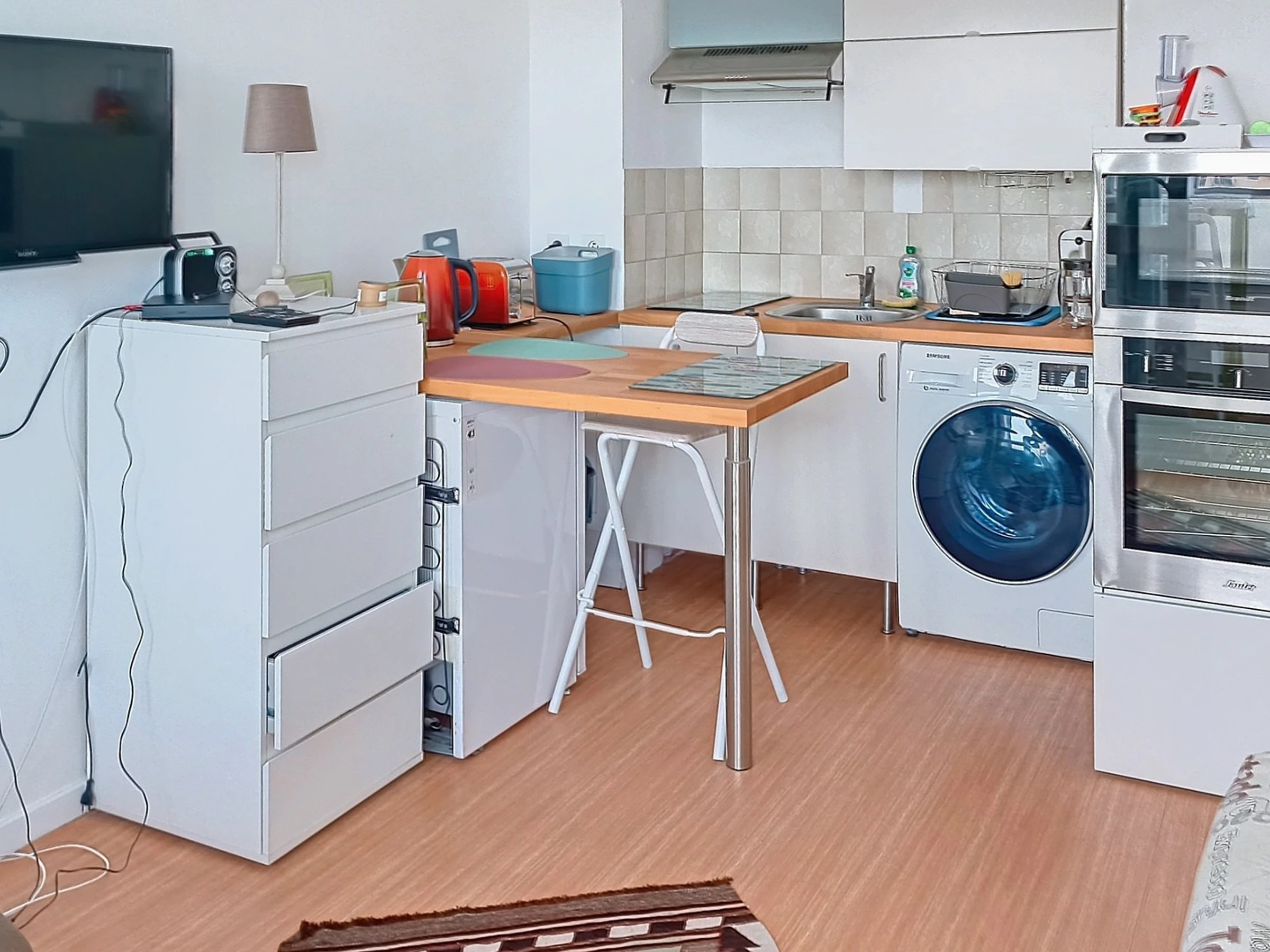 Au troisième étage avec ascenseur comprenant une entrée avec placard, un séjour avec canapée convertible 140X190, une televisión, coin cooking équipée avec plaque de cuisson vitro, un four, un four micro onde, un grille Pain, une cafetière italienne,une bouilloire,une máquina de lavado secante donnant sur une Belle Loggia, una sala de baños con WC.