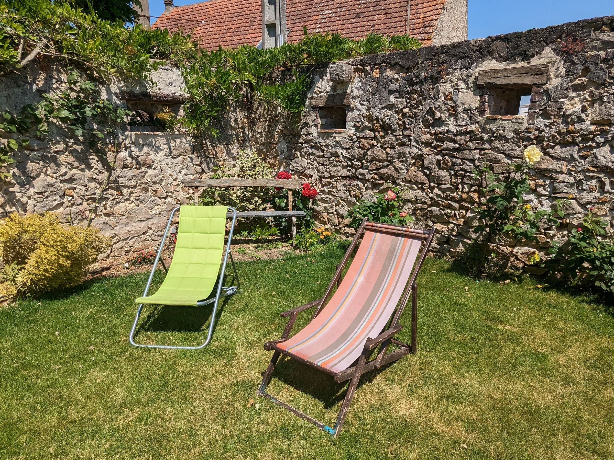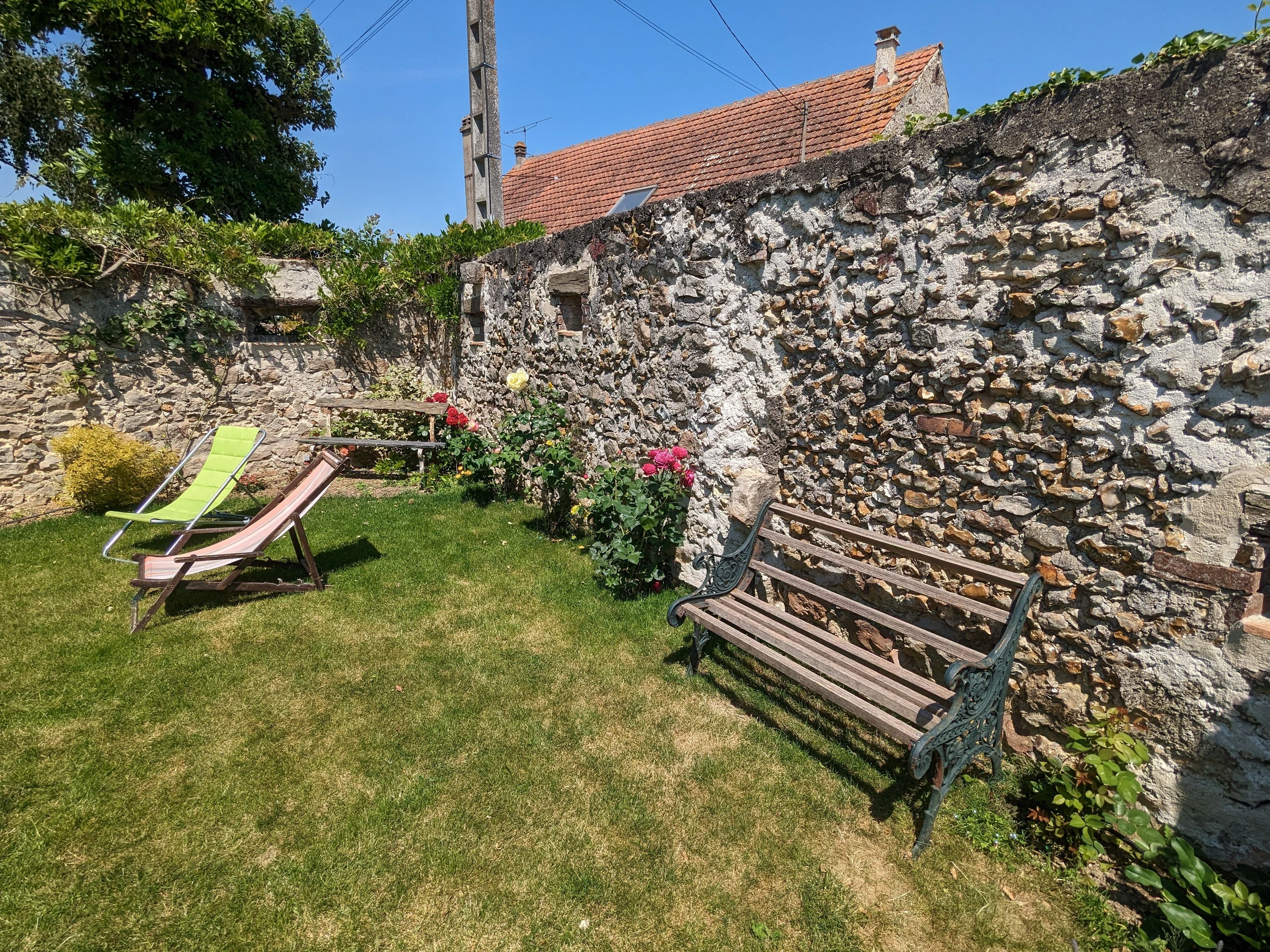 Alain, paisajista, le da la bienvenida con placer en este lugar tranquilo y le hará descubrir su pasión, los jardines de flores con sus rosas y otras variedades de flores y plantas. Te alojarás en una casa de campo espaciosa, luminosa y con carácter donde podrás admirar los restos del antiguo horno de pan o las grandes puertas antiguas de madera... Un jardín privado y cerrado de 50 m² está a tu disposición donde podrás relajarte en la terraza. sillas o compartir momentos de convivencia alrededor de la barbacoa.