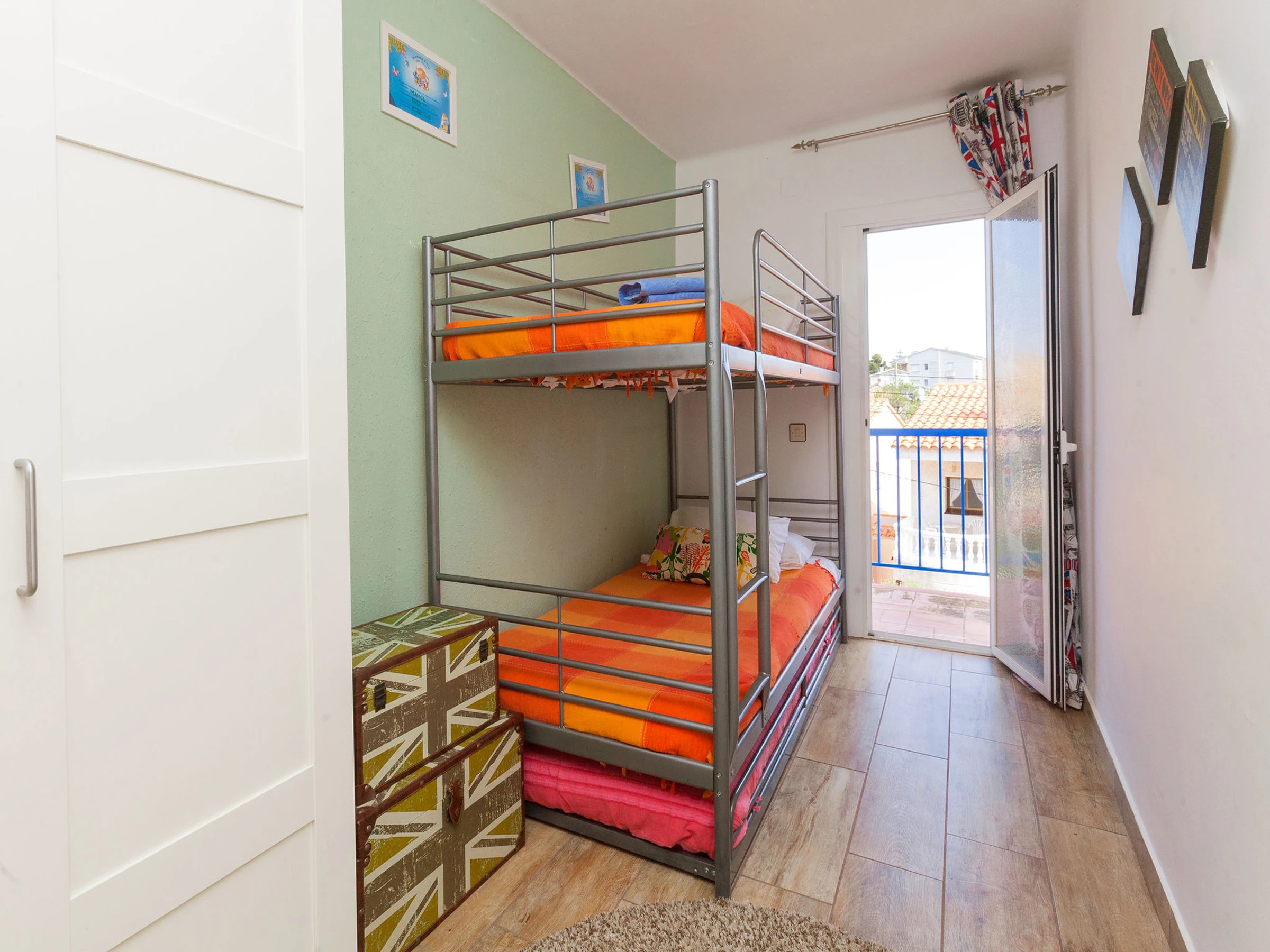 "La Gavina", apartamento de 4 habitaciones 65 m2 en el 2° piso. Con mobiliario sencillo y funcional: salón-comedor con mesa de comedor, rincón cocina, TV digital, pantalla plana, aire acondicionado y bomba de calor, caliente. Salida al balcón con 1 cama de matrimonio, aire acondicionado y bomba de calor, caliente con 1 x 2 literas (90 cm), 1 cama-nido (1 pers. 80 cm de longitud). Cocina abierta (4 fogones, horno, microondas). Baño/ducha/WC. Planta superior: 1 dorm. con 1 sofá-cama. Salida a la terraza. Muebles de terraza, barbacoa. Vista panorámica al mar. El alojamiento dispone de: lavadora. Internet (Wifi, extra). Adecuado para familias. [hidden]
