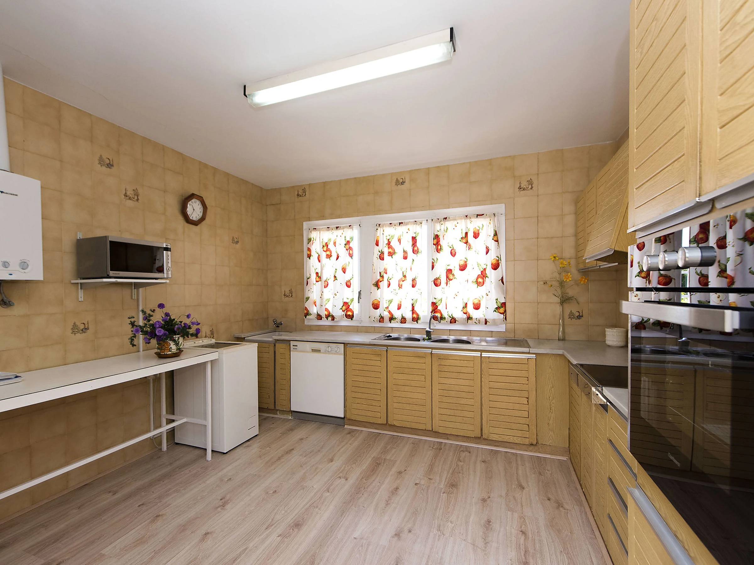 Casa 4 estancias 90 m2. Espacioso y luminoso, con mobiliario funcional: salón-comedor abierto con chimenea y TV digital. Salida a la terraza. 2 dorm., cada habitación con 2 camas y ventilador. 1 dorm. con 1 cama doble, baño/WC y ventilador. Cocina (horno, 3 placas de vitrocerámica, microondas, congelador). Ducha/WC. Calefacción. Terraza grande. Muebles de terraza, barbacoa, tumbonas (2). Vista al paisaje y a la localidad. El alojamiento dispone de: lavadora, plancha. Adecuado para familias. [hidden]