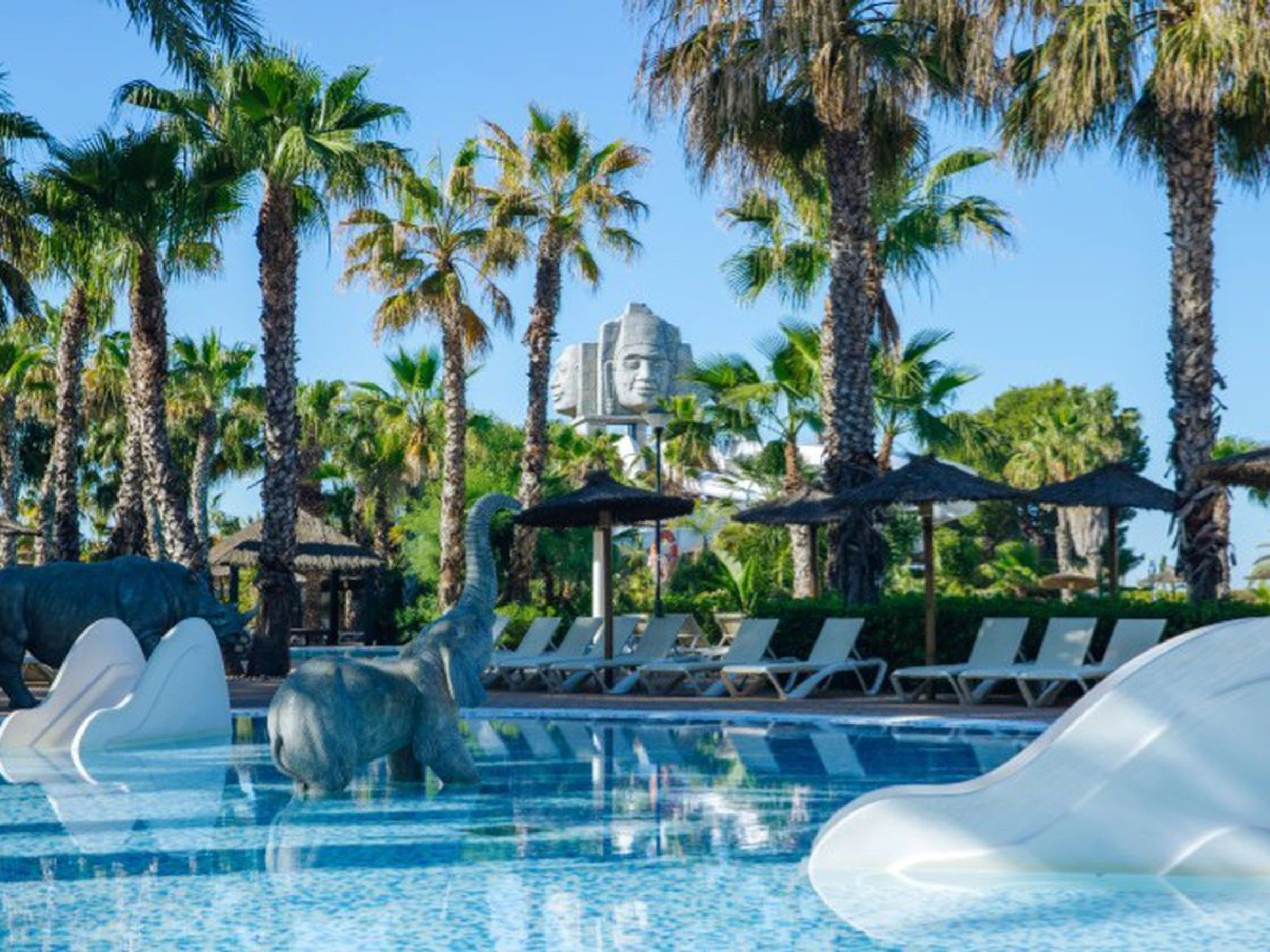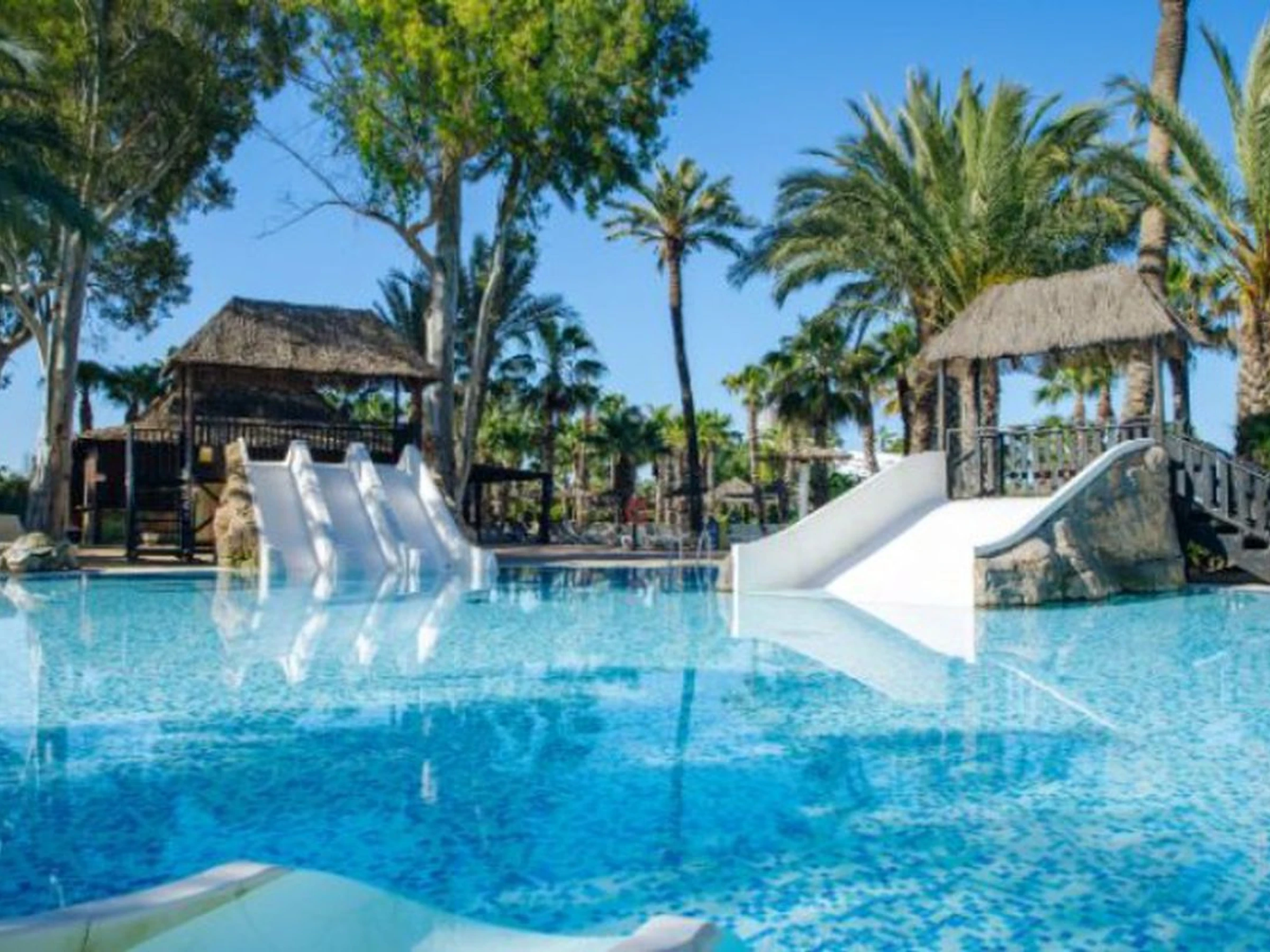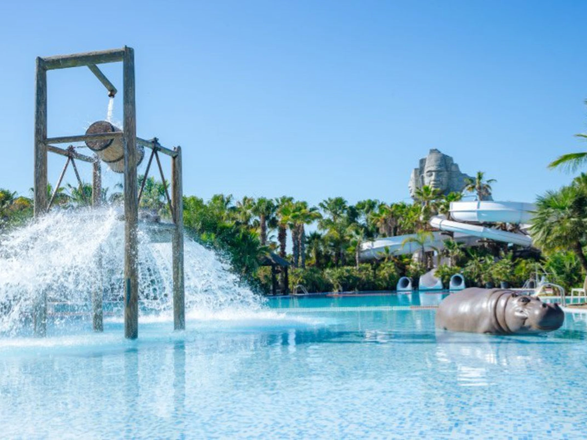 - Parque acuático con piscinas tropicales (una piscina lago y dos piscinas infantiles de 5000 m² con cascadas, toboganes y juegos de agua) y la piscina Tahití (zona de relax con camas balinesas). Piscinas tropicales abiertas del 4 de abril al 12 de octubre; piscina Tahití abierta todos los días, sujeta a las condiciones meteorológicas.