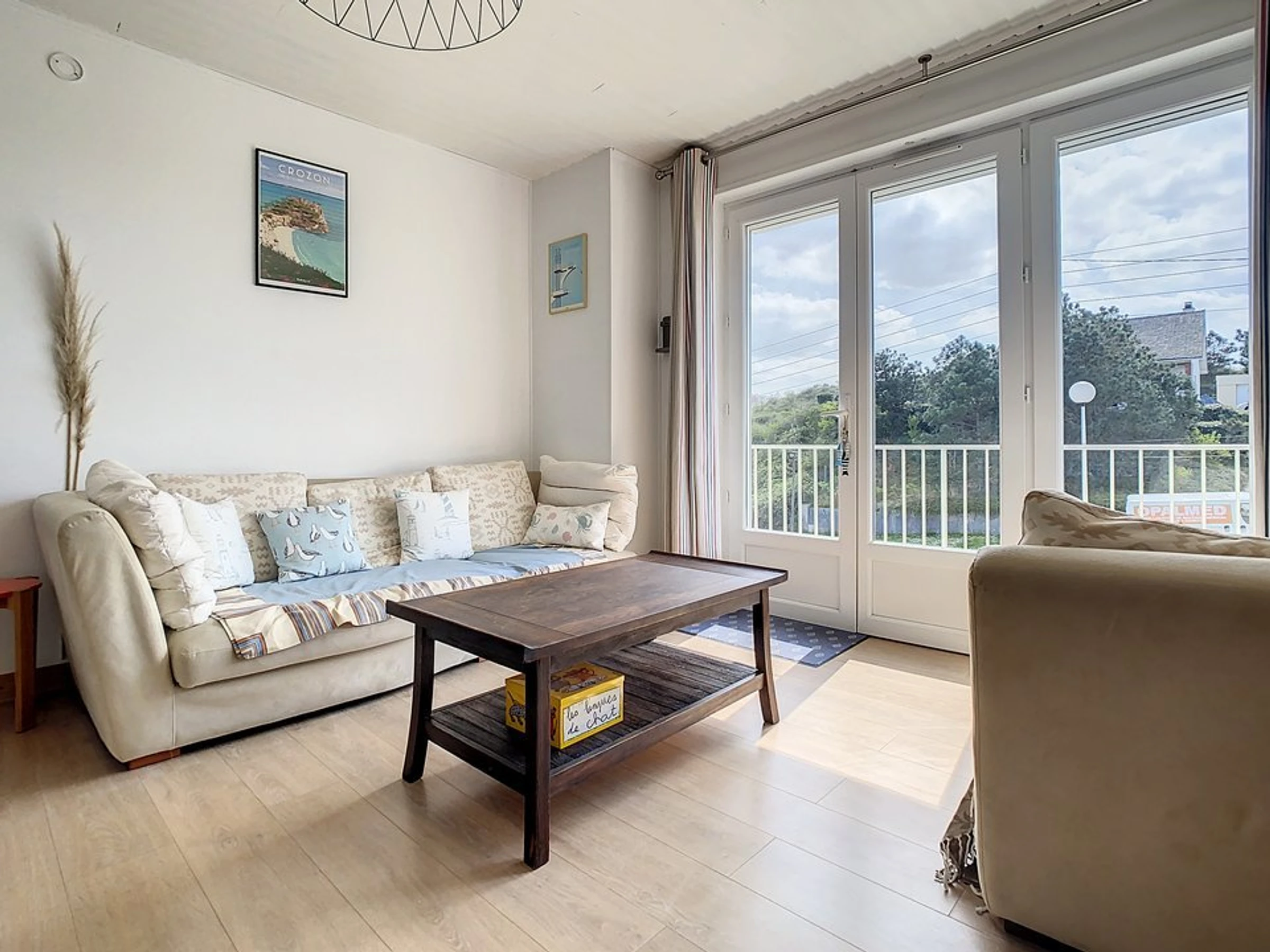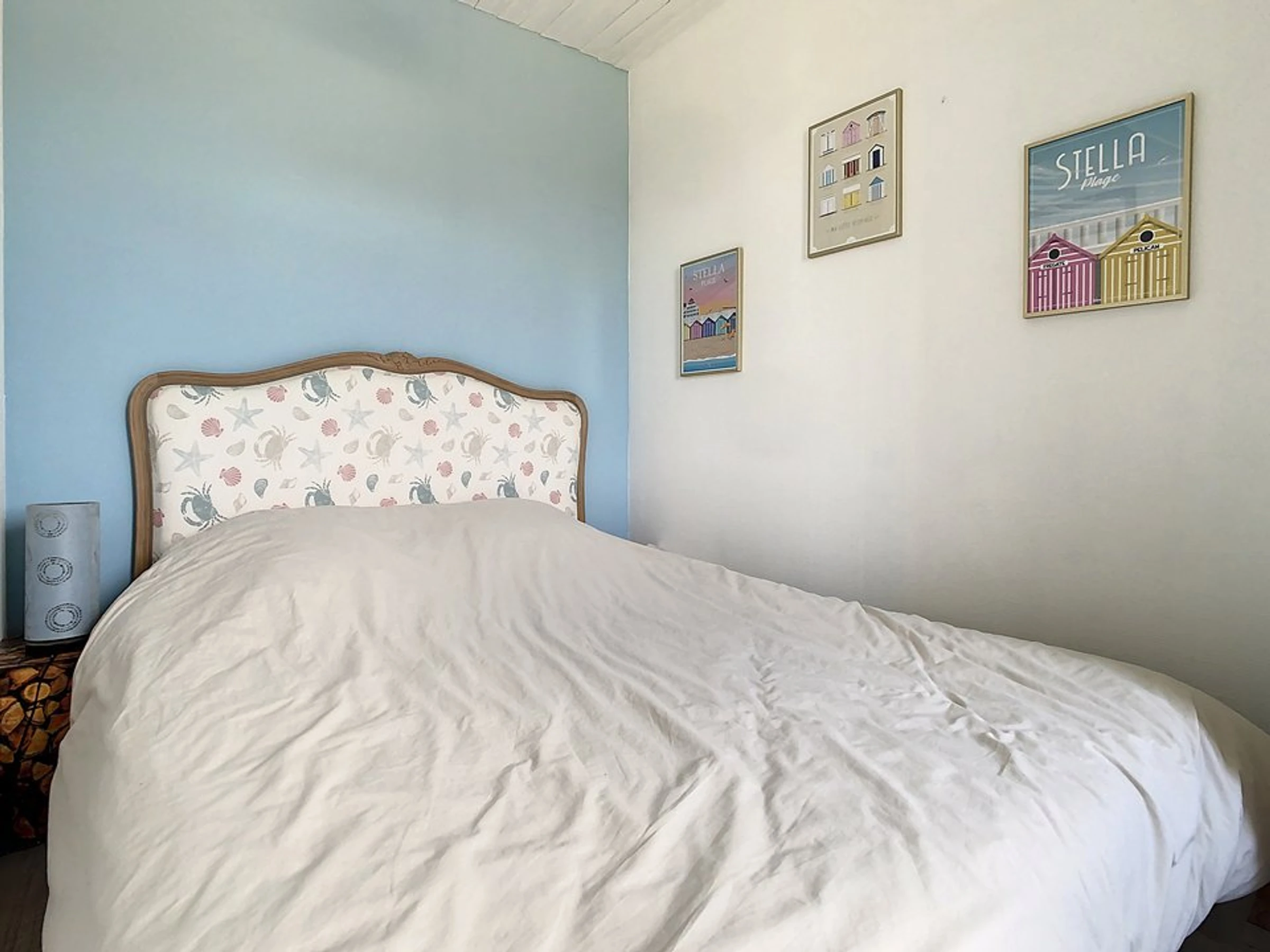 Cerca del mar y de las dunas de SELLA PLAGE, apartamento de 2 dormitorios (uno con una gran cama de matrimonio de 140) y otro (con 1 litera incluyendo un colchón doble de 140 y uno de 90), un luminoso salón con TV de pantalla plana, reproductor de DVD y cocina abierta equipada (lavavajillas, vitrocerámica, microondas...).