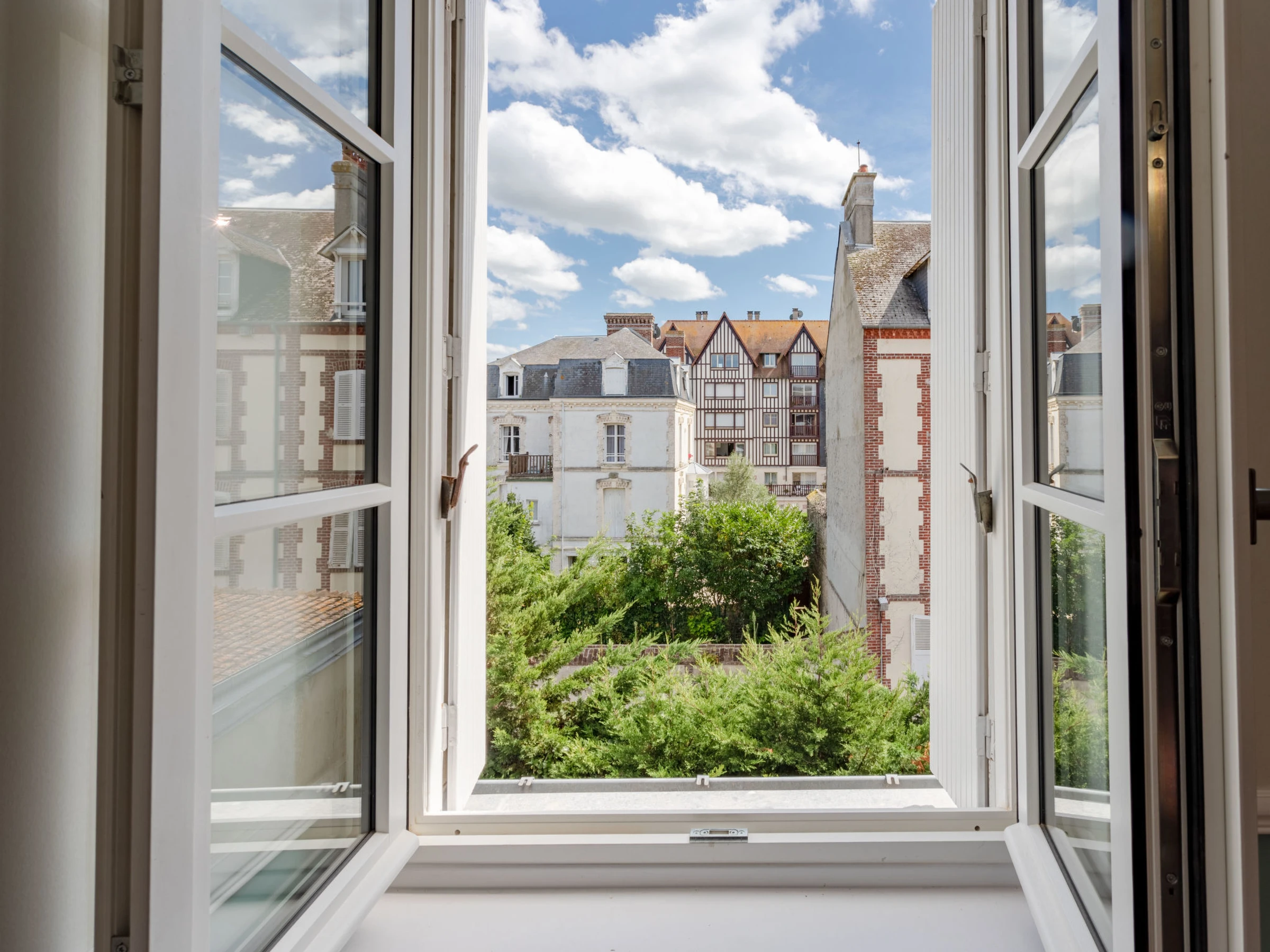 Deauville: Casa adosada "Maison de ville", de 3 plantas. En el centro de Deauville, a 700 m del mar, a 700 m de la playa. Tienda de comestibles 110 m, supermercado 2.7 km, restaurante 3 m, parada autobús "Deauville Art Station" 350 m, estación de tren "Deauville-Trouville" 650 m, piscina cubierta 450 m, piscina termal "Deauville" 1 km. Atracciones en los alrededores: Hippodrome Deauville-La Touques 1 km, Centre International Deauville - CID 800 m, Mémorial de Caen 54 km, Plage du débarquement d'Arromanches 85 km. La entrega de llaves se realiza por la agencia en Deauville.