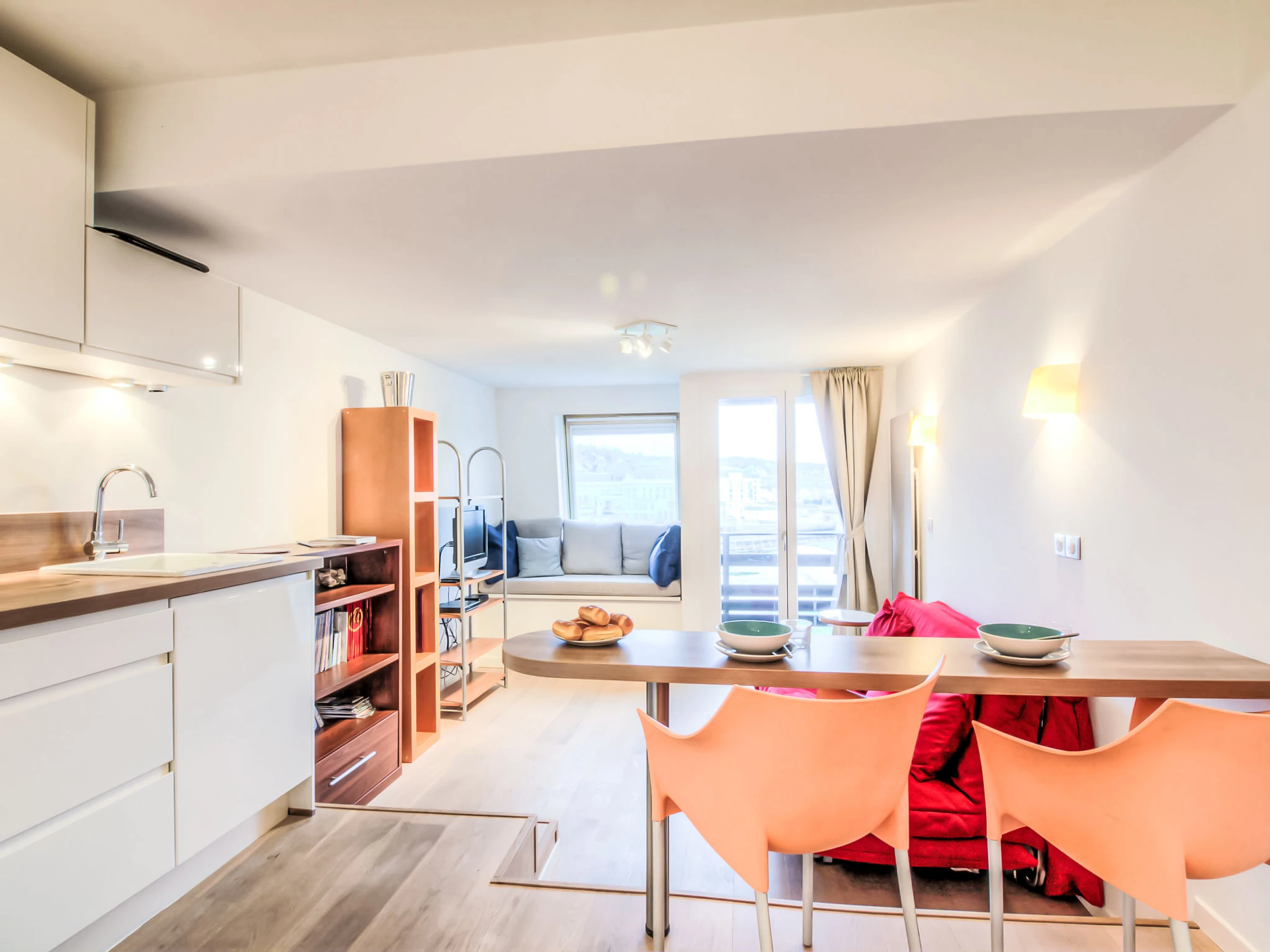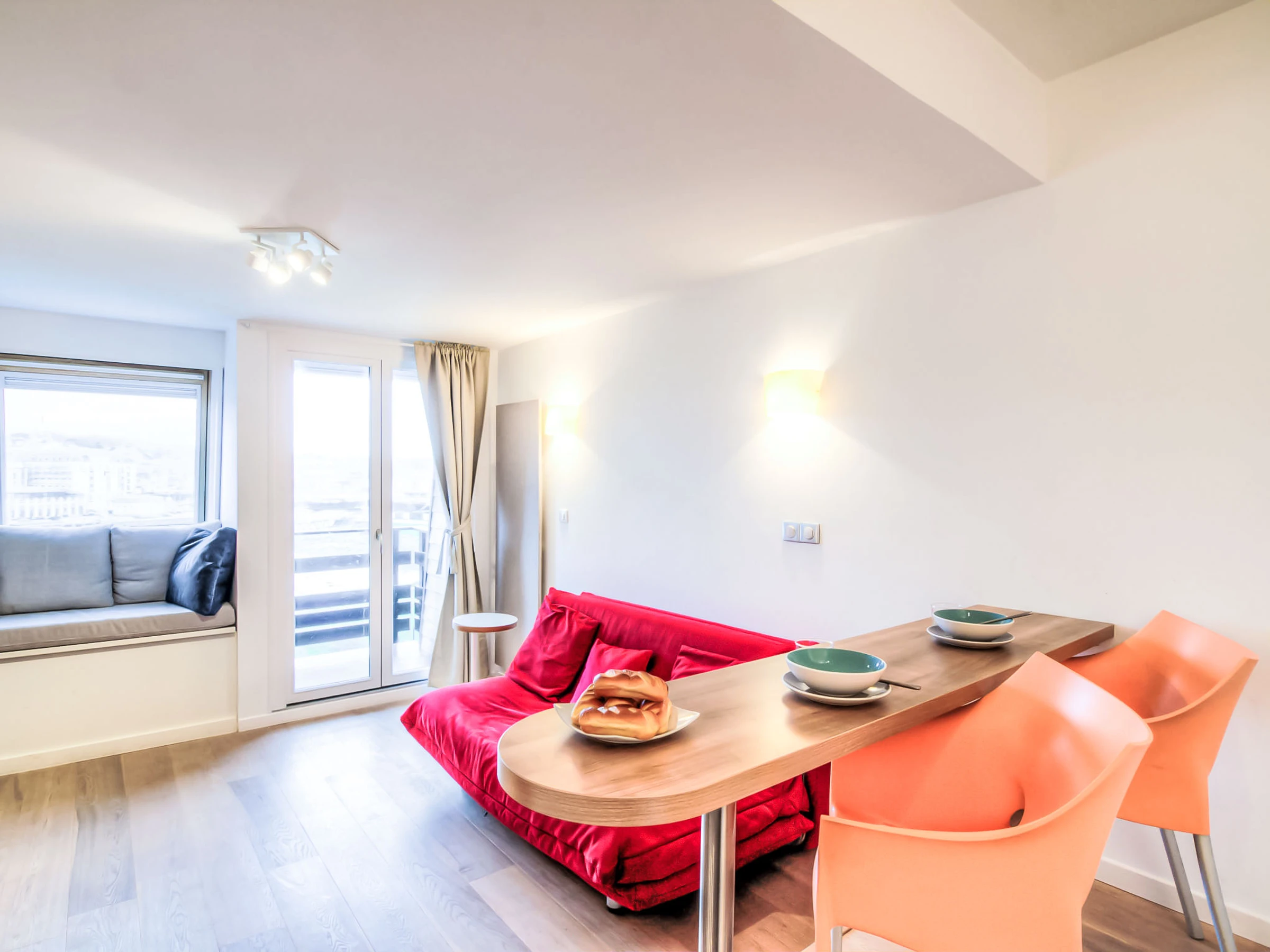 Estudio 25 m2 en el 6° piso. Con mobiliario moderno: entrada. Salón-comedor con 1 sofá-cama doble (1 x 160 cm, 200 cm de longitud), TV (pantalla plana). Salida al balcón. Rincón-cocina (2 placas de vitrocerámica, tostadora, hervidor de agua eléctrico, microondas, cafetera eléctrica). Baño/WC. Calefacción eléctrica. Suelo de parquet. Balcón 1 m2, orientación este. Vista al puerto. El alojamiento dispone de: Internet (Wifi, gratis). A tener en cuenta: apartamento para no fumadores. Detector de humo.