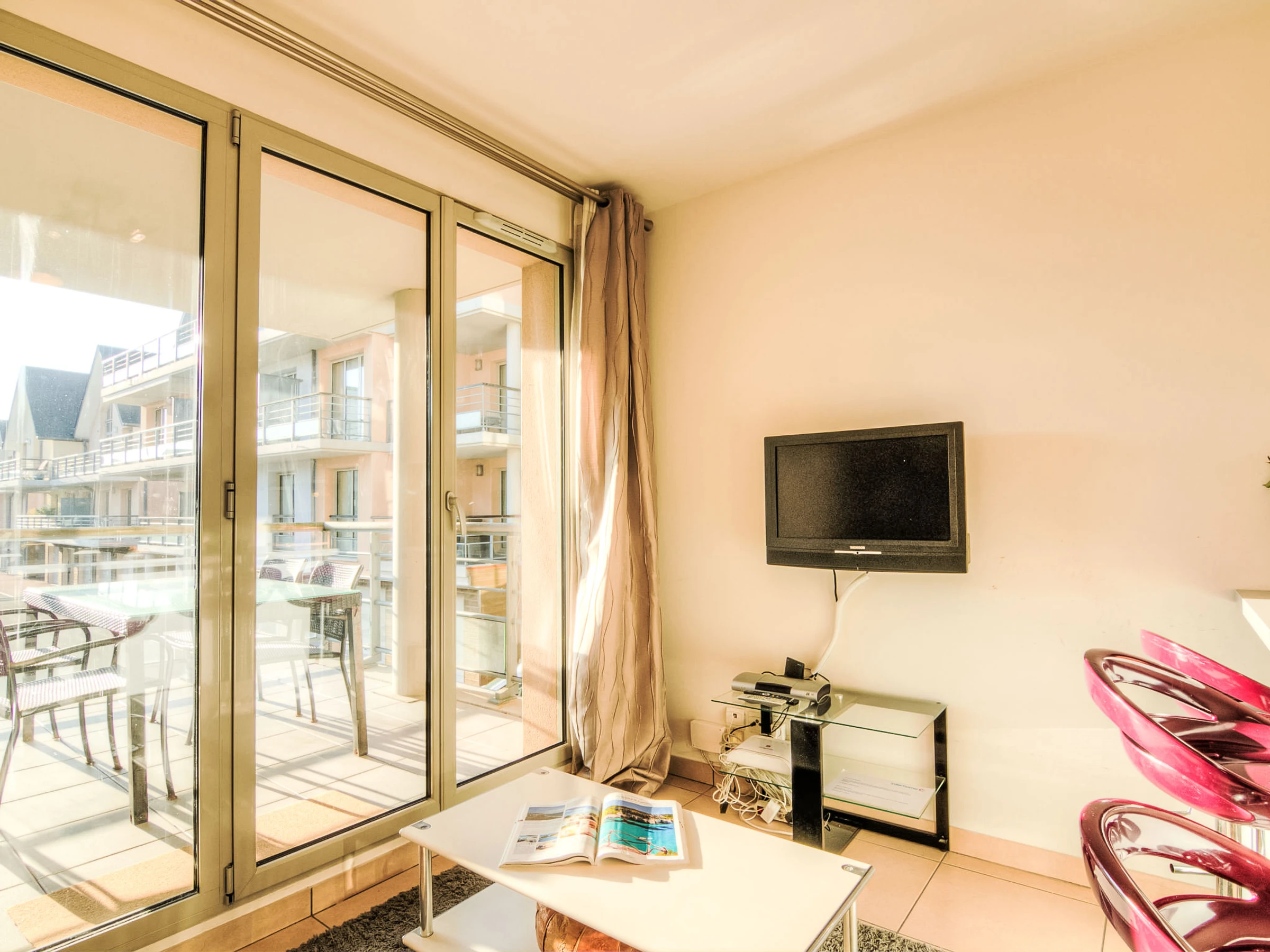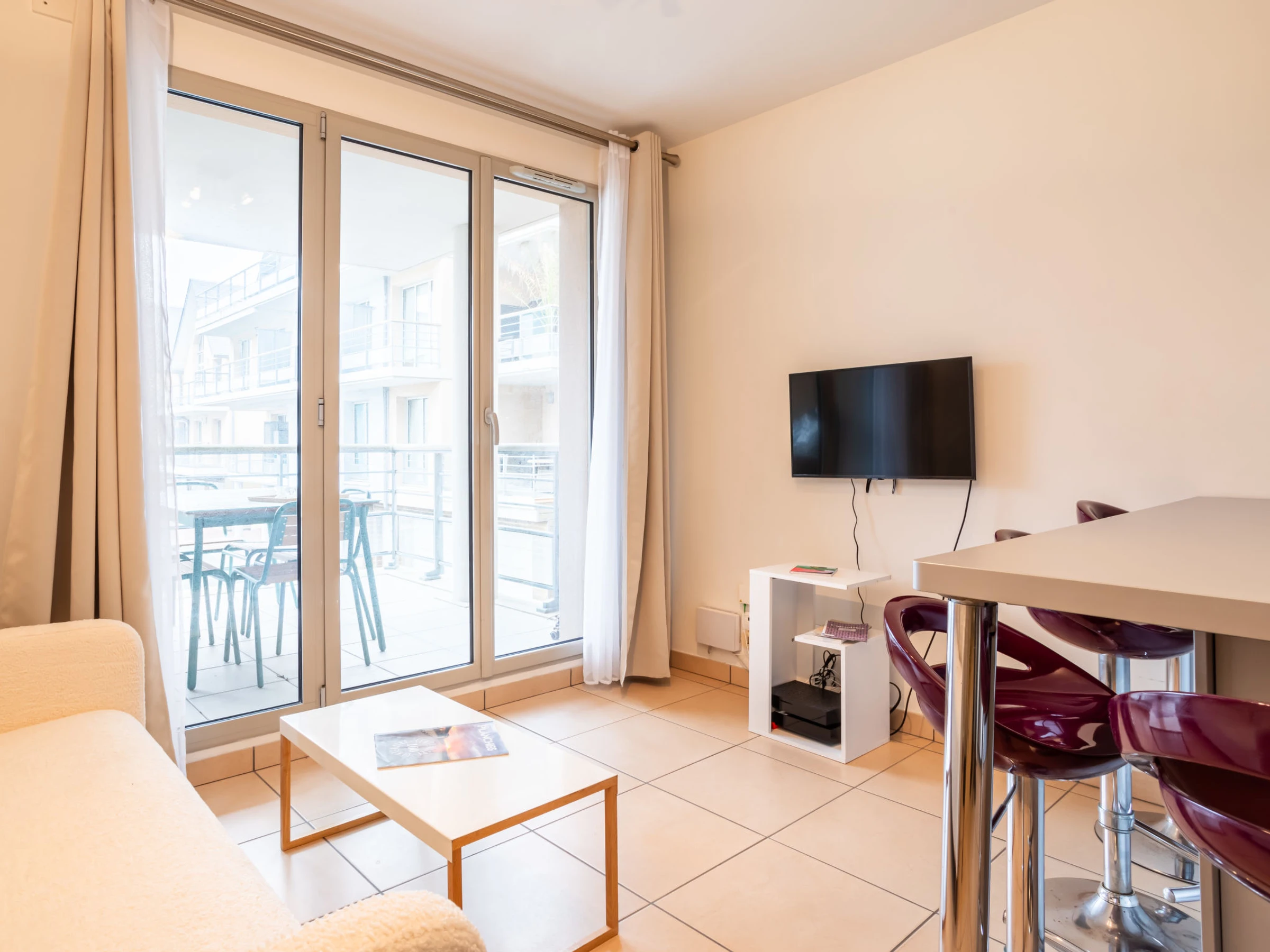 Deauville: Residencia "Blue Bay", bonita. A 500 m del mar, a 500 m de la playa. En el complejo: ascensor. Tienda 1.1 km, tienda de comestibles 1.1 km, supermercado 2.6 km, parada autobús "Marina" 750 m, estación de tren "Deauville-Trouville" 1.5 km, playa de arena 500 m, piscina cubierta 1.4 km, piscina termal "Deauville" 1.4 km. Puerto deportivo 50 m, campo de golf (18 hoyos) 9.8 km, tenis 1 km, centro ecuestre 1 km. Atracciones en los alrededores: Centre International Deauville - CID 1.2 km, Hippodrome Deauville - La Touques 1.7 km, Mémorial de Caen 55 km, Plages du Débarquement d'Arromanches 88 km. A tener en cuenta: la entrega de llaves se realiza por la agencia en Deauville. Se pueden reservar alojamientos adicionales.