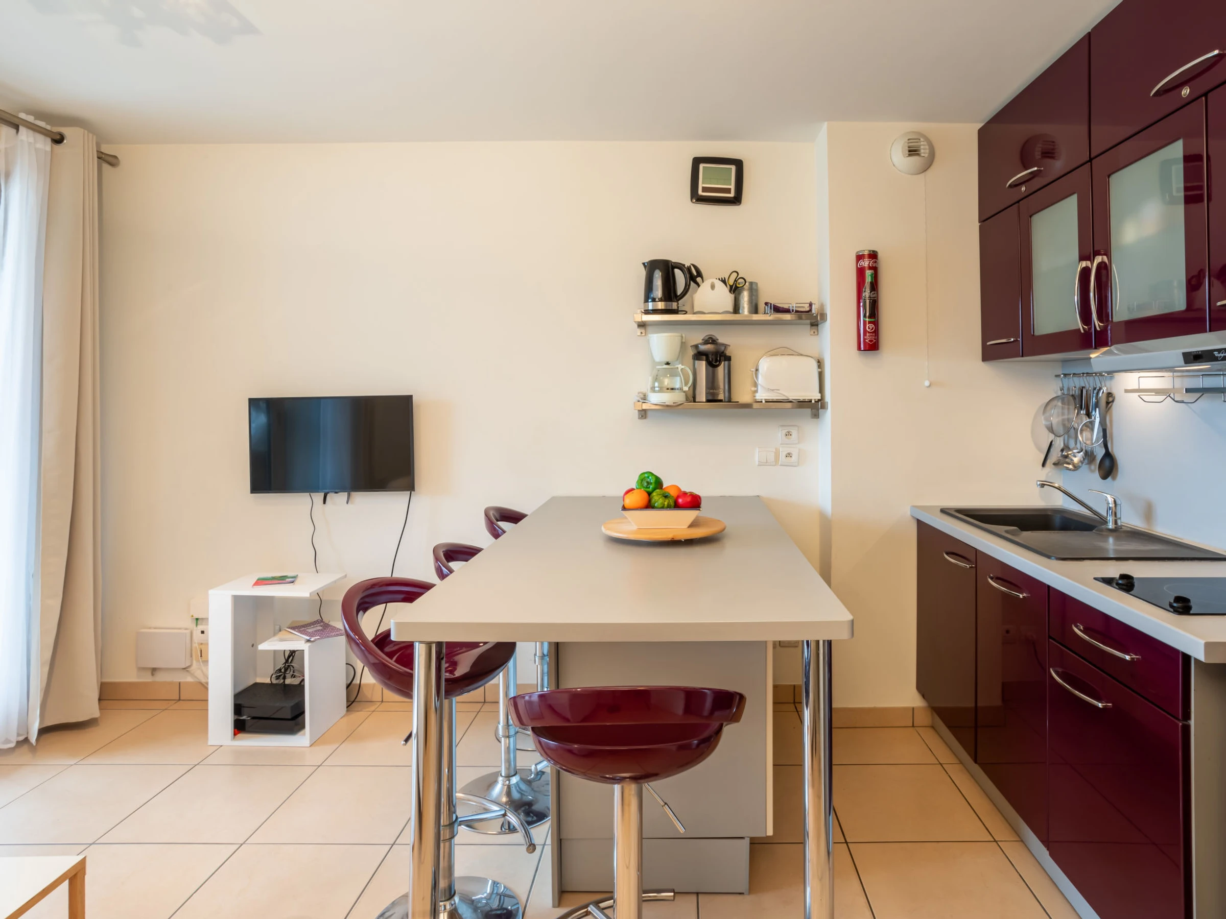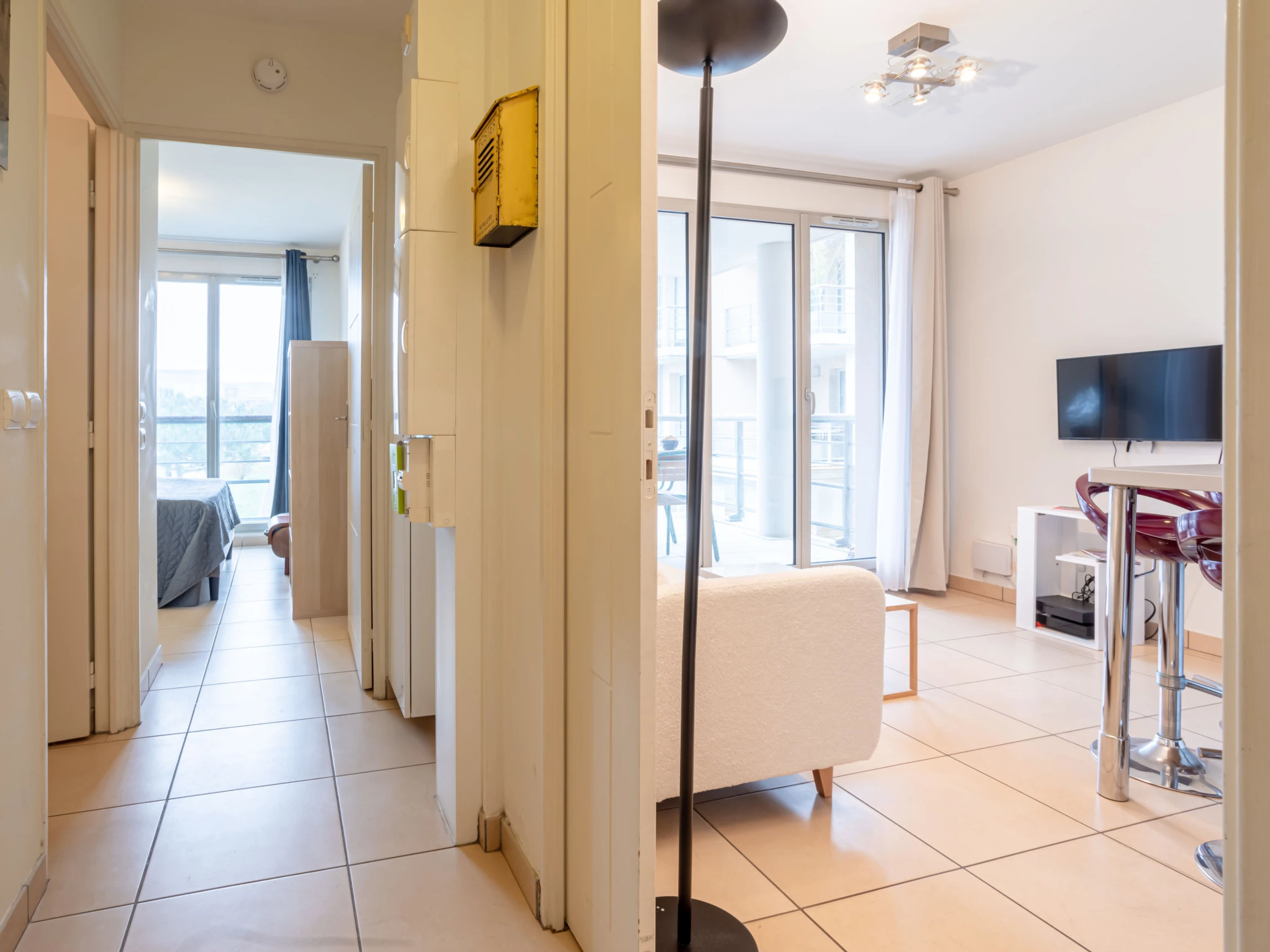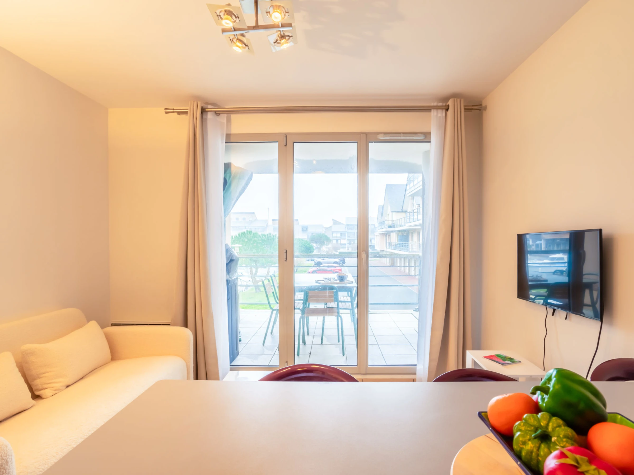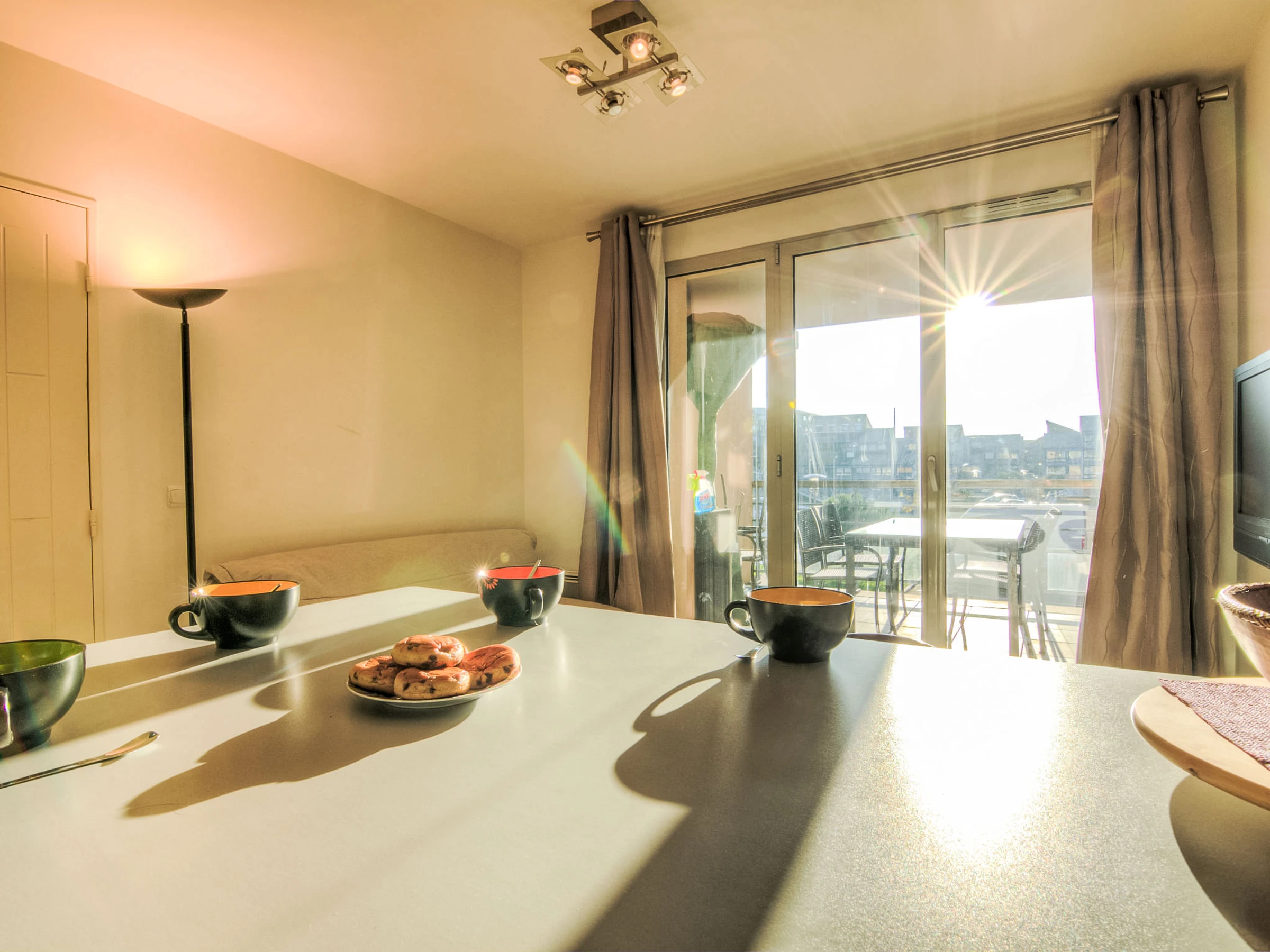 Apartamento de 2 estancias 38 m2 en el 1° piso. Entrada. Salón-comedor con TV (pantalla plana). Salida a la terraza. 1 dorm. con 1 cama de matrimonio (1 x 160 cm, 200 cm de longitud). Cocina abierta (2 fogones, lavavajillas, tostadora, hervidor de agua eléctrico, congelador, cafetera eléctrica, microondas/grill). Ducha, WC separado. Calefacción eléctrica. Terraza 12 m2, cubierta, orientación sur. Muebles de terraza. Vista bonita al puerto. El alojamiento dispone de: lavadora. Internet (Wifi, gratis). Plaza de aparcamiento. A tener en cuenta: apartamento para no fumadores. Detector de humo. [hidden]