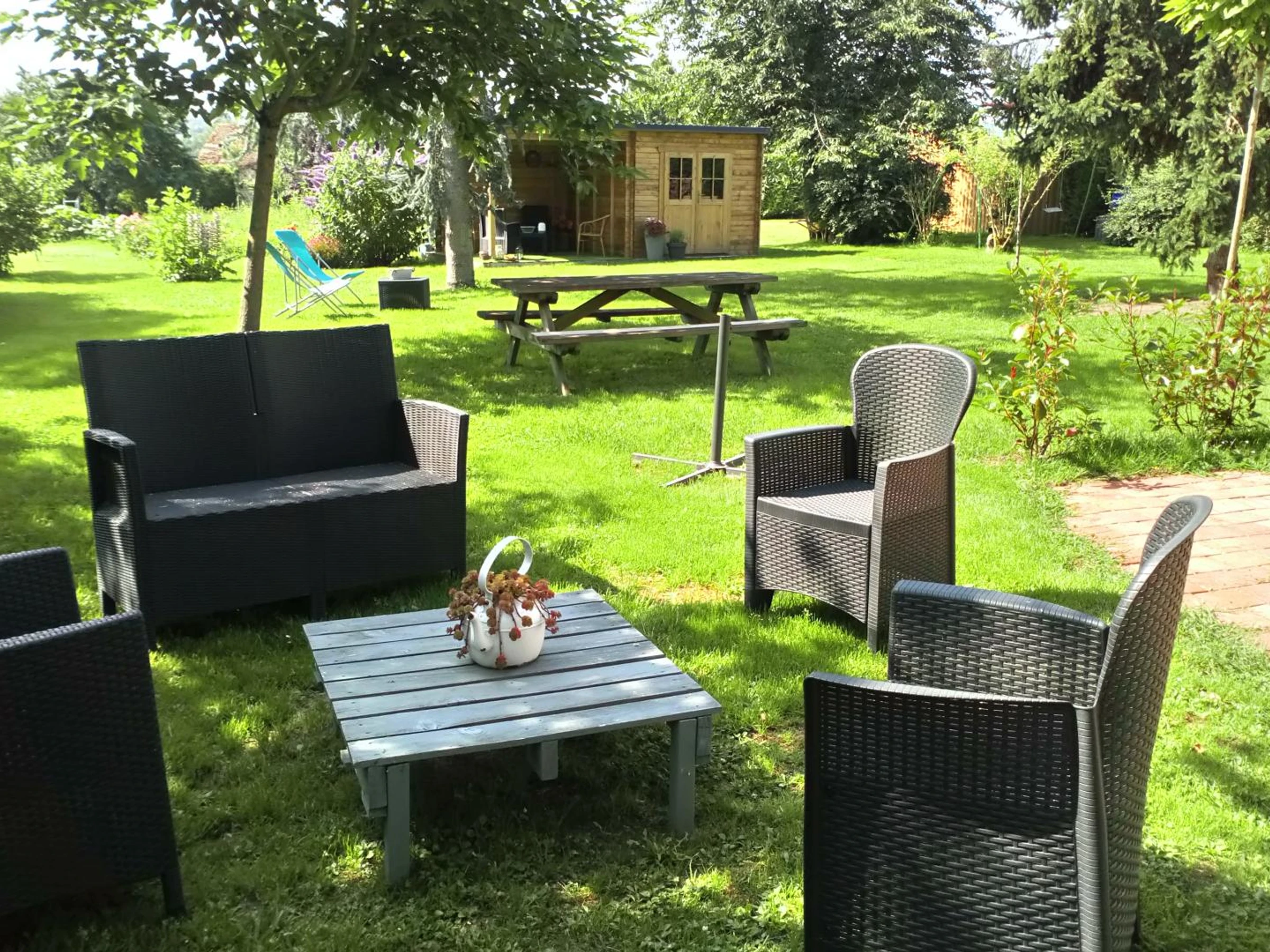 Relájese en el jardín arbolado y disfrute de la parrilla de gas para sus comidas en los días soleados.