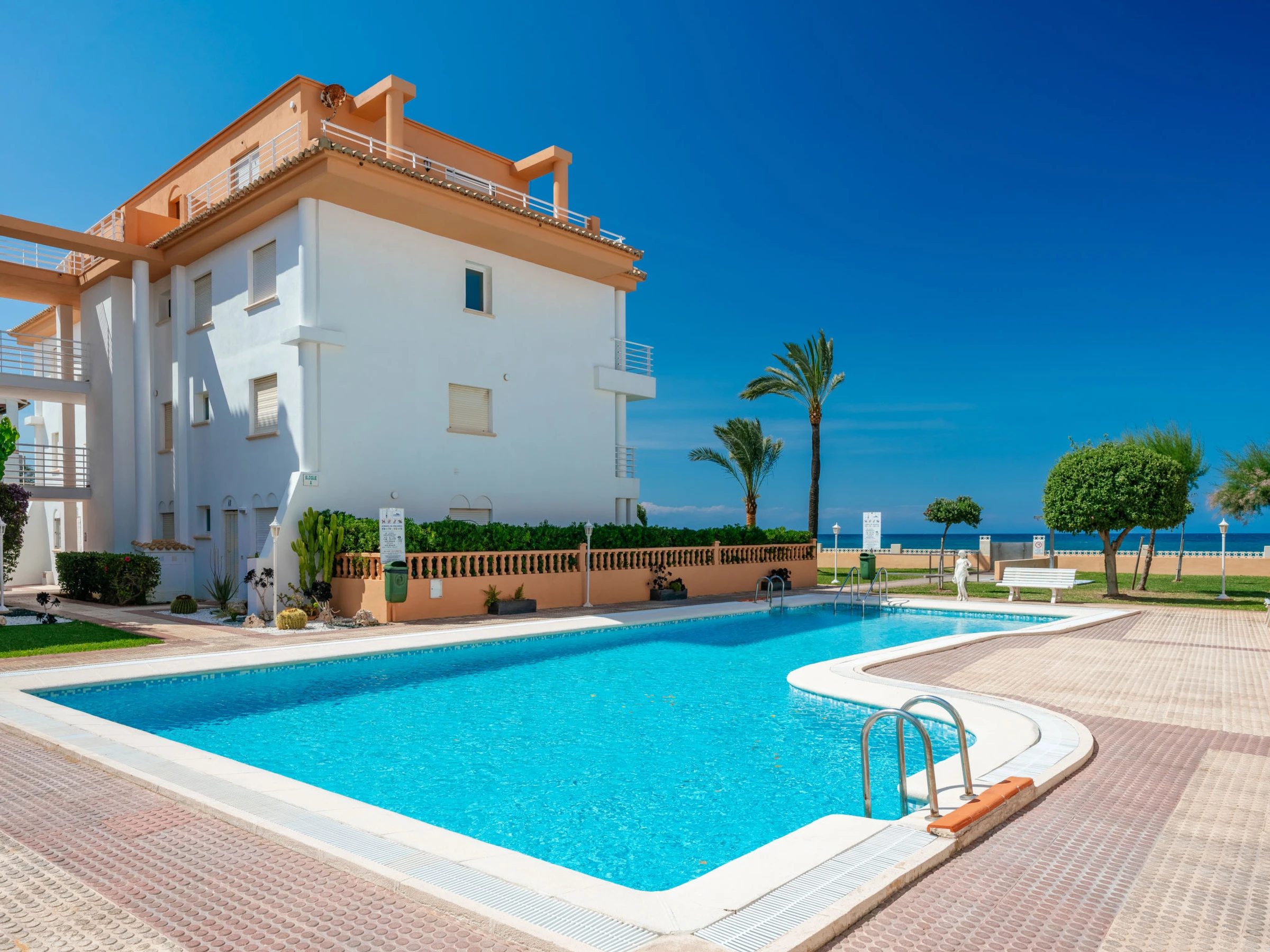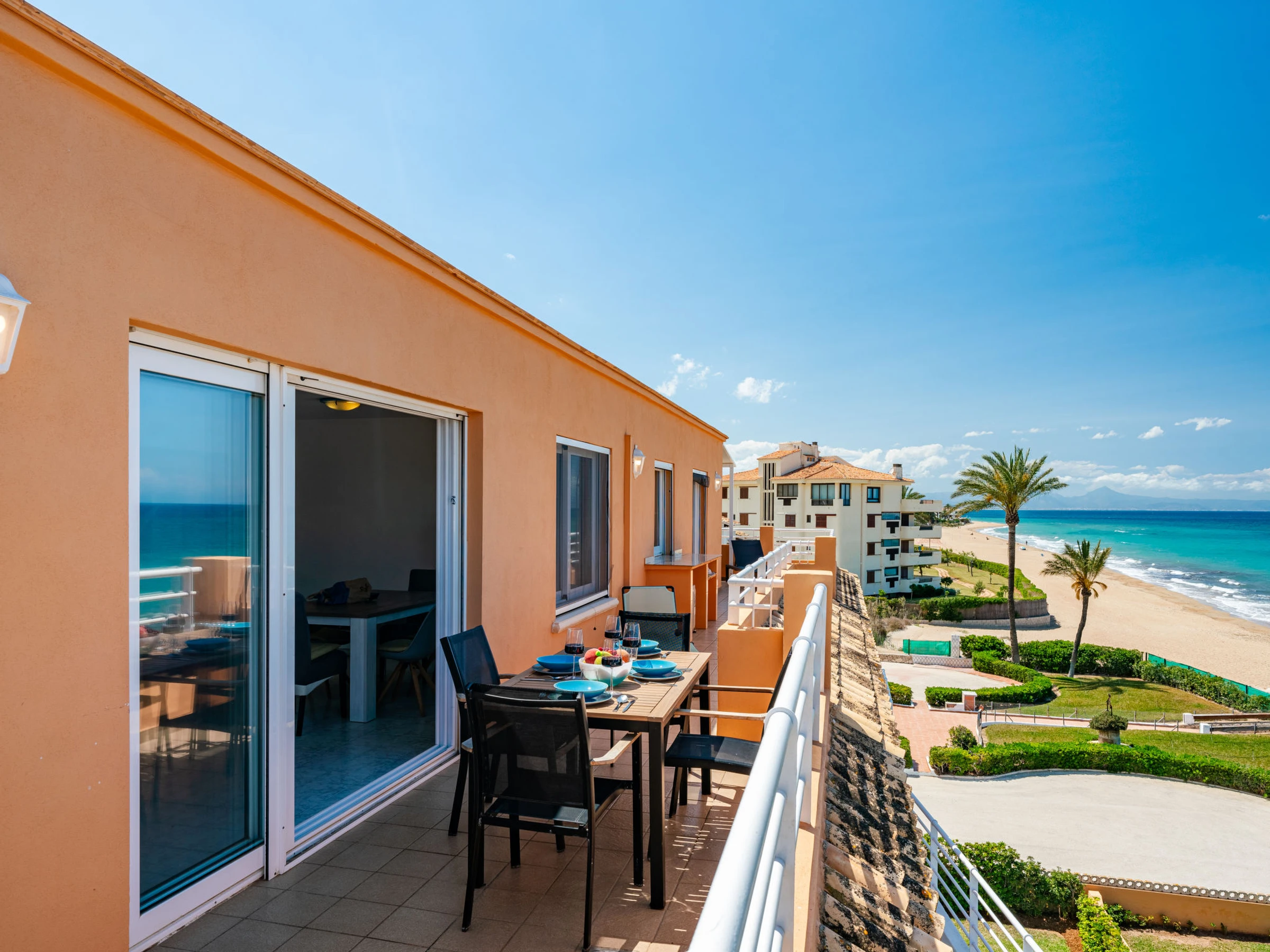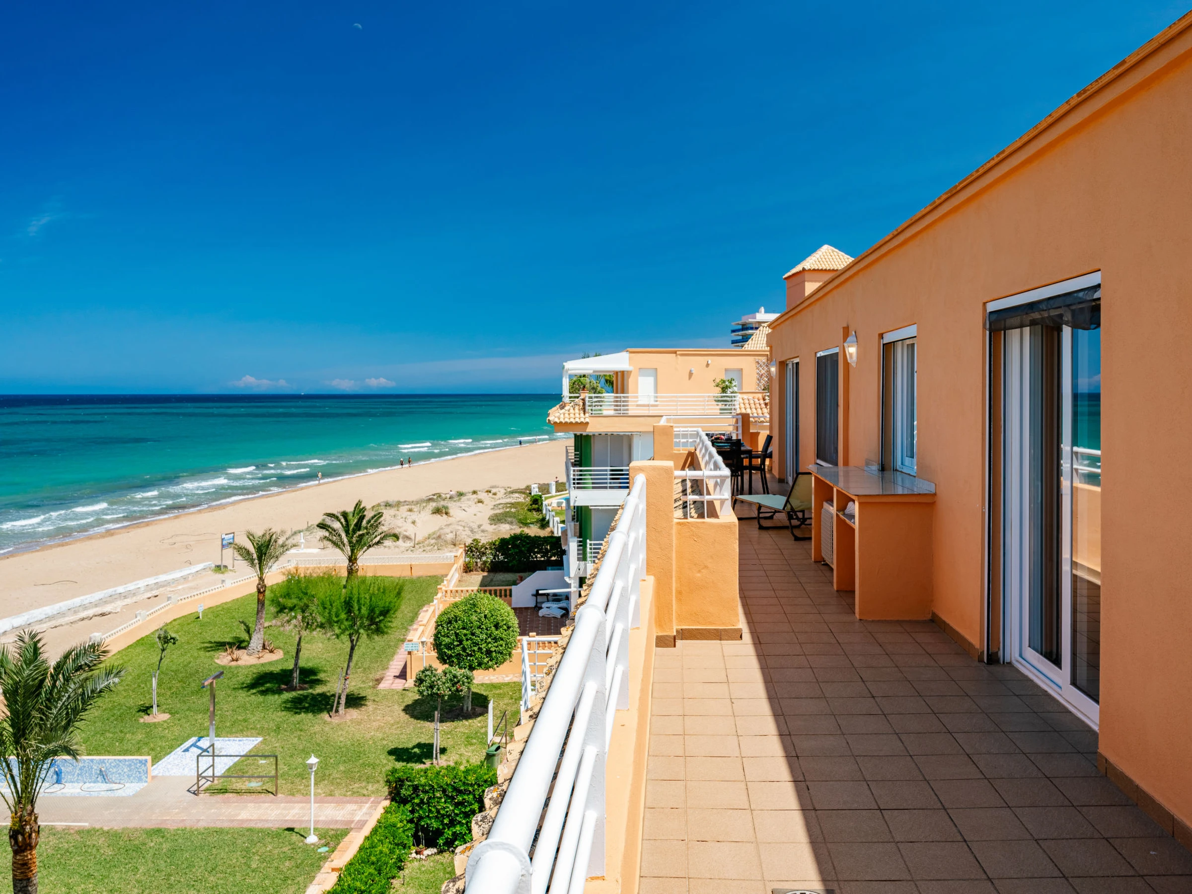 Les Marines a 4 km de Dénia: Casa de apartamentos "Talima". En el distrito Les Marines, a 50 m del mar, a 15 m de la playa, acceso directo a la playa, en una calle sin salida. Comunitario: jardín (vallado) con césped, piscina (16 x 8 m, 75 - 250 cm de profundidad, Disponible por temporada: [hidden] - [hidden] Ducha exterior. Supermercado 450 m, restaurante 200 m, bar, café, parada autobús 450 m, estación de tren 6.4 km, terminal marítima 5.4 km, playa de arena 30 m.
