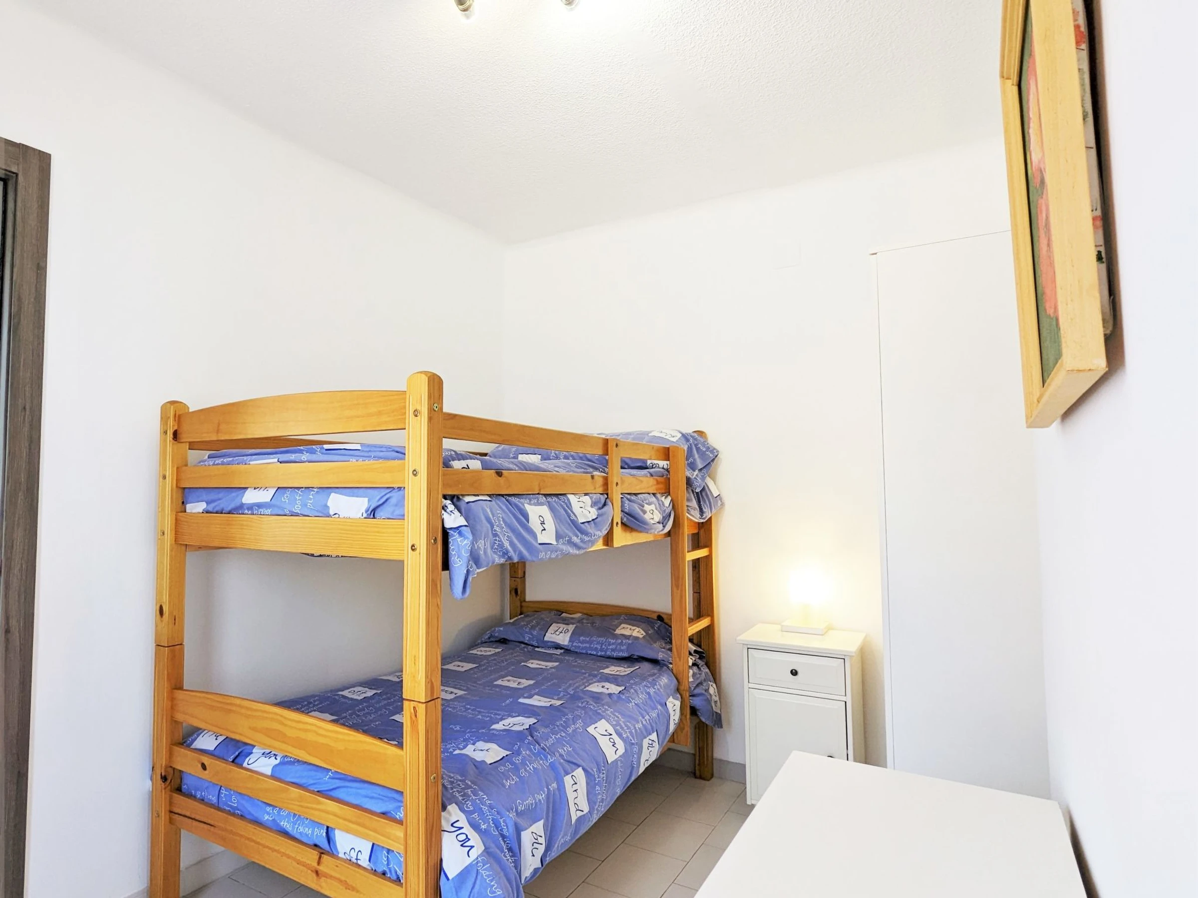 "Centro del Campello", apartamento de 3 estancias 65 m2 en el 6° piso. Vivienda adecuada para 4 adultos + 1 niño. Con mobiliario funcional y confortable: salón-comedor 18 m2 con TV digital, aire acondicionado y bomba de calor, caliente. Salida a la terraza. 1 dorm. 8 m2 con 1 cama de matrimonio (1 x 135 cm, 190 cm de longitud), estufa eléctrica y ventilador. Salida a la terraza. 1 dorm. 6 m2 con 1 x 2 literas (90 cm, 190 cm de longitud), estufa eléctrica y ventilador. Salida a la terraza. Grande cocina (horno, 4 fuegos, tostadora, hervidor de agua eléctrico, microondas, congelador, cafetera eléctrica). Salida a la terraza. Baño/ducha/WC. Terraza grande 40 m2. Vista panorámica a la localidad. El alojamiento dispone de: lavadora, plancha. Internet (Wifi, gratis). Plaza de aparcamiento n. 4. 1 mascota / perro. Posibilidad de entrega de llaves en el apartamento de 16:00 a 18:00 hrs. con costo extra de 30,00€ EGVT-593-A. [hidden]